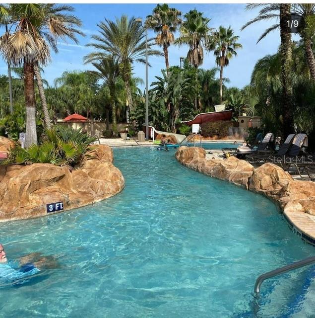 Welcome to the Lovely Regal Palms Resort! Beautiful unique and luxurious resort communities! This home/ condo community has amazing amenity features that include its own theme park style swimming pool and lazy river. Restaurant and Arcade game area for your family or for your guests to enjoy! This can be your primary, secondary or even a short term rental investment property. This condo features upgrades most of the town home in the community do not have. Granite counter tops, laminate flooring throughout the home. Remodeled bathrooms. No rear neighbors. 3 Bedrooms 2.5 bathrooms. Home is nicely decorated and fully furnished. Minutes away from Disney parks. Dont miss out on this being yours!