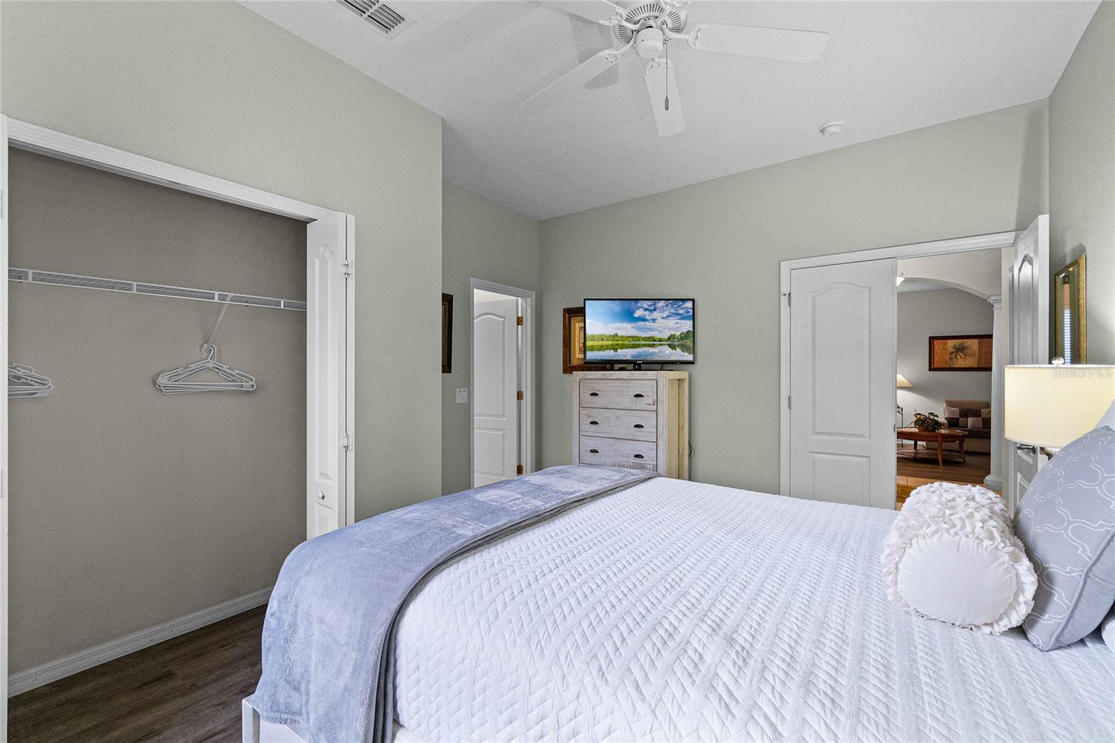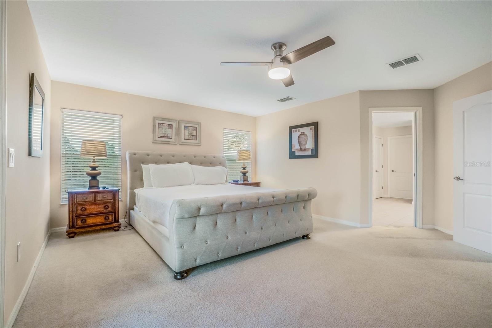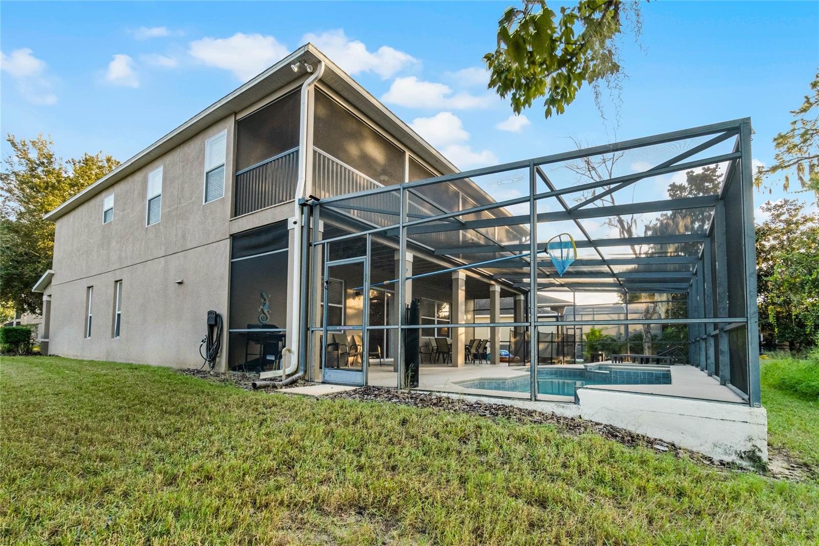 This FULLY FURNISHED 5-bedroom home has everything on your list: A backyard oasis, two master suites, an immaculate interior and an ideal location just a few miles from all the theme parks! The 3221 sqft home has a wonderful layout, and the huge dining & living rooms off the foyer offer plenty of space for everyone to spread out. At the rear, the kitchen is open to the family room and features granite countertops, a breakfast nook, stainless appliances, an island and a long breakfast bar. Just steps away, you can grill up dinner on the lanai while guests lounge around the screened-in pool or relax in the hot tub. And since the property backs up to greenspace, you have no back neighbors. Back inside, the main level includes one guest room with access to a full bathroom, with all other bedrooms upstairs. The two master suites both have access to the screened-in balcony with beautiful conservation views. The primary bedroom boasts a walk-in closet the size of a bedroom and a bathroom with a double vanity, a soaking tub and a separate shower. The secondary bedroom offers a private ensuite with a tub. The two guest rooms down the hall share the fourth full bathroom. The Shire at West Haven is a gated community less than 10 mins from all the shopping & dining at the Champions Gate Village, with golf courses close by, too. You can hop on I-4 in no time to be at Disney in about 20 mins! Just one hour to Tampa, too. Whether you want to make Central Florida your primary residence or just want a cash-flowing vacation home, this is the property for you!