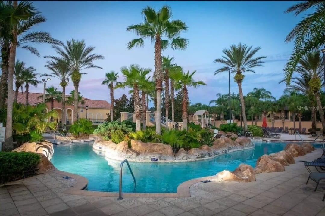 Regal Palms is a resort community with lots of amenities.It has its own water park, spa and fitness center. This quiet, three-bedroom, three-bathroom home is located in the beautiful, Regal Palms Resort. It has a covered entrance porch, entrance hall, living room, dining area, separate downstairs bathroom, andfully-equipped kitchen. The bedrooms are 1 master bedroom with a king-size and two twin bedroom with two large single beds. The master bedroom has its own private full bathroom with soaking tubs. The Resort is located a few minutes drive from Disney World. It has a private gated entrance. It also has a two and one half acre tropical swimming pool complex with two heated pools, water slide, jacuzzi/spa, lazy river, waterfall, barbecue area, and sun bathing terraces. There is shuttle service to and from airport and all major attractions. In the clubhouse there is a large sports bar, a pool side "tiki" bar, restaurant, game room, internet access, fitness center, and sauna. There is a 24 hour check in onsite. Regal Palms is a gated, private community with an electronic key entry system. The facilities are for the exclusive use of the guests only.