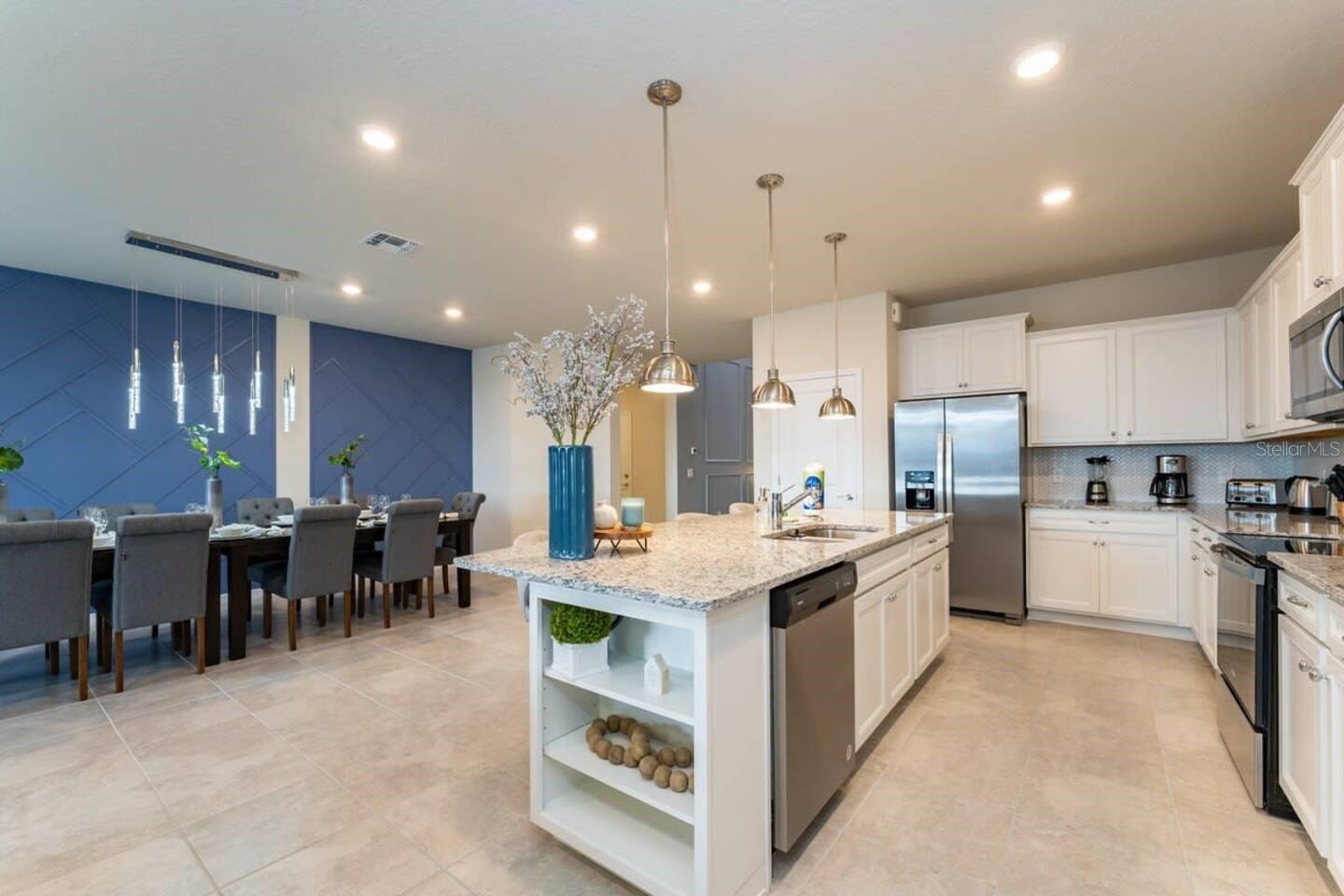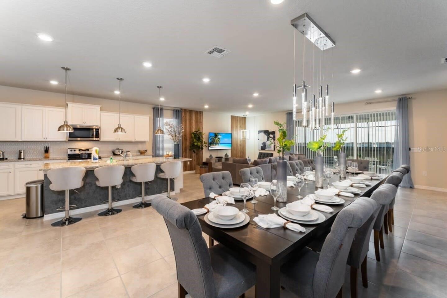 Discover this stunning, fully furnished, move-in-ready property located in the highly sought-after community of Windsor Island Resort. Featuring 8 bedrooms and 6 bathrooms, this home provides the perfect space for large families or those seeking an ideal investment opportunity in one of the best resort locations. The layout seamlessly blends comfort and luxury, boasting a spacious kitchen with stainless steel appliances, a large granite island, and extended cabinetry for extra storage. The first floor includes two bedrooms, one of which is a primary suite with direct access to a heated pool and spa. The outdoor space is designed for relaxation and entertainment, featuring a screened lanai and a large heated pool and spa, ideal for outdoor gatherings. The community offers a host of world-class amenities, including a resort-style beach-entry pool, lazy river, mini-golf course, water slides, and spa. The clubhouse features a fitness center, arcade, restaurant, bar, and a fire pit area to unwind after a long day. Don’t miss this opportunity to become part of an incredible community located just minutes from Disney, Orlando’s top attractions, and excellent dining and shopping options.