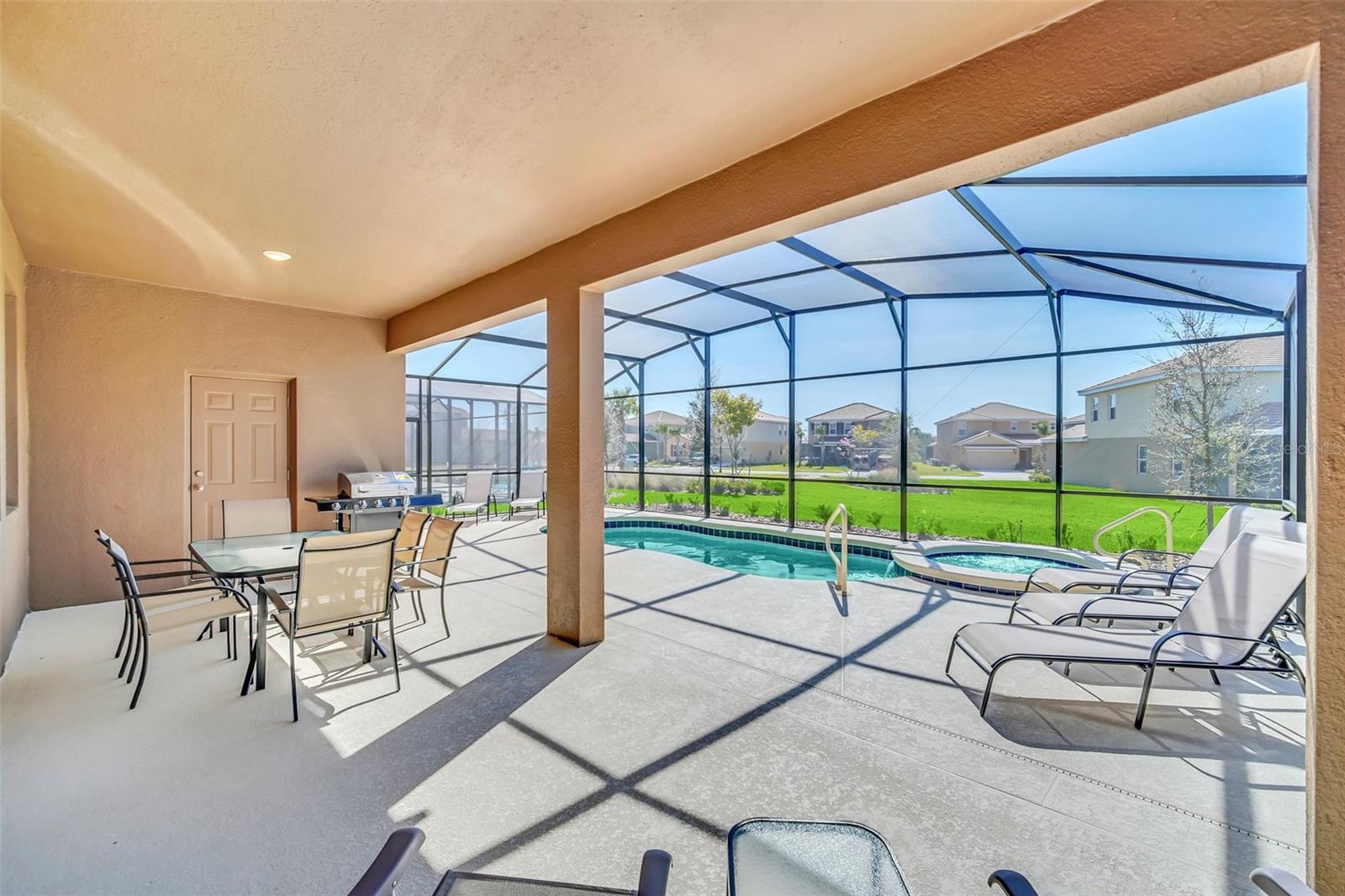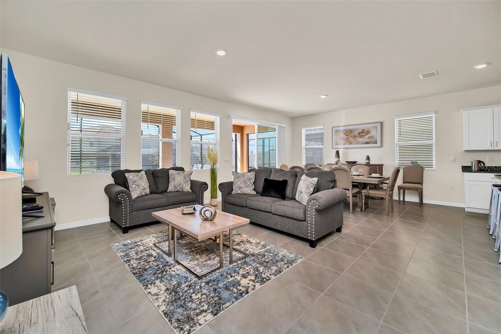 Discover the pinnacle of luxury living in this newly constructed 2023 residence, gracefully positioned within the exclusive Solterra Resort in Davenport. Designed with both elegance and practicality in mind, featuring 7 spacious bedrooms, 5.5 luxurious bathrooms, and a versatile loft, this fully furnished home offers a rare blend of comfort and investment potential—ideal for a permanent residence, vacation retreat, or lucrative rental (Airbnb permitted). Inside this gated community, enjoy resort-style amenities including a grand clubhouse, expansive pool with a water slide, private cabanas, fitness center, tennis and volleyball courts, a lazy river, hot tub, and a poolside café. The home itself spans two thoughtfully designed floors with an open-concept layout, featuring ceramic tile throughout the main living areas, a covered lanai, and a private pool—perfect for relaxation or entertaining. Beyond its luxurious walls, this property is ideally located near Orlando’s top attractions, including Walt Disney World, Universal Studios, SeaWorld, and Champions Gate Golf Resort, with easy access to Florida's pristine East and West Coast beaches. Seize this rare opportunity to experience unparalleled living in the heart of Davenport. Schedule your private tour today and make this dream home your reality.