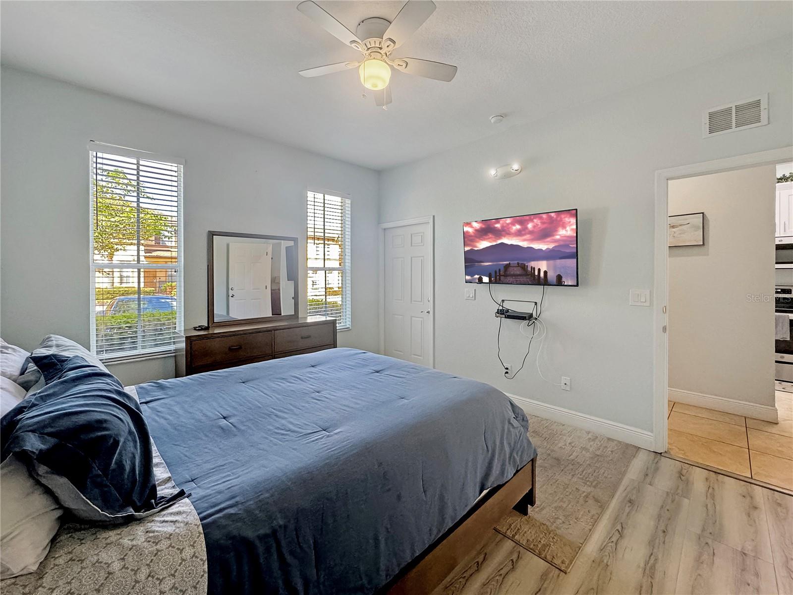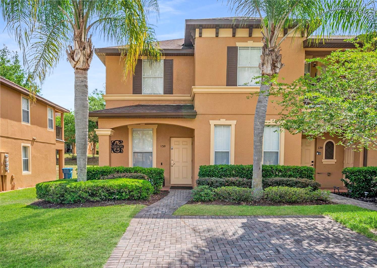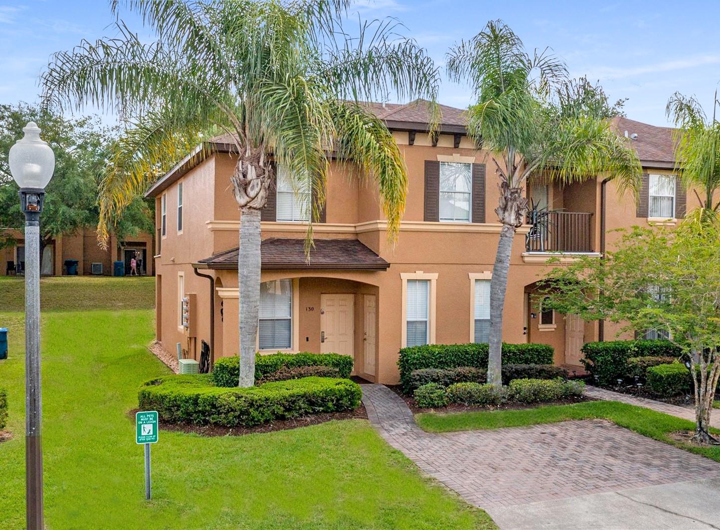 Discover this FULLY FURNISHED, BEAUTIFULLY UPDATED, END-UNIT townhome in the amenity-filled Regal Palms Resort & Spa, offering the perfect blend of vacation living, investment opportunity, or a year-round residence. This spacious end-unit boasts two master suites—one conveniently located on the main floor (can be rented as an individual lockout for more revenue) and another upstairs. The home features a fully renovated kitchen with brand-new appliances, modernized bathrooms, and sleek flooring throughout. Enjoy a maintenance-free lifestyle as the exterior and landscaping are professionally managed for you, allowing you to focus on all the world-class amenities, truly a turn-key experience! The resort offers a day spa, on-site restaurant, tiki bar, zero-entry pool, water slide, lazy river, arcade, fitness center, volleyball court, and a playground—endless entertainment options right at your doorstep - which is a great attractor to potential renters! Perfectly situated adjacent to the Highlands Reserve Golf Club and just minutes from Orlando’s top attractions, including theme parks (Disney, Universal, Sea World), this townhome presents a rare opportunity for short-term rental, vacation ownership, or primary residence. Live where others vacation!