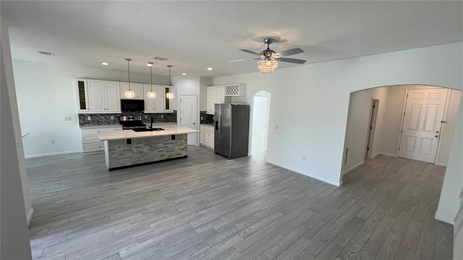 Welcome to this model home stunner located in Orchid Grove. This 4-bedroom 2 full bath property boasts top of the line upgrades and finishes. Amazing features of the property includes recessed lights throughout the home, solar panels, wood look tile, Quartz countertop on a large decor kitchen island, featured wall textures and fresh paint all in the home. Home is well maintained and in perfect condition. Solar Panels included in the purchase of the home. Home is central to shopping, schools and 20 min away from the theme parks. Schedule your showing before it is too late!!!