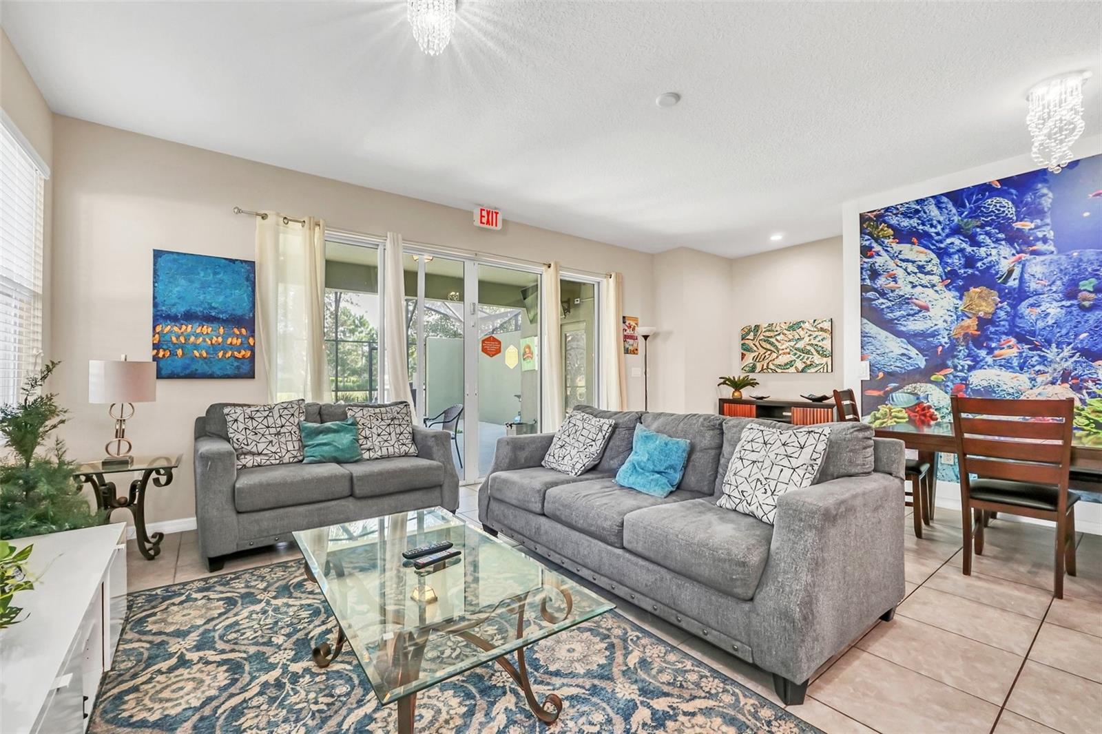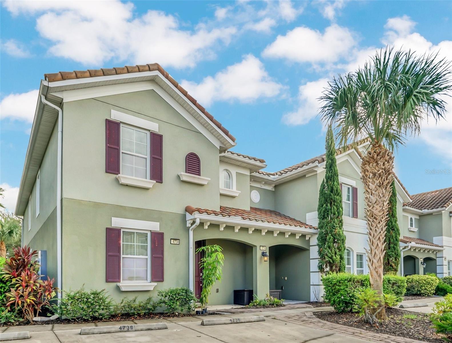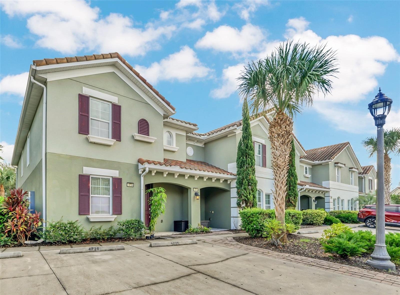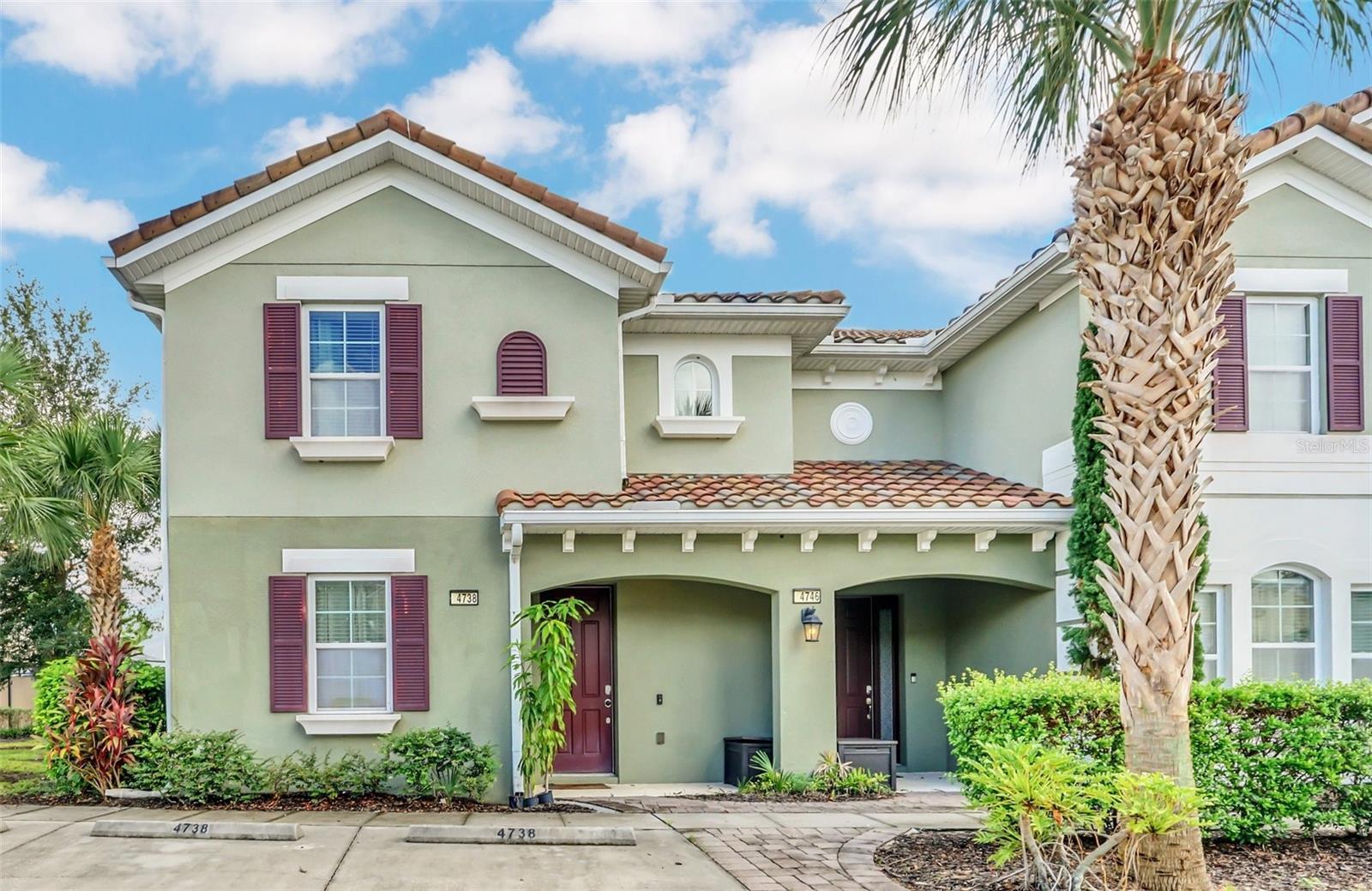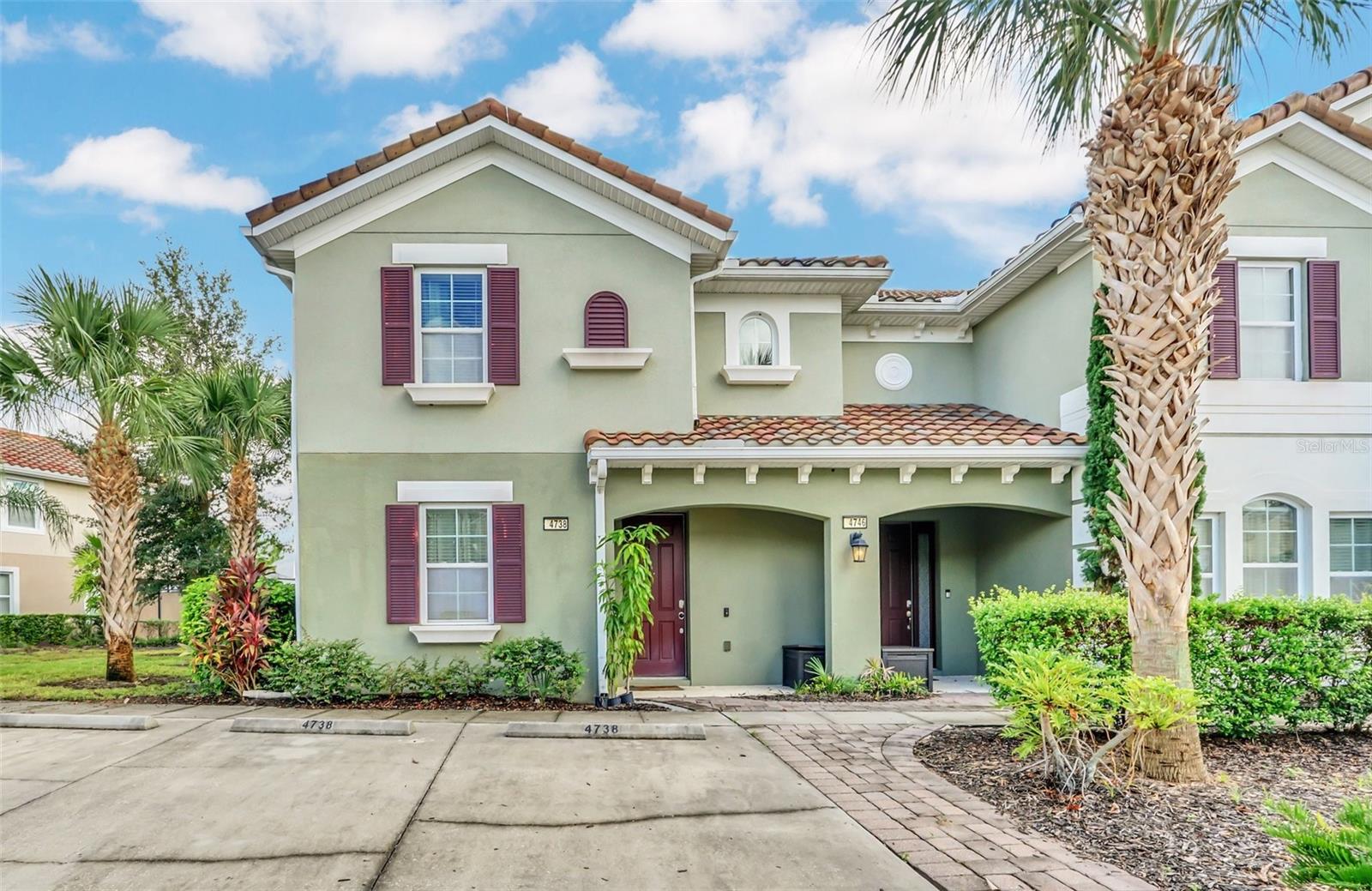 Welcome to your ultimate getaway, where luxury and relaxation await at every corner! This stunning end-unit 5-bedroom townhome in the exclusive Solterra Resort offers a dream retreat within minutes of Disney World, perfect for vacationers and investors alike. Step inside and let the professionally designed interiors transport you to a world of elegance and comfort. Each room is thoughtfully themed, adding a touch of fun and uniqueness that will delight both family and guests. The open-concept living areas feature beautiful 18x18 ceramic tile, making the space feel sleek and modern while remaining easy to maintain. The gourmet kitchen is a chef's paradise, complete with granite countertops, GE stainless steel appliances, and ample space to create delicious meals, whether it's a quick breakfast or an elaborate dinner party. Venture outside to your private screened courtyard, where a heated splash pool invites you to unwind. Imagine spending your mornings soaking up the Florida sun or enjoying a tranquil evening swim under the stars in your secluded oasis. Solterra Resort offers an unmatched lifestyle with world-class amenities designed for entertainment and relaxation. Enjoy the 14,000 sq ft clubhouse, featuring a tiki bar, fitness center, and resort-style pool with a waterslide and lazy river. For the more active residents, tennis courts, a playground, and a variety of social spaces ensure there’s always something to do. Perfectly situated just minutes from the magic of Disney World, this townhome also boasts easy access to premier shopping, dining, and golf courses. Whether you're seeking a personal retreat or a lucrative investment, this property allows short-term rentals, making it the perfect blend of vacation paradise and income potential. Don't miss out on owning your very own piece of resort-style living. This home isn't just a place to stay; it's where lifelong memories are made!