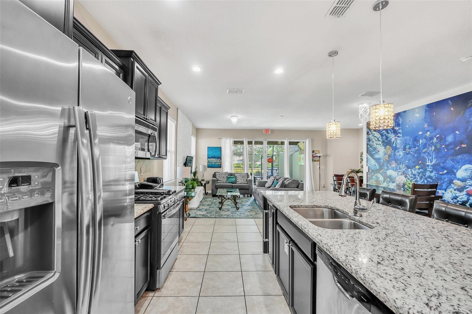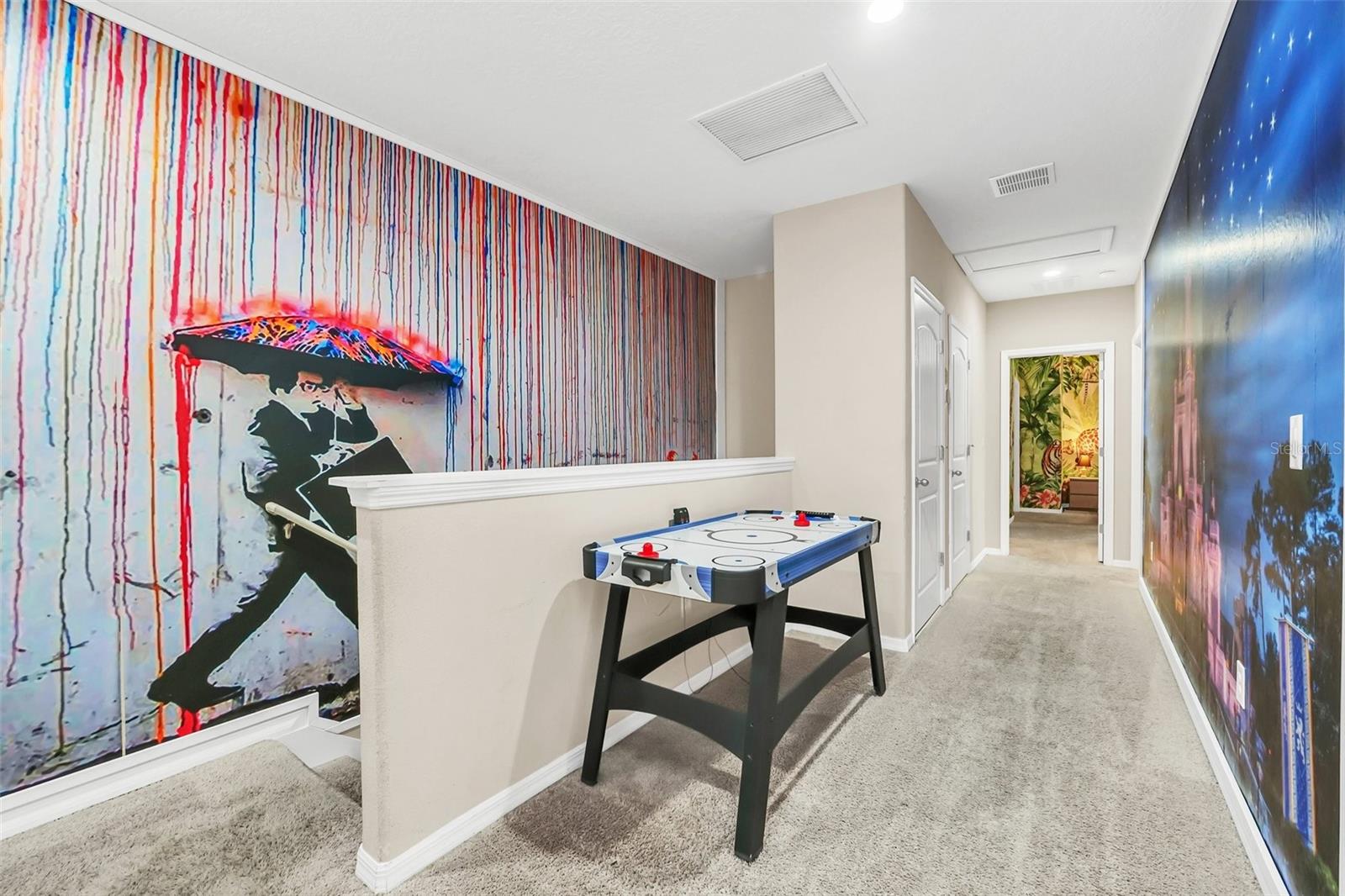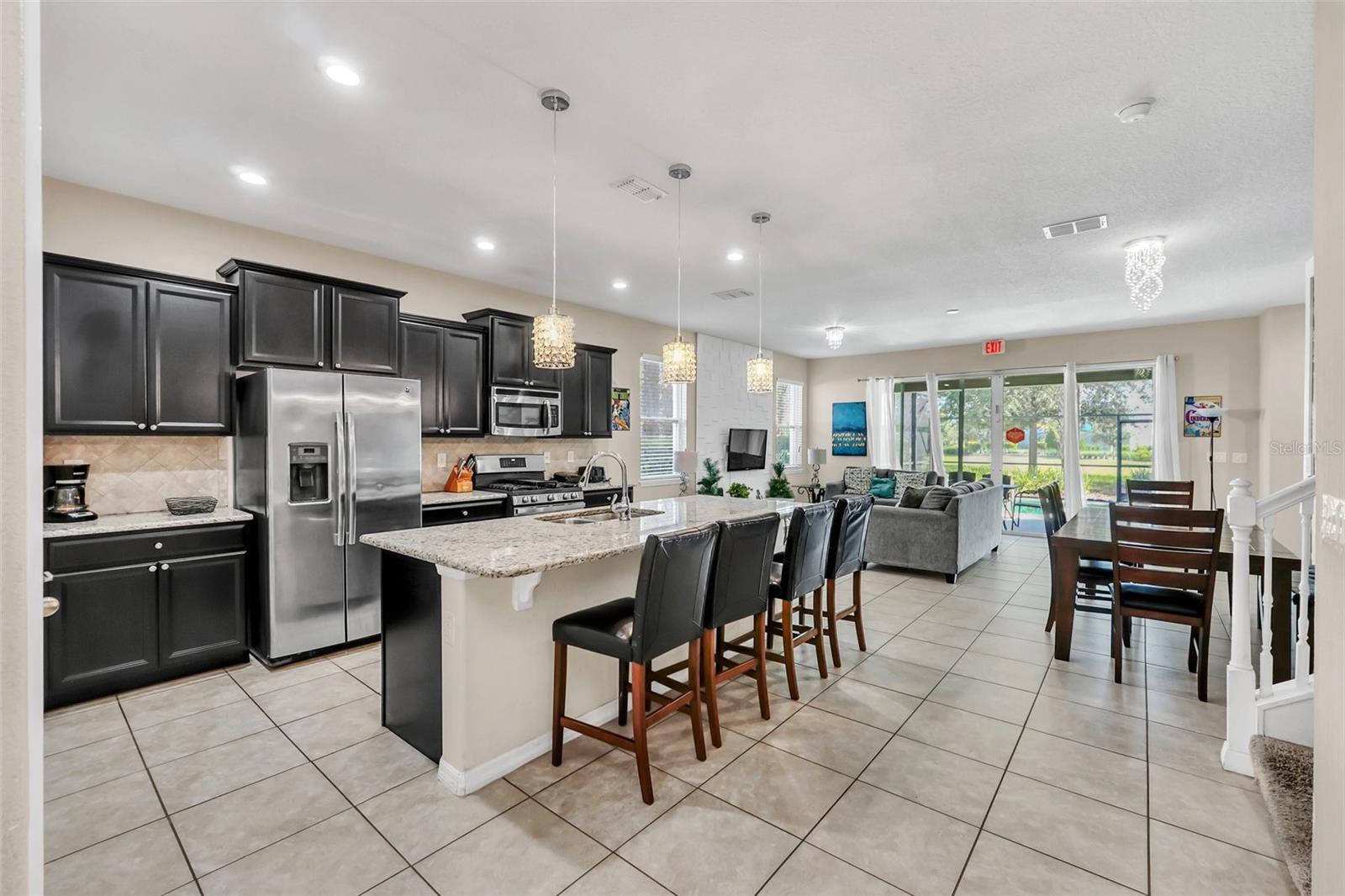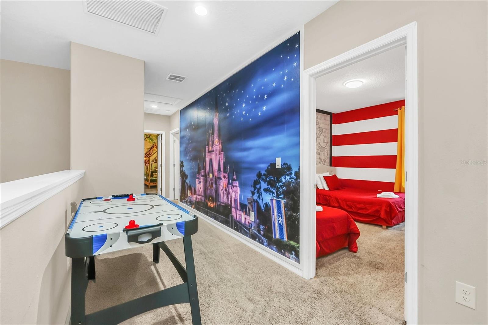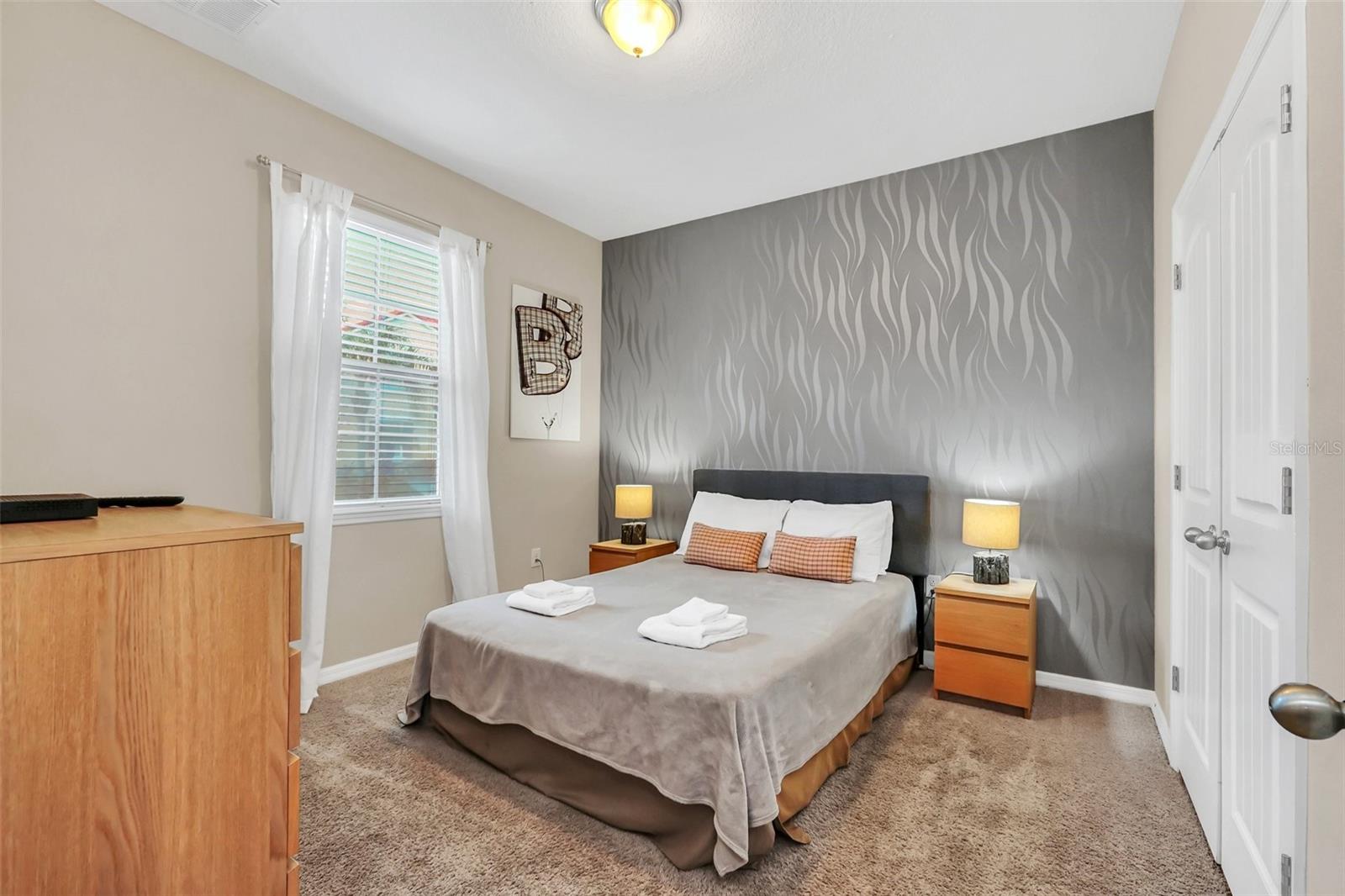Welcome to your ultimate getaway, where luxury and relaxation await at every corner! This stunning end-unit 5-bedroom townhome in the exclusive Solterra Resort offers a dream retreat within minutes of Disney World, perfect for vacationers and investors alike. Step inside and let the professionally designed interiors transport you to a world of elegance and comfort. Each room is thoughtfully themed, adding a touch of fun and uniqueness that will delight both family and guests. The open-concept living areas feature beautiful 18x18 ceramic tile, making the space feel sleek and modern while remaining easy to maintain. The gourmet kitchen is a chef's paradise, complete with granite countertops, GE stainless steel appliances, and ample space to create delicious meals, whether it's a quick breakfast or an elaborate dinner party. Venture outside to your private screened courtyard, where a heated splash pool invites you to unwind. Imagine spending your mornings soaking up the Florida sun or enjoying a tranquil evening swim under the stars in your secluded oasis. Solterra Resort offers an unmatched lifestyle with world-class amenities designed for entertainment and relaxation. Enjoy the 14,000 sq ft clubhouse, featuring a tiki bar, fitness center, and resort-style pool with a waterslide and lazy river. For the more active residents, tennis courts, a playground, and a variety of social spaces ensure there’s always something to do. Perfectly situated just minutes from the magic of Disney World, this townhome also boasts easy access to premier shopping, dining, and golf courses. Whether you're seeking a personal retreat or a lucrative investment, this property allows short-term rentals, making it the perfect blend of vacation paradise and income potential. Don't miss out on owning your very own piece of resort-style living. This home isn't just a place to stay; it's where lifelong memories are made!