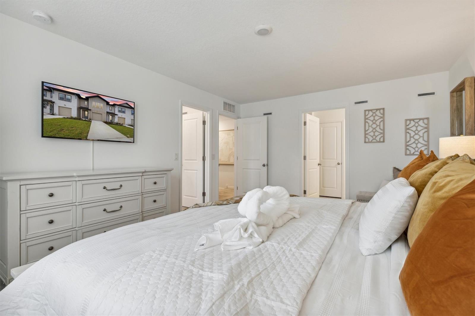 Discover this virtually brand-new home's charming and contemporary elegance, nestled in the heart of Davenport, Florida. Built-in 2023, this remarkable residence boasts a considerate design that seamlessly integrates all necessities for an all-inclusive lifestyle or a lucrative investment opportunity. 3 Bedrooms 2.5 Bathrooms and approximately. 1,700 soft. Step into this pristine home, currently operating as a 5-star vacation rental with bookings extending into March 2025. Whether you want to expand your rental portfolio or find the perfect family haven, this home offers unparalleled flexibility. Furnishings are included in the price, making it ready for immediate occupancy or continuous vacation rental operation. The luxurious finishes and simplistic yet elegant style are evident throughout the home. Each room has been thoughtfully designed to maximize comfort and aesthetic appeal, ensuring that every moment spent here feels special. Perfectly situated within a vibrant community that offers an array of amenities including, a large resort-style pool with an exciting waterpark, arcade, gym, mini golf, and more! It's an ideal setup for families of all ages, offering a resort-style living experience right at your doorstep. The home's prime location ensures you're just a short drive away from all major theme parks, making it a perfect spot for vacationers and long-term residents alike. All furnishings are negotiable, making this property a turnkey opportunity. You also have the flexibility to keep the existing vacation rental bookings or convert the home for long-term personal use—either way, it’s a win-win! Don't miss out on this amazing opportunity to jump right into owning a currently SUPERHOSTED property or make this beautiful staycation-style townhome your family's personal Florida dream! Contact us today for a showing!