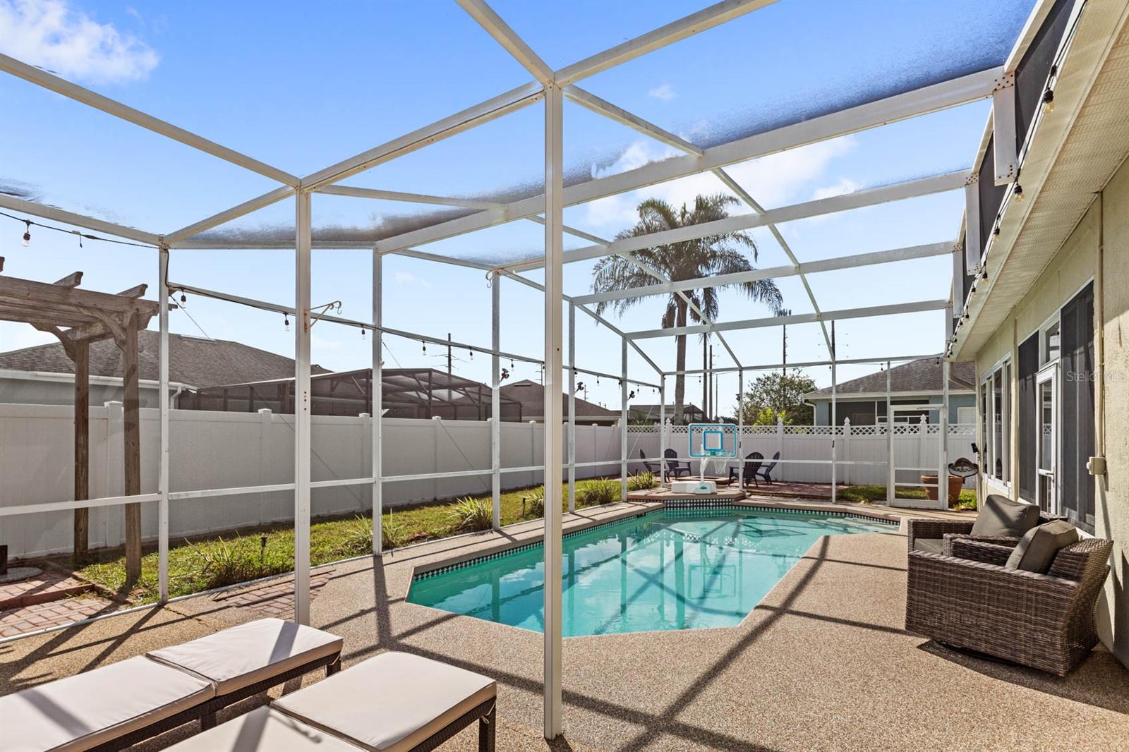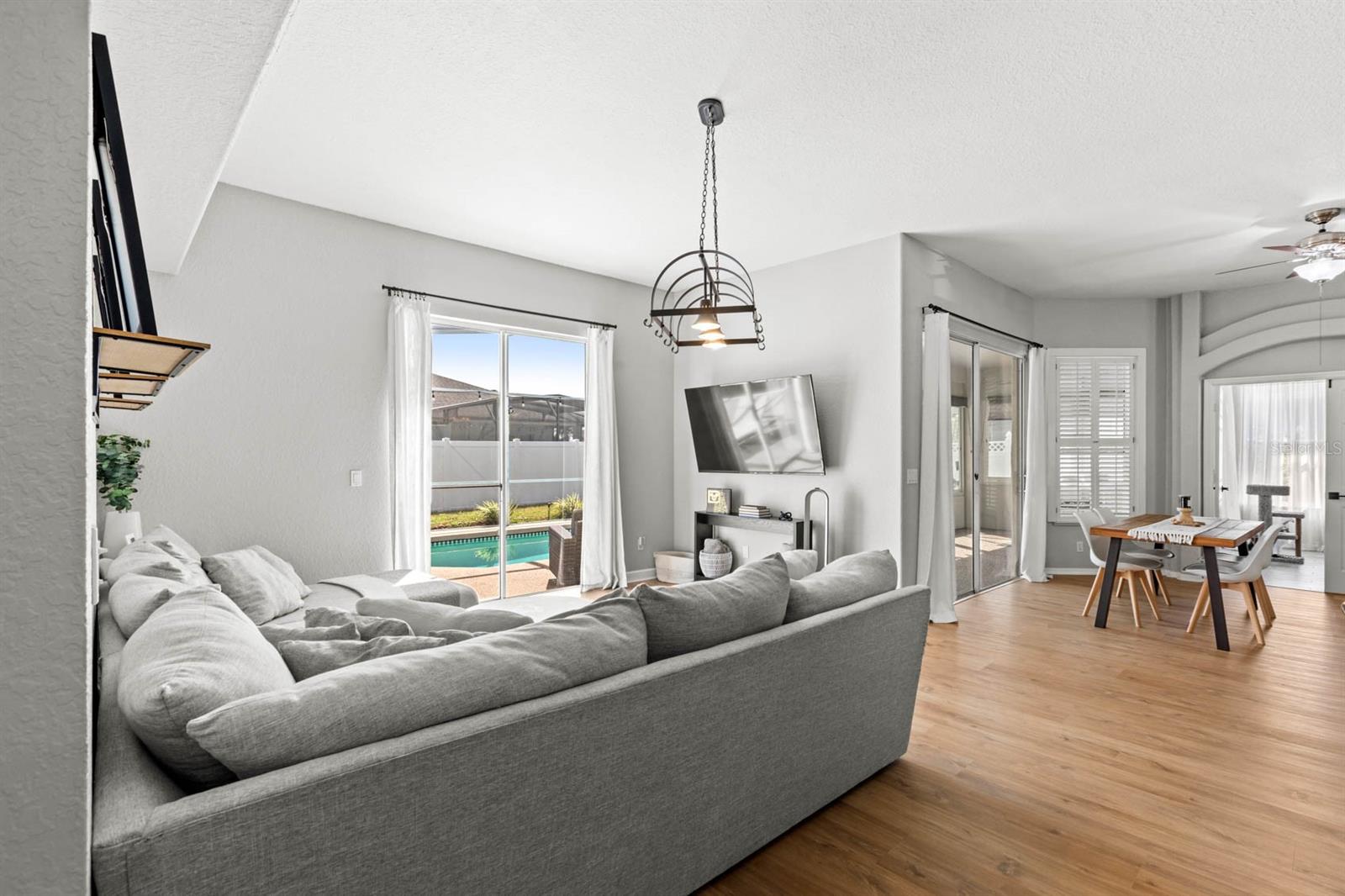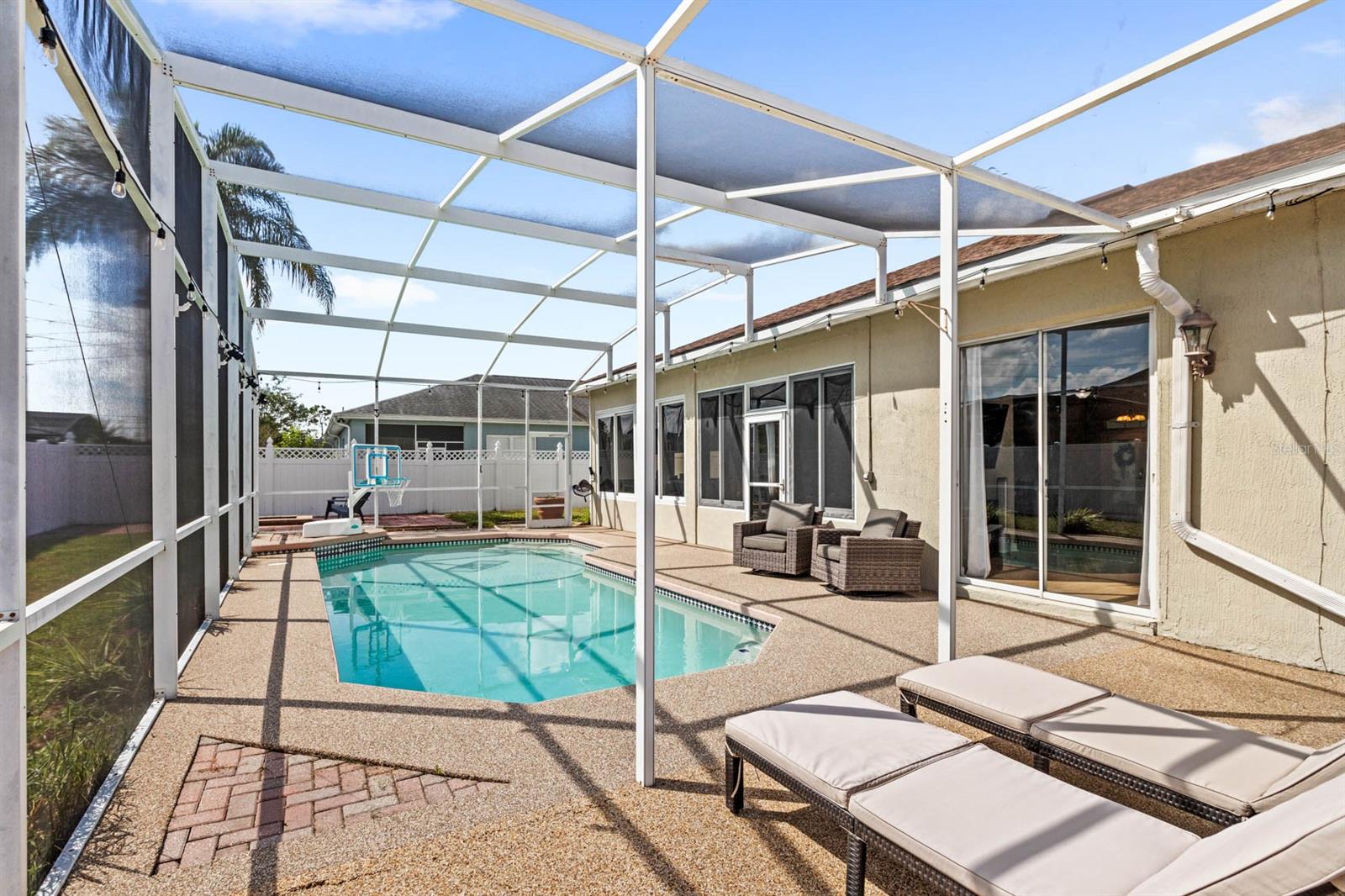 **Charming Pool Home– Perfect for Relaxation and Entertaining! ** Welcome to your dream home! This stunning single-family residence boasts 2,145 square feet of thoughtfully designed living space, perfect for families and entertaining guests. Nestled in a desirable neighborhood, this property offers 3 generous bedrooms, each offering ample natural light and closet space. The primary suite is a peaceful retreat, complete with an en-suite bathroom for your convenience. The open-concept layout seamlessly connects the living room, dining area, and kitchen, creating a warm and welcoming atmosphere. Ideal for family gatherings or cozy nights in! The well-equipped kitchen features modern appliances, plenty of counter space, and 2 pantries’ making it a chef's delight. Step outside to your private backyard paradise, complete with a sparkling pool, and fire pit. Perfect for summer fun or relaxing under the sun! Enjoy a laundry room with ample storage leading to your large 2 car garage. This home features new vinyl flooring throughout the main areas, and a whole home water softener system. Your dream home awaits! Located close to schools, entertainment, shopping, dining and all the major attractions like Walt Disney World, Universal and Seaworld. This property is a perfect blend of comfort and convenience. This community does not allow short term rentals. Don’t miss your opportunity – schedule a showing today!