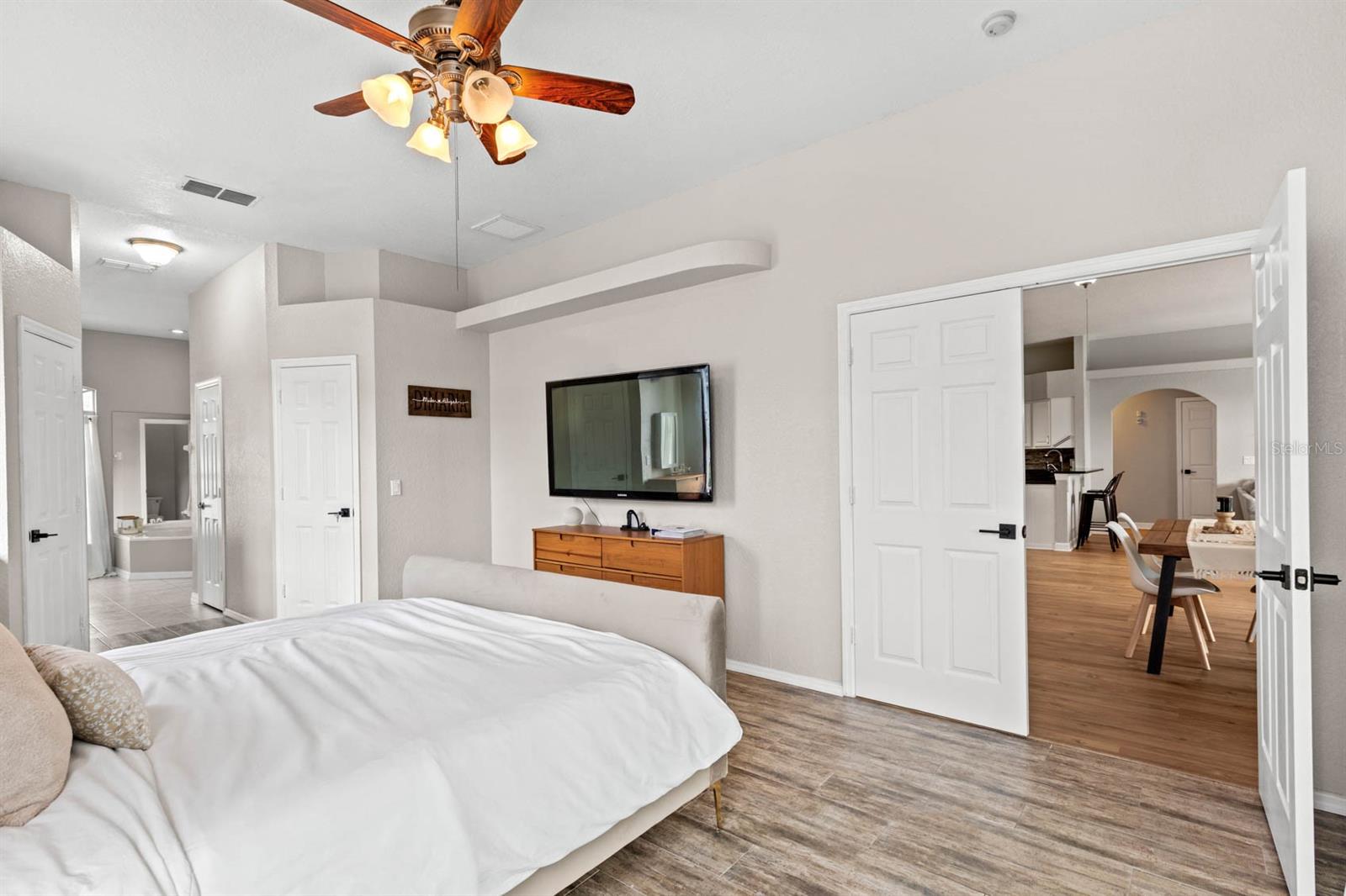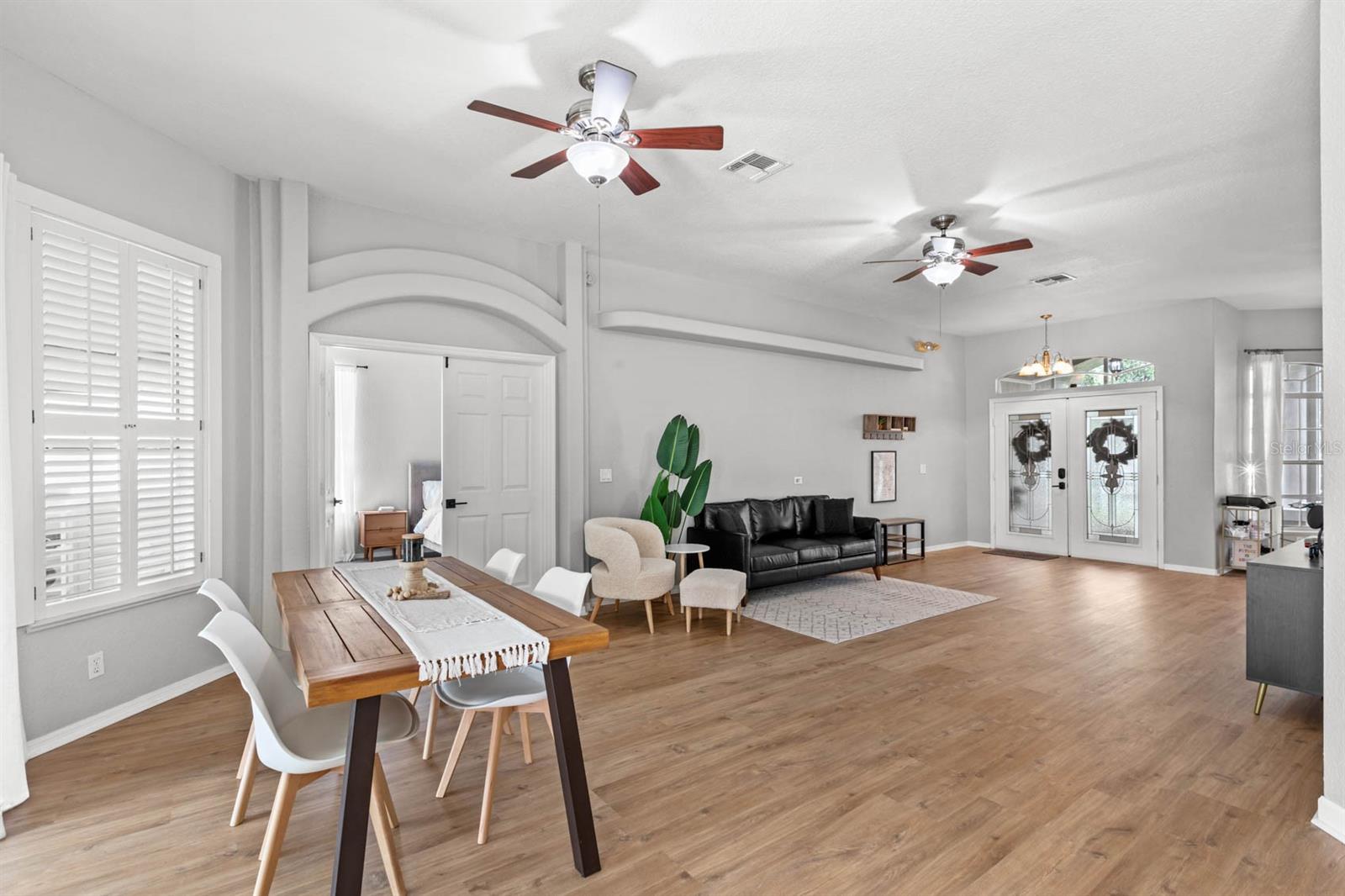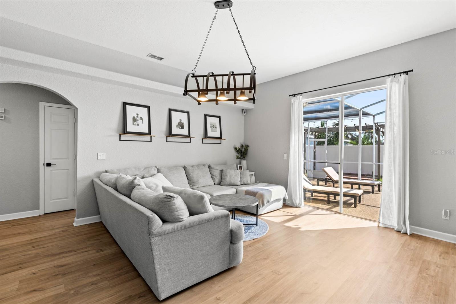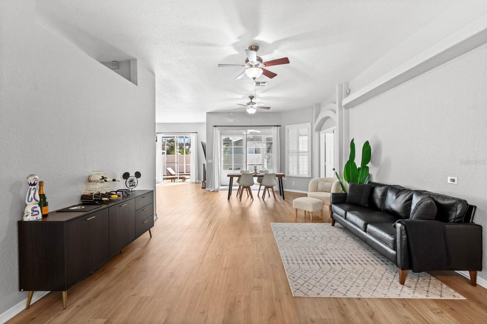 **Charming Pool Home– Perfect for Relaxation and Entertaining! ** Welcome to your dream home! This stunning single-family residence boasts 2,145 square feet of thoughtfully designed living space, perfect for families and entertaining guests. Nestled in a desirable neighborhood, this property offers 3 generous bedrooms, each offering ample natural light and closet space. The primary suite is a peaceful retreat, complete with an en-suite bathroom for your convenience. The open-concept layout seamlessly connects the living room, dining area, and kitchen, creating a warm and welcoming atmosphere. Ideal for family gatherings or cozy nights in! The well-equipped kitchen features modern appliances, plenty of counter space, and 2 pantries’ making it a chef's delight. Step outside to your private backyard paradise, complete with a sparkling pool, and fire pit. Perfect for summer fun or relaxing under the sun! Enjoy a laundry room with ample storage leading to your large 2 car garage. This home features new vinyl flooring throughout the main areas, and a whole home water softener system. Your dream home awaits! Located close to schools, entertainment, shopping, dining and all the major attractions like Walt Disney World, Universal and Seaworld. This property is a perfect blend of comfort and convenience. This community does not allow short term rentals. Don’t miss your opportunity – schedule a showing today!