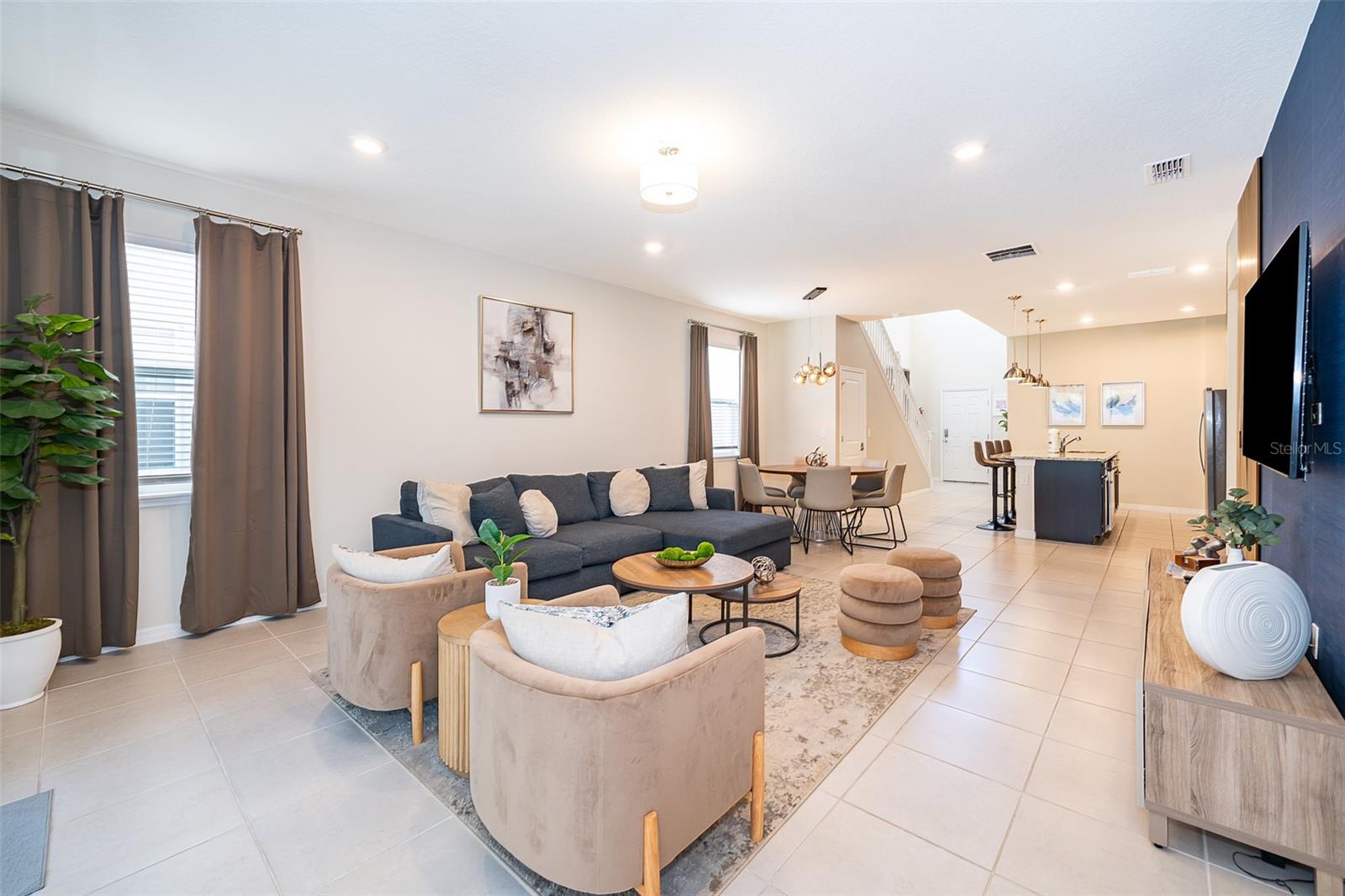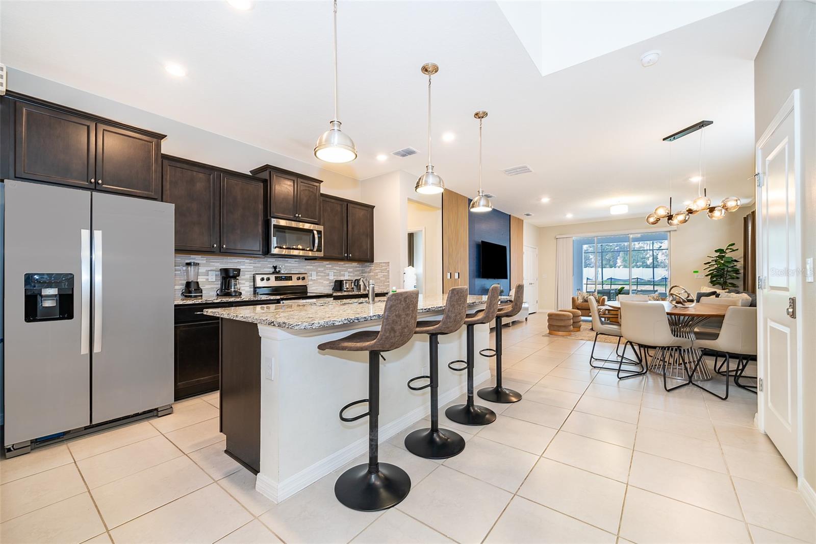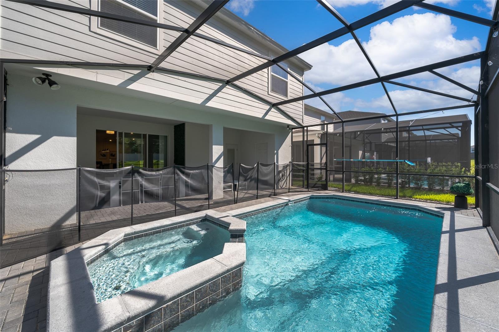 This 6-bedroom, 4.5-bathroom home is fully furnished and designed for comfort and style, making it an ideal choice for a vacation rental. The property features a private pool, enclosed with a fine mesh screen to keep the outdoor space insect-free, providing a relaxing and enjoyable atmosphere for guests. The house offers spacious living areas, including a fully equipped kitchen with modern appliances, large dining area, and comfortable living room. Each bedroom is tastefully decorated, providing cozy sleeping arrangements for guests. The master suite includes an en-suite bathroom, and other bedrooms are strategically located to provide privacy and convenience. This home is part of a luxury gated community that provides 24/7 security at the entrance. Guests have access to a wide range of resort-style amenities, including: Community pools and hot tubs. Fitness center with modern equipment. Sports courts, including tennis and basketball courts. A clubhouse with dining and social areas. Located in close proximity to Orlando's world-famous theme parks, such as Walt Disney World and Universal Studios, this home is perfectly situated for those seeking both relaxation and adventure. With its blend of luxury, convenience, and proximity to top attractions, this Davenport home is a fantastic option for a vacation rental.