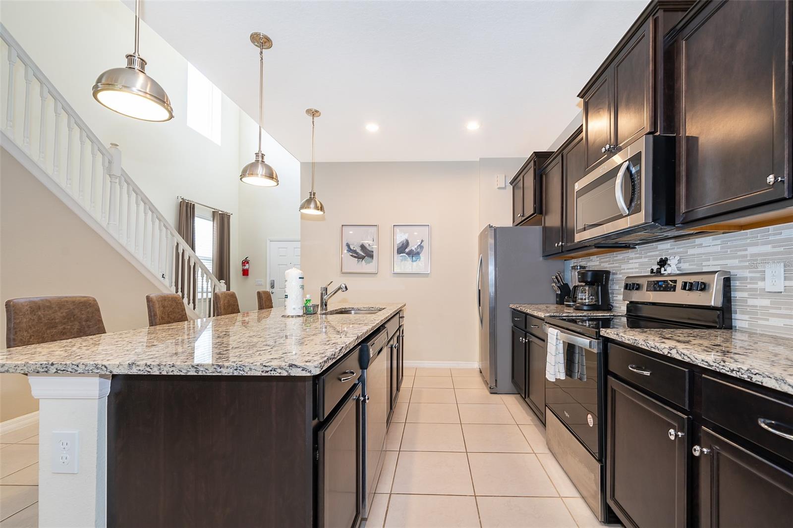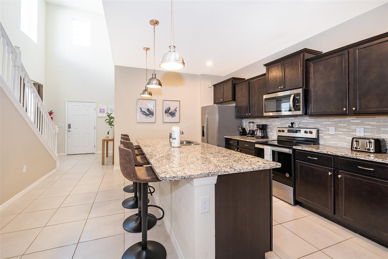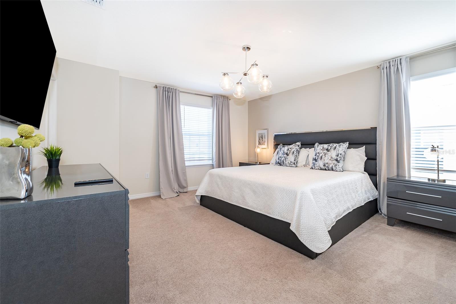 This 6-bedroom, 4.5-bathroom home is fully furnished and designed for comfort and style, making it an ideal choice for a vacation rental. The property features a private pool, enclosed with a fine mesh screen to keep the outdoor space insect-free, providing a relaxing and enjoyable atmosphere for guests. The house offers spacious living areas, including a fully equipped kitchen with modern appliances, large dining area, and comfortable living room. Each bedroom is tastefully decorated, providing cozy sleeping arrangements for guests. The master suite includes an en-suite bathroom, and other bedrooms are strategically located to provide privacy and convenience. This home is part of a luxury gated community that provides 24/7 security at the entrance. Guests have access to a wide range of resort-style amenities, including: Community pools and hot tubs. Fitness center with modern equipment. Sports courts, including tennis and basketball courts. A clubhouse with dining and social areas. Located in close proximity to Orlando's world-famous theme parks, such as Walt Disney World and Universal Studios, this home is perfectly situated for those seeking both relaxation and adventure. With its blend of luxury, convenience, and proximity to top attractions, this Davenport home is a fantastic option for a vacation rental.
