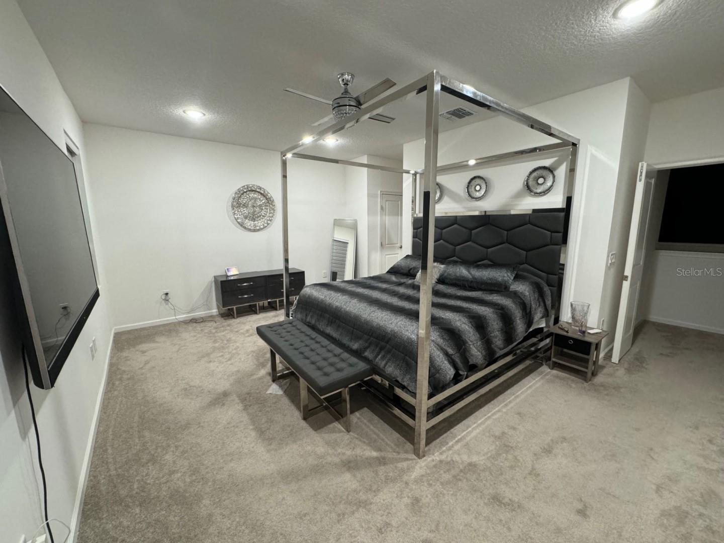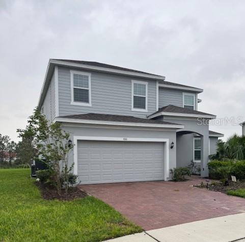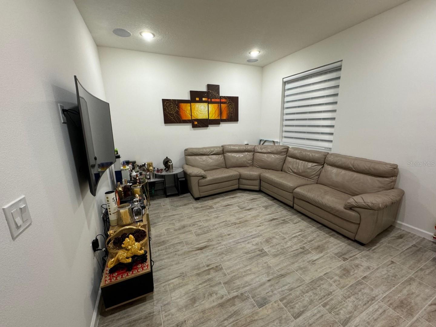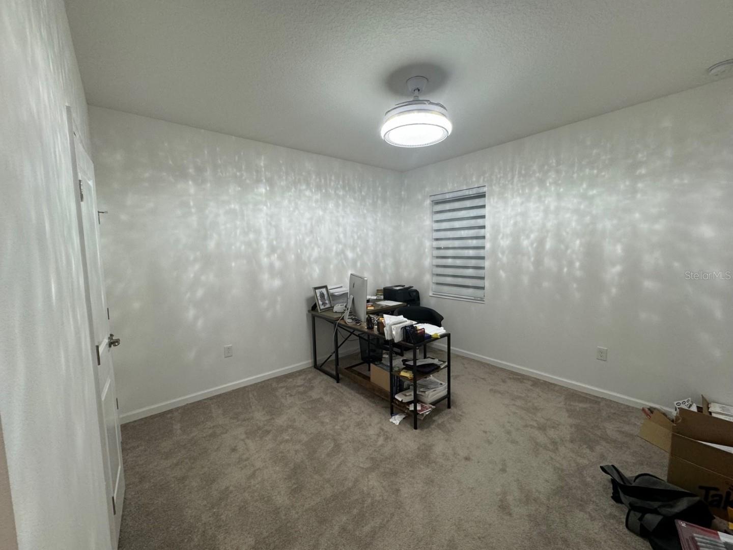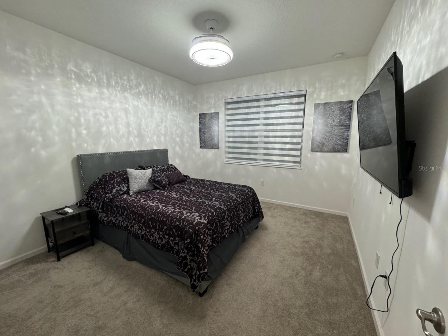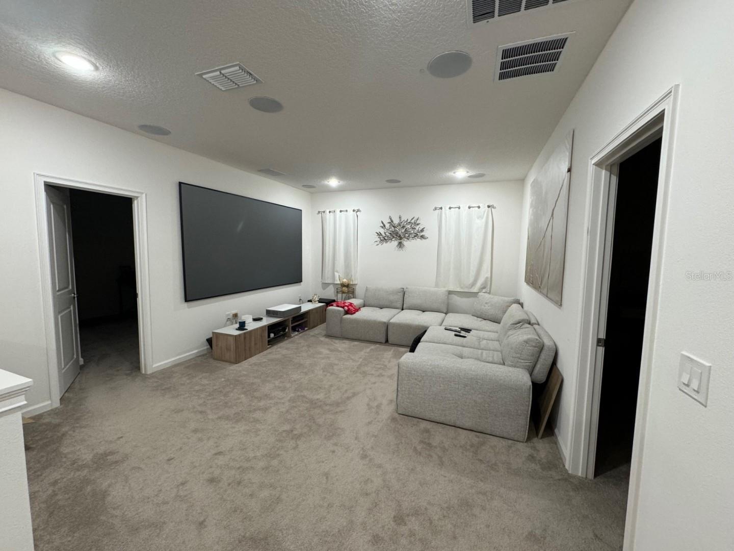 Welcome to 826 Grazie Loop, a stunning new construction single-family home located in the desirable city of Davenport, Florida. This modern home was built in 2022 and boasts a spacious and open floor plan perfect for families or entertaining guests. Step inside this two-story home and you will find three bedrooms, three bathrooms, and a total of 3,121 square feet of finished living space. The home features high-end finishes and fixtures throughout, including Tile flooring, Quartz countertops, with waterfall island with gourmet Kitchen with double oven and stainless steel appliances. The main level of the home includes a open concept with large living room with 5.1 in ceiling surround speaker system , dining area, and a gourmet kitchen The kitchen opens up to a covered patio, perfect for enjoying your morning coffee or dining al fresco. Also a bedroom and a full bathroom and a office room with 5.1 surround in ceiling speaker system Upstairs, you will find the master suite complete with a walk-in closet and a luxurious en-suite bathroom with large shower. Three additional bedrooms and a full bathroom with a loft with 7.1 surround sound in ceiling speakers system round out the second floor of the home. Outside, the home sits on a spacious lot measuring 9,688 square feet, providing plenty of room for outdoor activities or even the possibility of adding a pool. The home also includes a three car tandem garage and a paved driveway for additional parking with whole home water filter system, a Leased solar system will need to be transferred to new buyers. 826 Grazie Loop is located in a quiet and family-friendly neighborhood, close to shopping, dining, and entertainment options and close to all Disney parks. The community also offers amenities such as a swimming pool, playground, and walking trails. Don't miss your chance to own this beautiful new construction home in Davenport, Florida. Schedule your showing today and make this property your forever home!