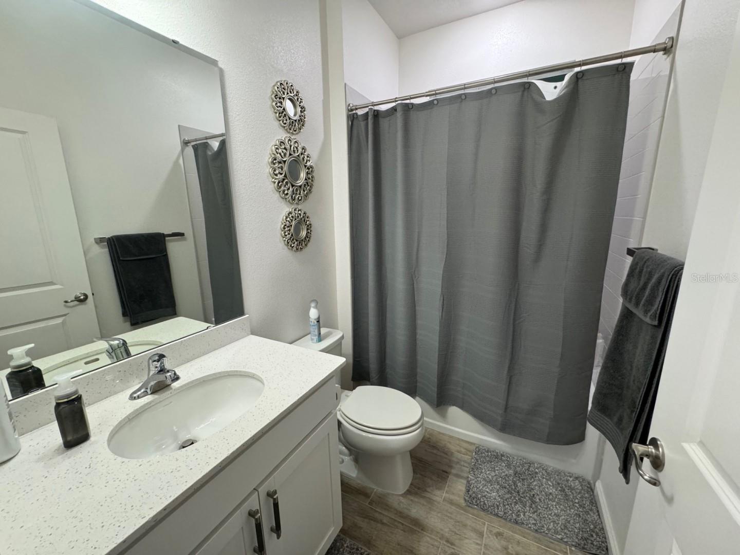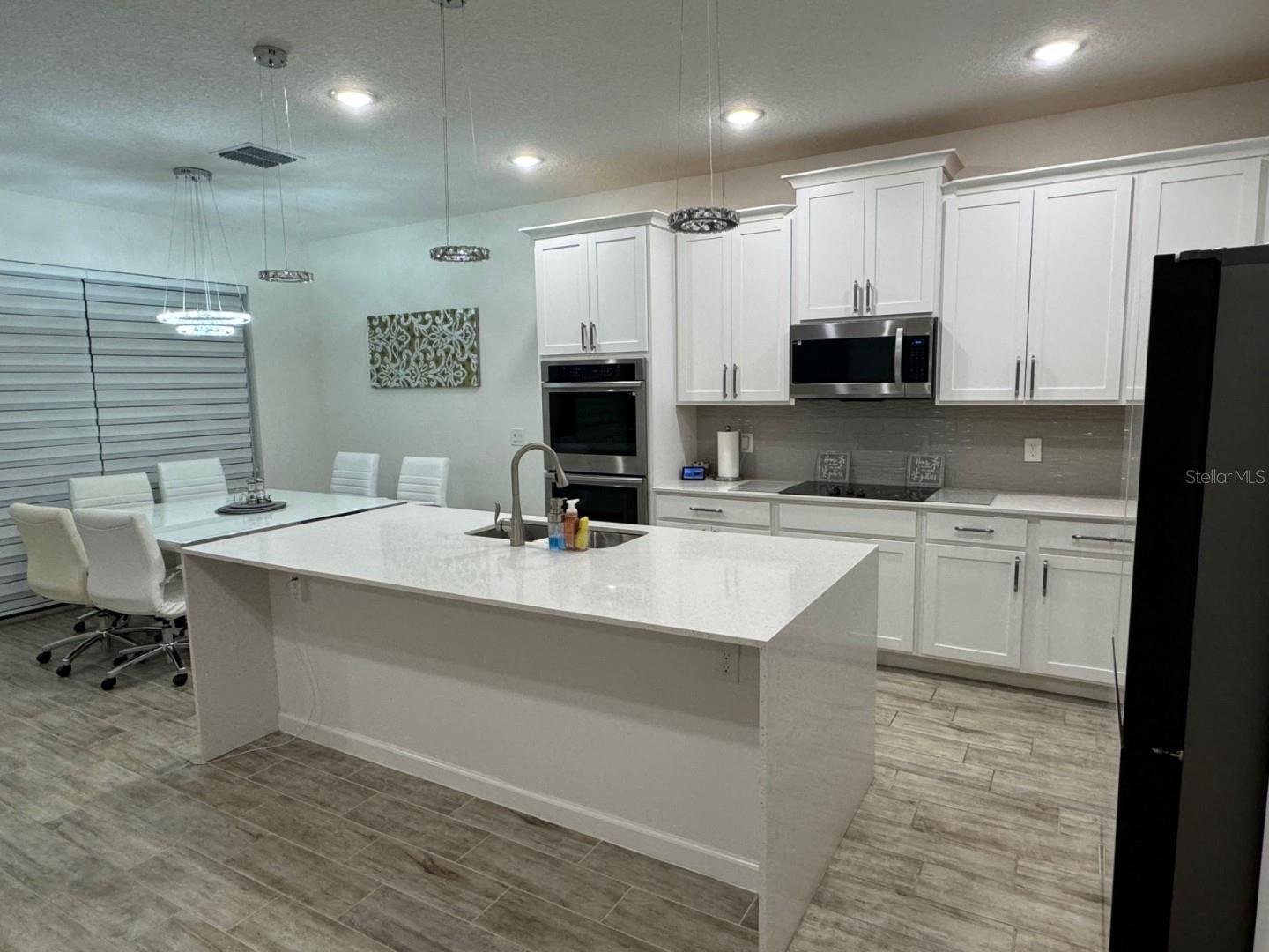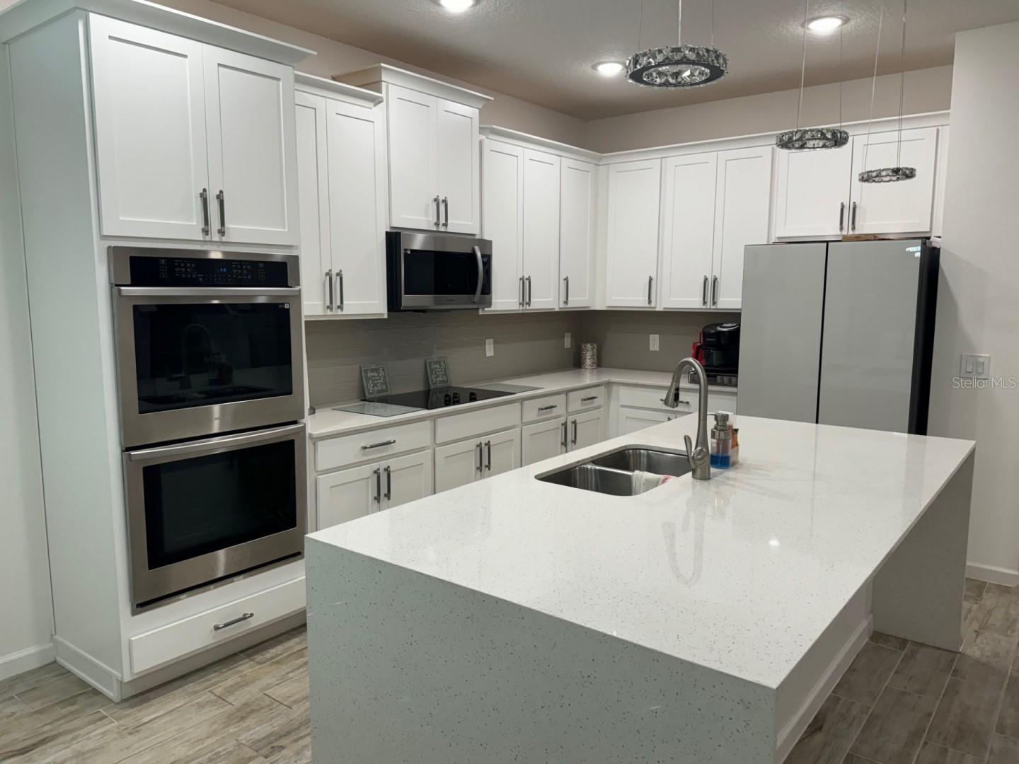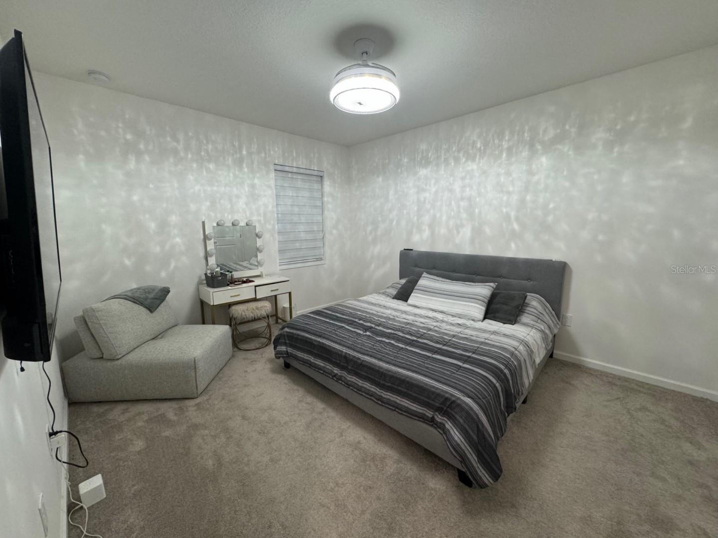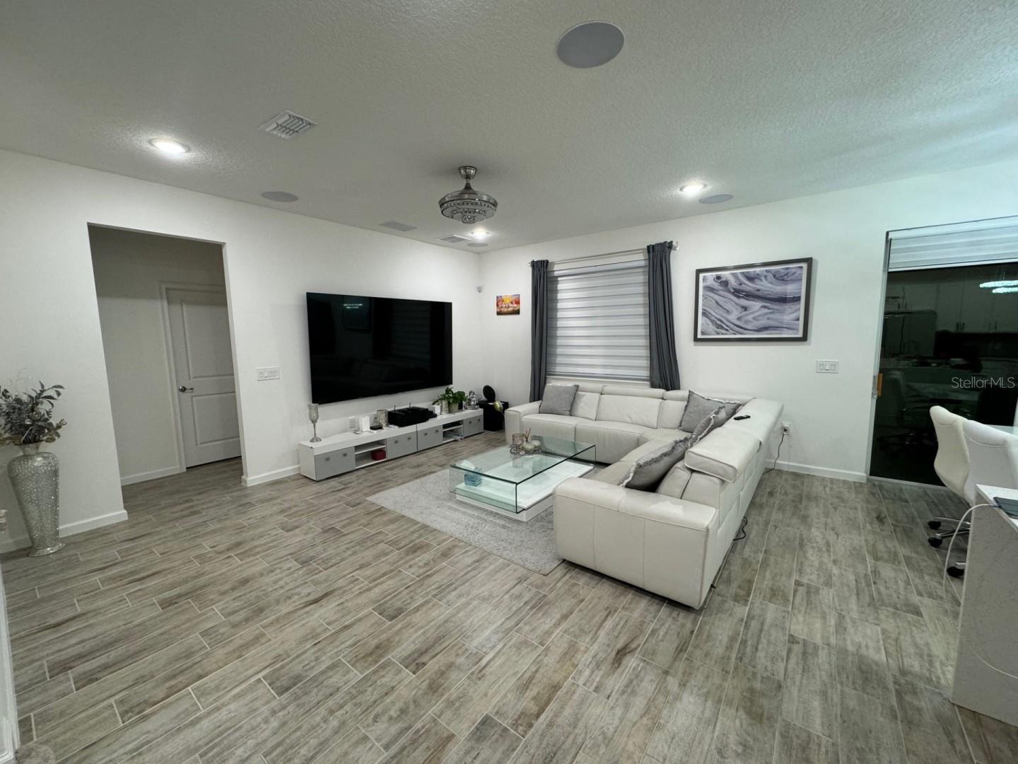 Welcome to 826 Grazie Loop, a stunning new construction single-family home located in the desirable city of Davenport, Florida. This modern home was built in 2022 and boasts a spacious and open floor plan perfect for families or entertaining guests. Step inside this two-story home and you will find three bedrooms, three bathrooms, and a total of 3,121 square feet of finished living space. The home features high-end finishes and fixtures throughout, including Tile flooring, Quartz countertops, with waterfall island with gourmet Kitchen with double oven and stainless steel appliances. The main level of the home includes a open concept with large living room with 5.1 in ceiling surround speaker system , dining area, and a gourmet kitchen The kitchen opens up to a covered patio, perfect for enjoying your morning coffee or dining al fresco. Also a bedroom and a full bathroom and a office room with 5.1 surround in ceiling speaker system Upstairs, you will find the master suite complete with a walk-in closet and a luxurious en-suite bathroom with large shower. Three additional bedrooms and a full bathroom with a loft with 7.1 surround sound in ceiling speakers system round out the second floor of the home. Outside, the home sits on a spacious lot measuring 9,688 square feet, providing plenty of room for outdoor activities or even the possibility of adding a pool. The home also includes a three car tandem garage and a paved driveway for additional parking with whole home water filter system, a Leased solar system will need to be transferred to new buyers. 826 Grazie Loop is located in a quiet and family-friendly neighborhood, close to shopping, dining, and entertainment options and close to all Disney parks. The community also offers amenities such as a swimming pool, playground, and walking trails. Don't miss your chance to own this beautiful new construction home in Davenport, Florida. Schedule your showing today and make this property your forever home!