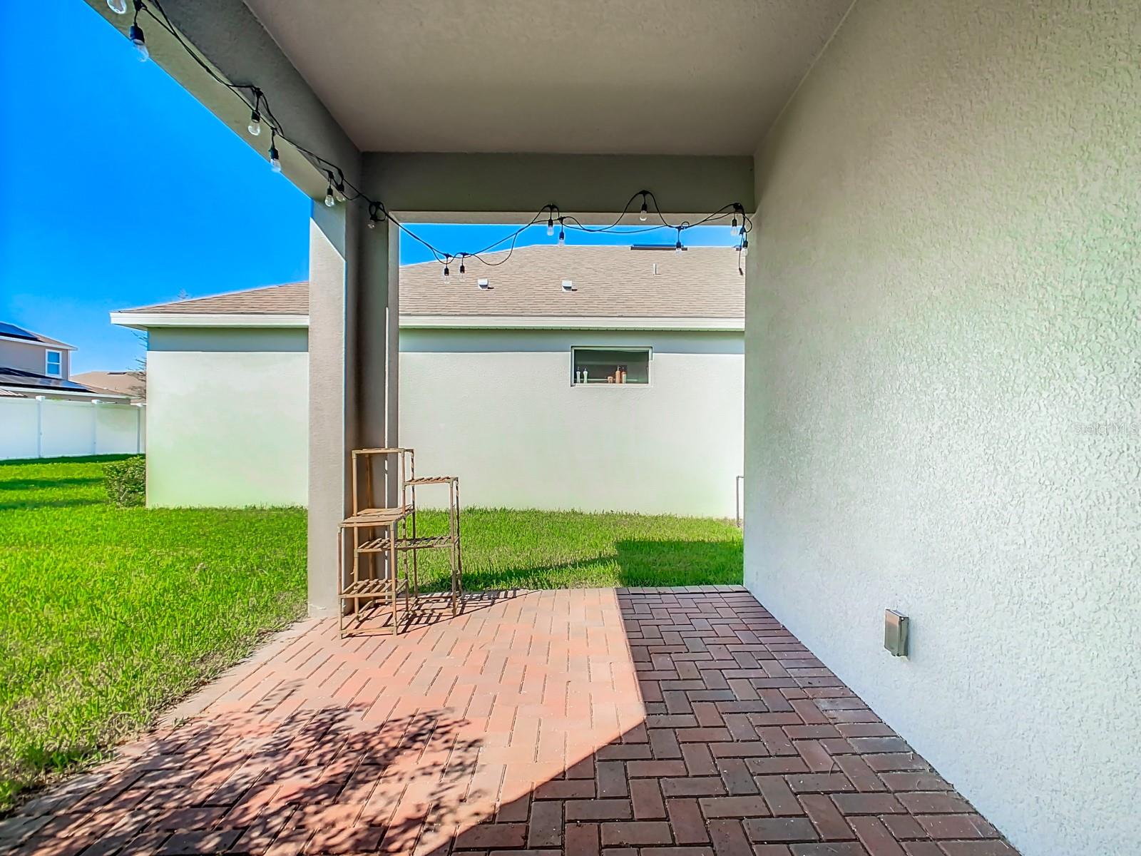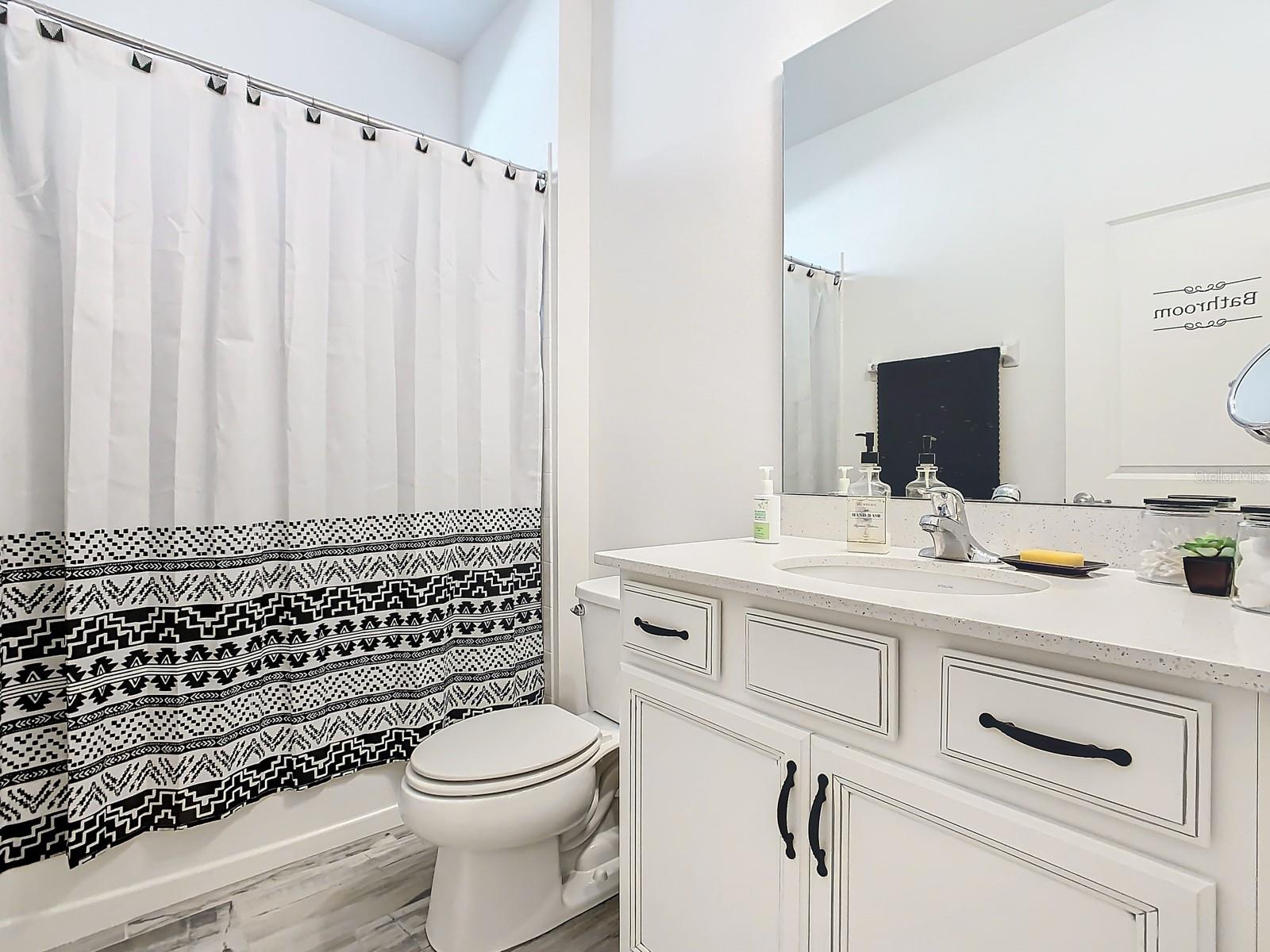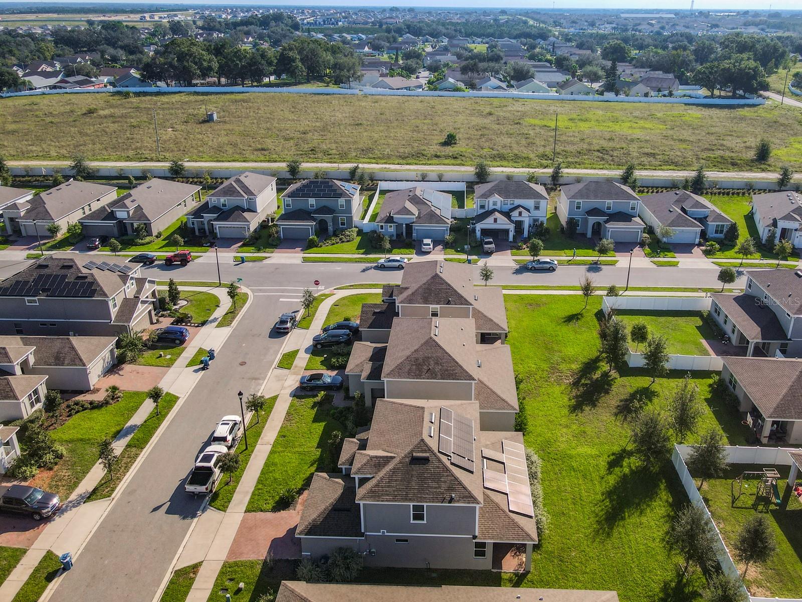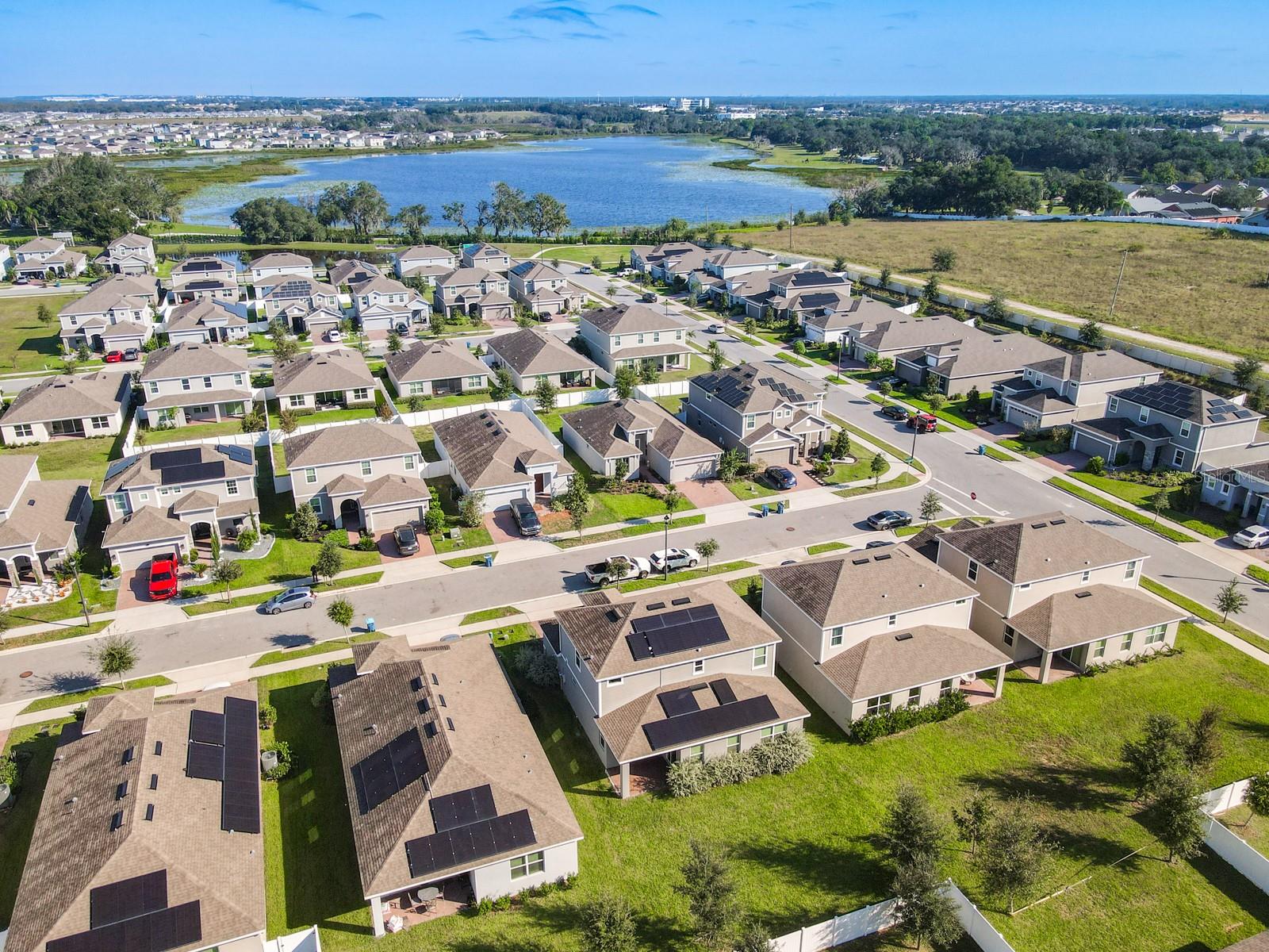 Discover this beautifully designed 4-bed, 3-bath home, built in 2021 by Park Square Homes. COMES WITH SOLAR PANEL PACKAGE providing very low energy costs averaging $25-$80 per month! Located in the vibrant community of Davenport, FL, this property combines luxury with functionality, ideal for family life. This home features 4 spacious bedrooms, 3 full bathrooms and over 2,300 sq ft of modern living space. A cozy front porch greets you before you enter the home. Some of the highlights of this like-new home are the open kitchen, complete with sleek modern appliances including a Samsung Bespoke designer refrigerator, quartz countertops, farmhouse sink, cooktop, built-in microwave & oven for easy access and ample storage. The flooring was upgraded with stylish ceramic tile throughout downstairs. Enjoy the bonus room downstairs which can be used as an office, den, workspace or craft nook. Upstairs has a versatile loft area perfect for a playroom or additional living space. The primary bedroom features a modern bathroom with a walk-in shower and built-in bench, dual sinks and a massive walk-in closet. There is a convenient laundry chute from the second floor down to the laundry room equipped with Samsung washer and dryer set. Off the living room there is a covered lanai and a spacious backyard, perfect for entertaining. The two-car garage with additional storage options offers plenty of parking. The community amenities include: a playground, soccer field, swimming pool. Enjoy these with a LOW HOA of just $207 per quarter! No CDD fee. Situated in a growing area of Davenport, this home is just 30 minutes away from Disney World, making it a perfect spot for both relaxation and fun. Close to schools, and shopping centers, you’ll have everything you need within reach. Schedule your showing today! 3D Tour: https://nodalview.com/s/2inz4Ti9z6remwJ_bbXgJ9