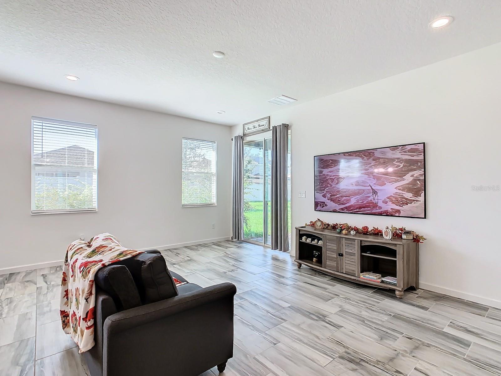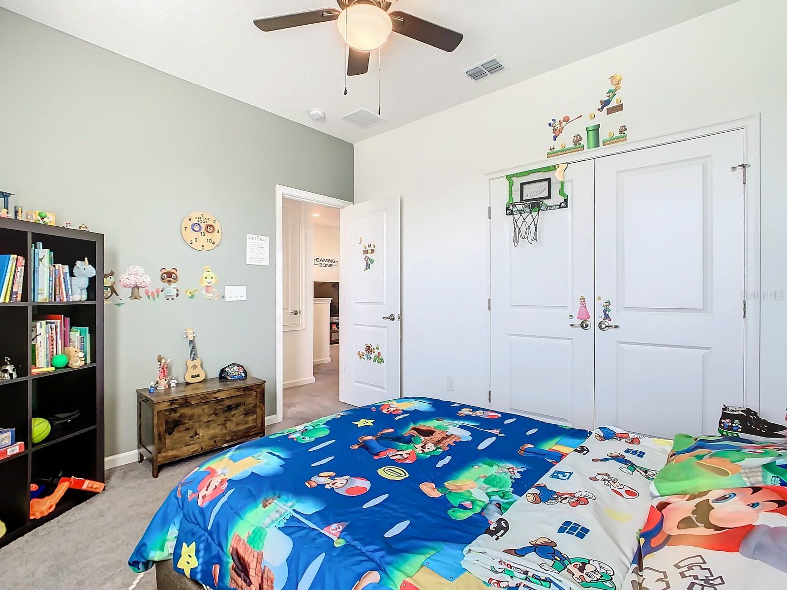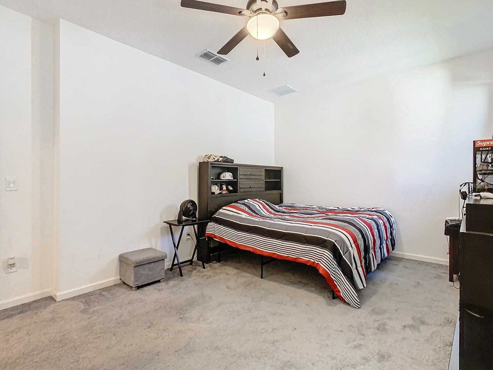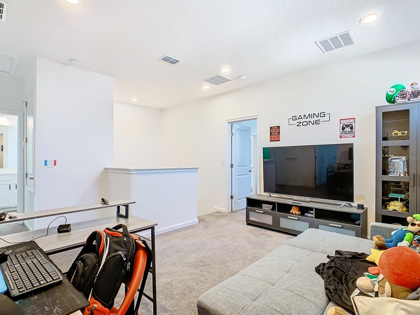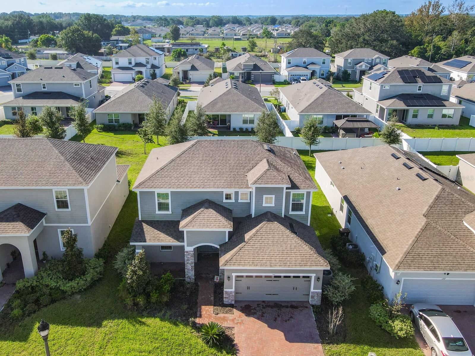 Discover this beautifully designed 4-bed, 3-bath home, built in 2021 by Park Square Homes. COMES WITH SOLAR PANEL PACKAGE providing very low energy costs averaging $25-$80 per month! Located in the vibrant community of Davenport, FL, this property combines luxury with functionality, ideal for family life. This home features 4 spacious bedrooms, 3 full bathrooms and over 2,300 sq ft of modern living space. A cozy front porch greets you before you enter the home. Some of the highlights of this like-new home are the open kitchen, complete with sleek modern appliances including a Samsung Bespoke designer refrigerator, quartz countertops, farmhouse sink, cooktop, built-in microwave & oven for easy access and ample storage. The flooring was upgraded with stylish ceramic tile throughout downstairs. Enjoy the bonus room downstairs which can be used as an office, den, workspace or craft nook. Upstairs has a versatile loft area perfect for a playroom or additional living space. The primary bedroom features a modern bathroom with a walk-in shower and built-in bench, dual sinks and a massive walk-in closet. There is a convenient laundry chute from the second floor down to the laundry room equipped with Samsung washer and dryer set. Off the living room there is a covered lanai and a spacious backyard, perfect for entertaining. The two-car garage with additional storage options offers plenty of parking. The community amenities include: a playground, soccer field, swimming pool. Enjoy these with a LOW HOA of just $207 per quarter! No CDD fee. Situated in a growing area of Davenport, this home is just 30 minutes away from Disney World, making it a perfect spot for both relaxation and fun. Close to schools, and shopping centers, you’ll have everything you need within reach. Schedule your showing today! 3D Tour: https://nodalview.com/s/2inz4Ti9z6remwJ_bbXgJ9