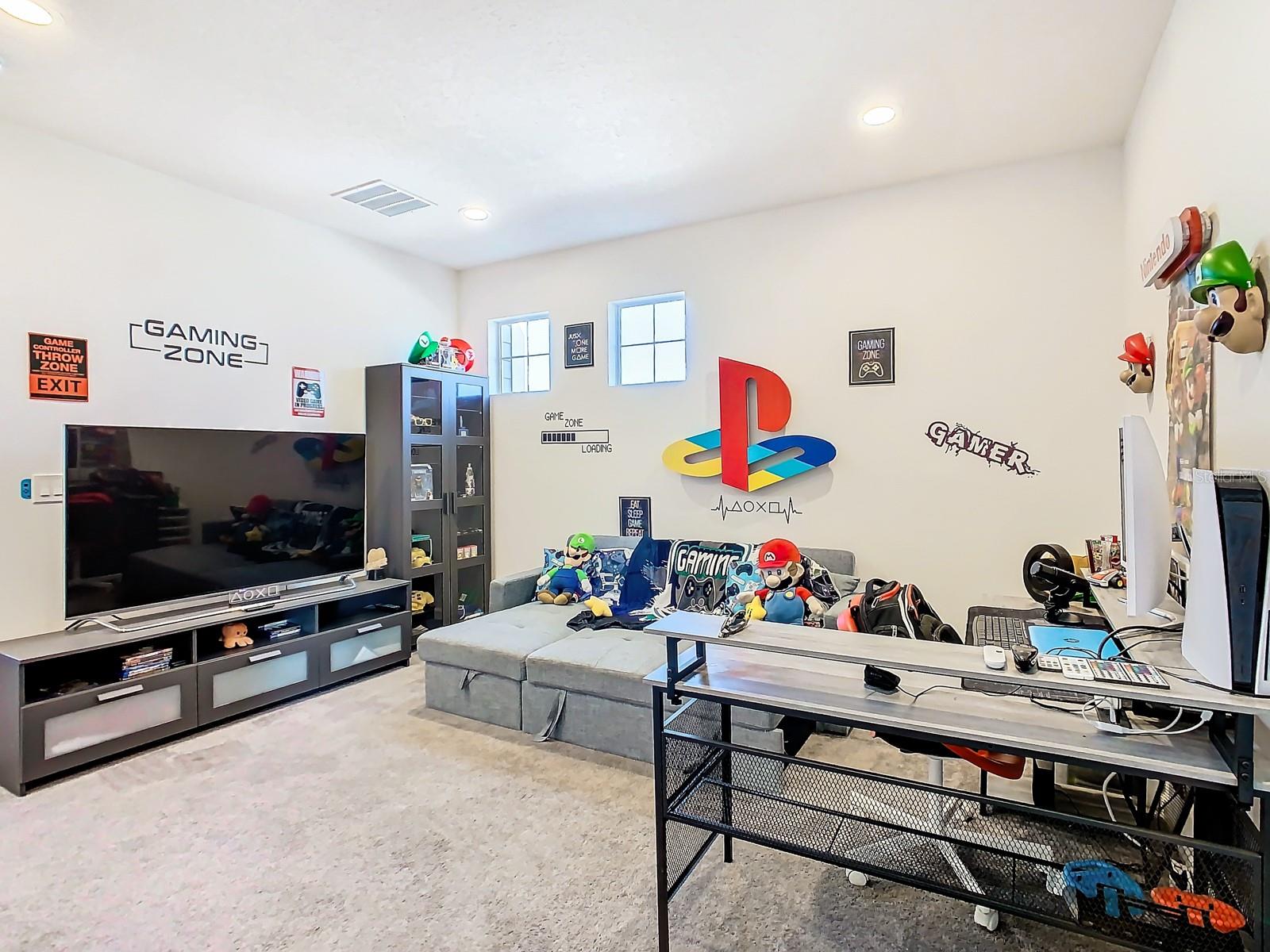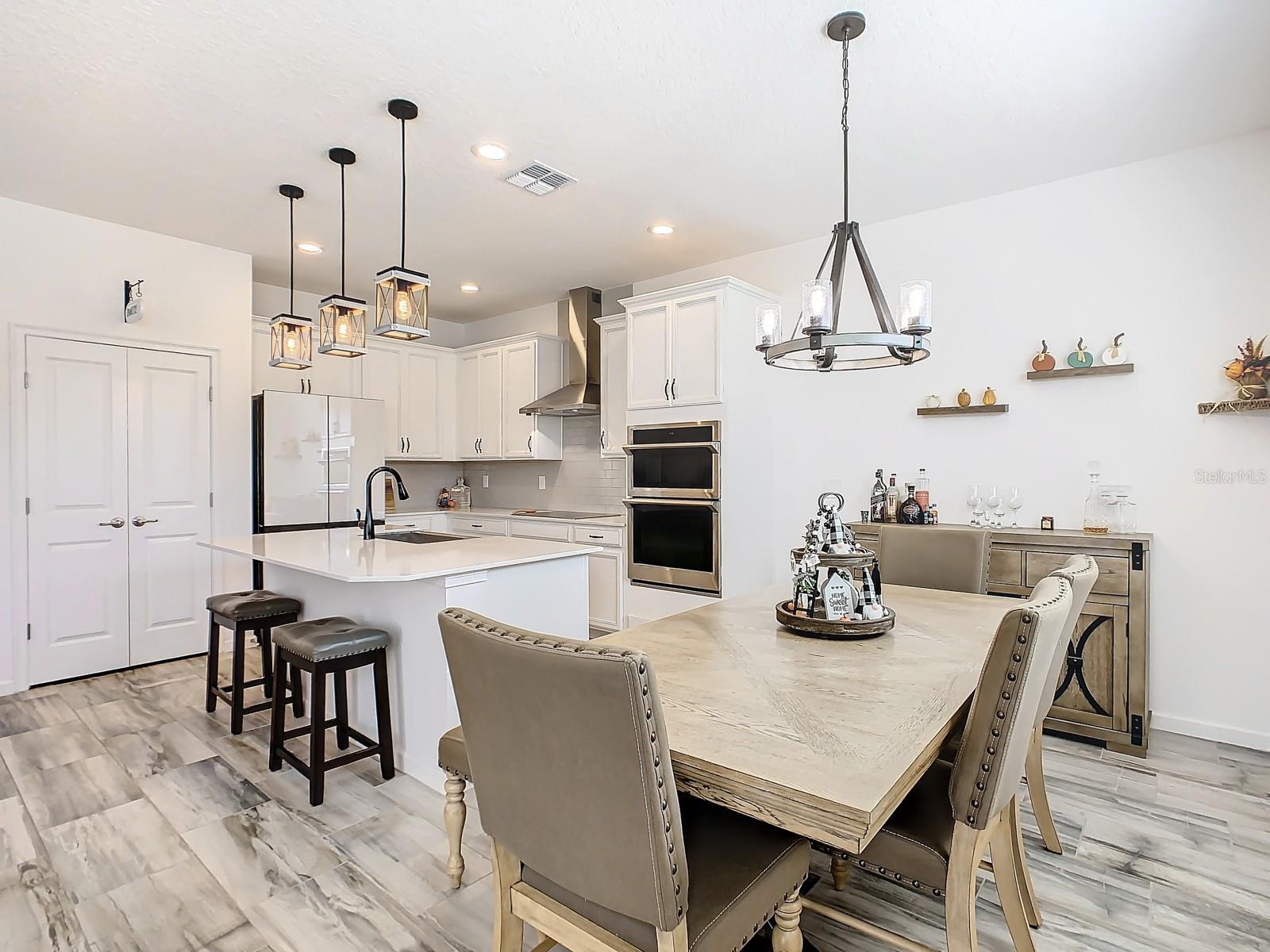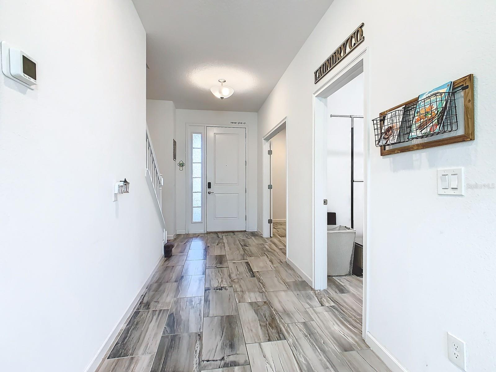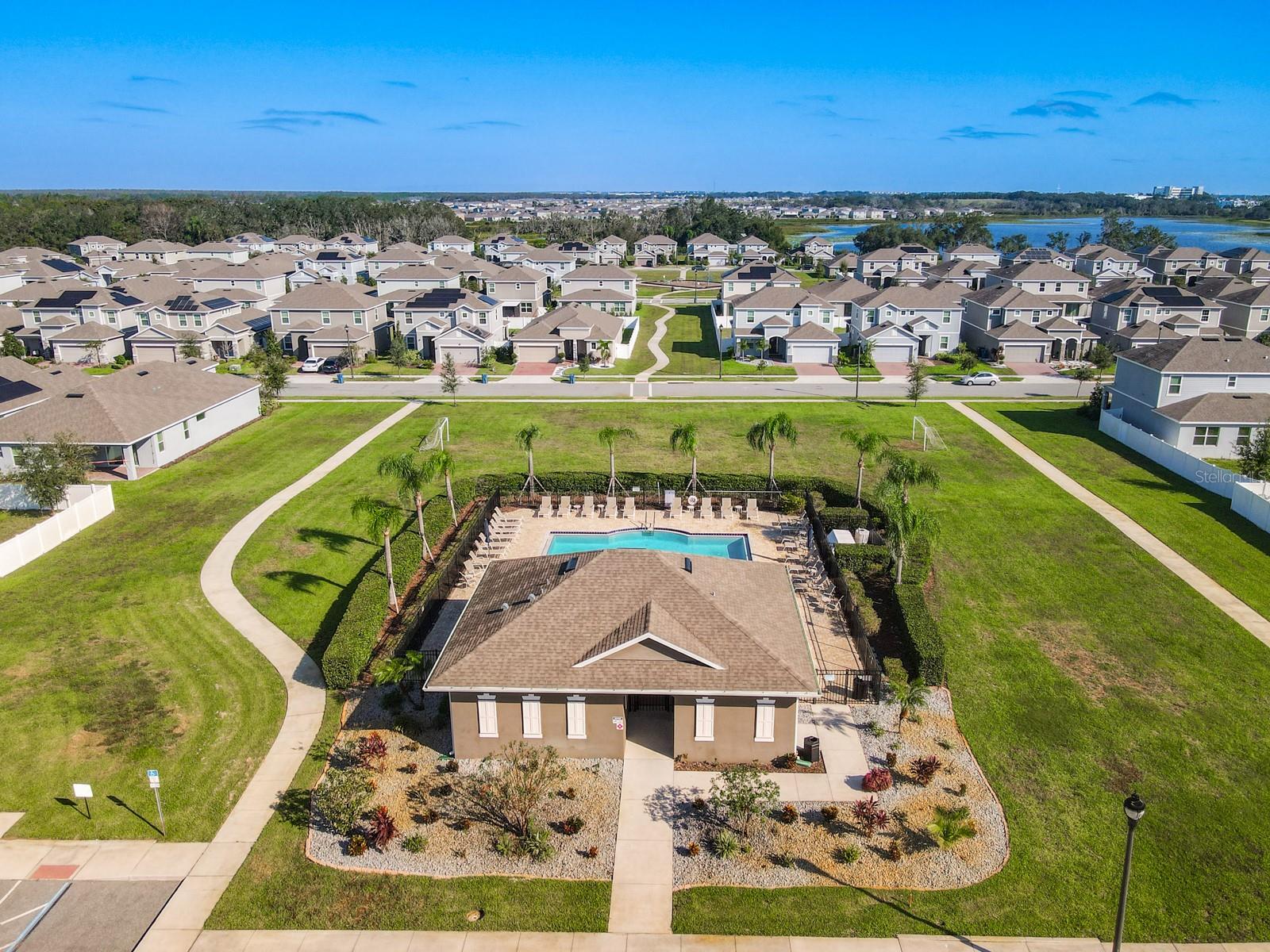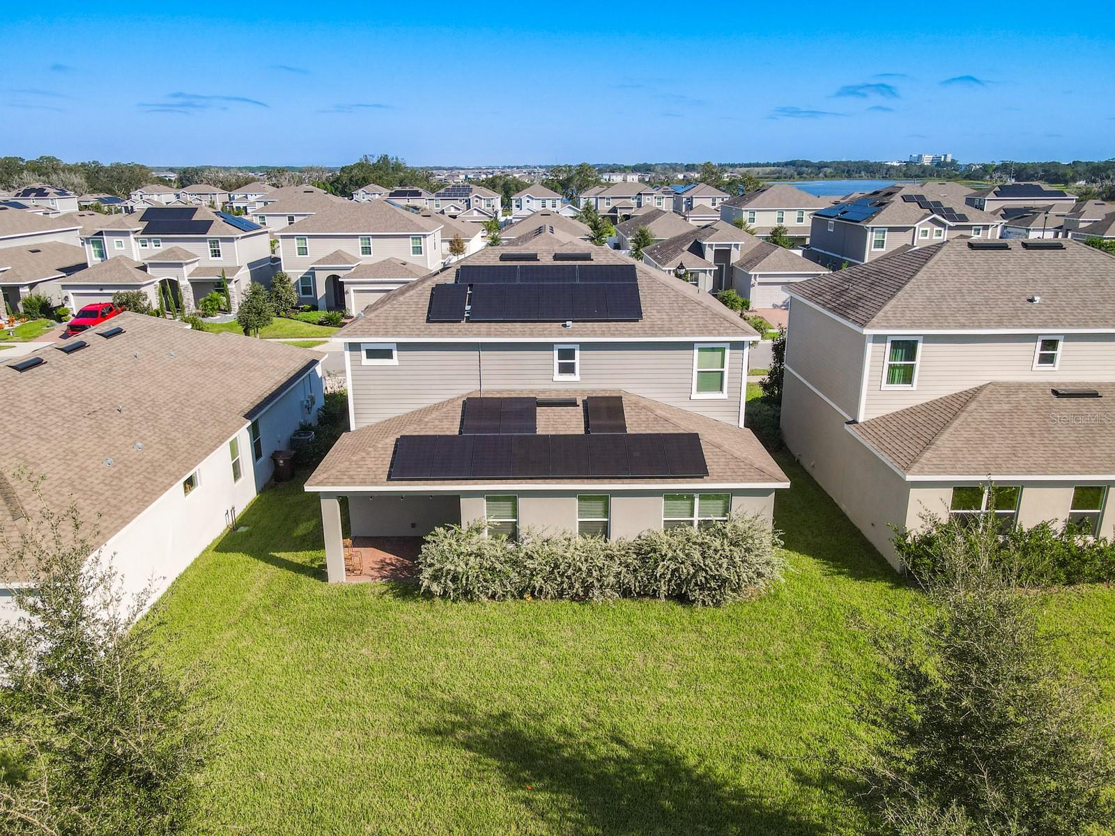 Discover this beautifully designed 4-bed, 3-bath home, built in 2021 by Park Square Homes. COMES WITH SOLAR PANEL PACKAGE providing very low energy costs averaging $25-$80 per month! Located in the vibrant community of Davenport, FL, this property combines luxury with functionality, ideal for family life. This home features 4 spacious bedrooms, 3 full bathrooms and over 2,300 sq ft of modern living space. A cozy front porch greets you before you enter the home. Some of the highlights of this like-new home are the open kitchen, complete with sleek modern appliances including a Samsung Bespoke designer refrigerator, quartz countertops, farmhouse sink, cooktop, built-in microwave & oven for easy access and ample storage. The flooring was upgraded with stylish ceramic tile throughout downstairs. Enjoy the bonus room downstairs which can be used as an office, den, workspace or craft nook. Upstairs has a versatile loft area perfect for a playroom or additional living space. The primary bedroom features a modern bathroom with a walk-in shower and built-in bench, dual sinks and a massive walk-in closet. There is a convenient laundry chute from the second floor down to the laundry room equipped with Samsung washer and dryer set. Off the living room there is a covered lanai and a spacious backyard, perfect for entertaining. The two-car garage with additional storage options offers plenty of parking. The community amenities include: a playground, soccer field, swimming pool. Enjoy these with a LOW HOA of just $207 per quarter! No CDD fee. Situated in a growing area of Davenport, this home is just 30 minutes away from Disney World, making it a perfect spot for both relaxation and fun. Close to schools, and shopping centers, you’ll have everything you need within reach. Schedule your showing today! 3D Tour: https://nodalview.com/s/2inz4Ti9z6remwJ_bbXgJ9
