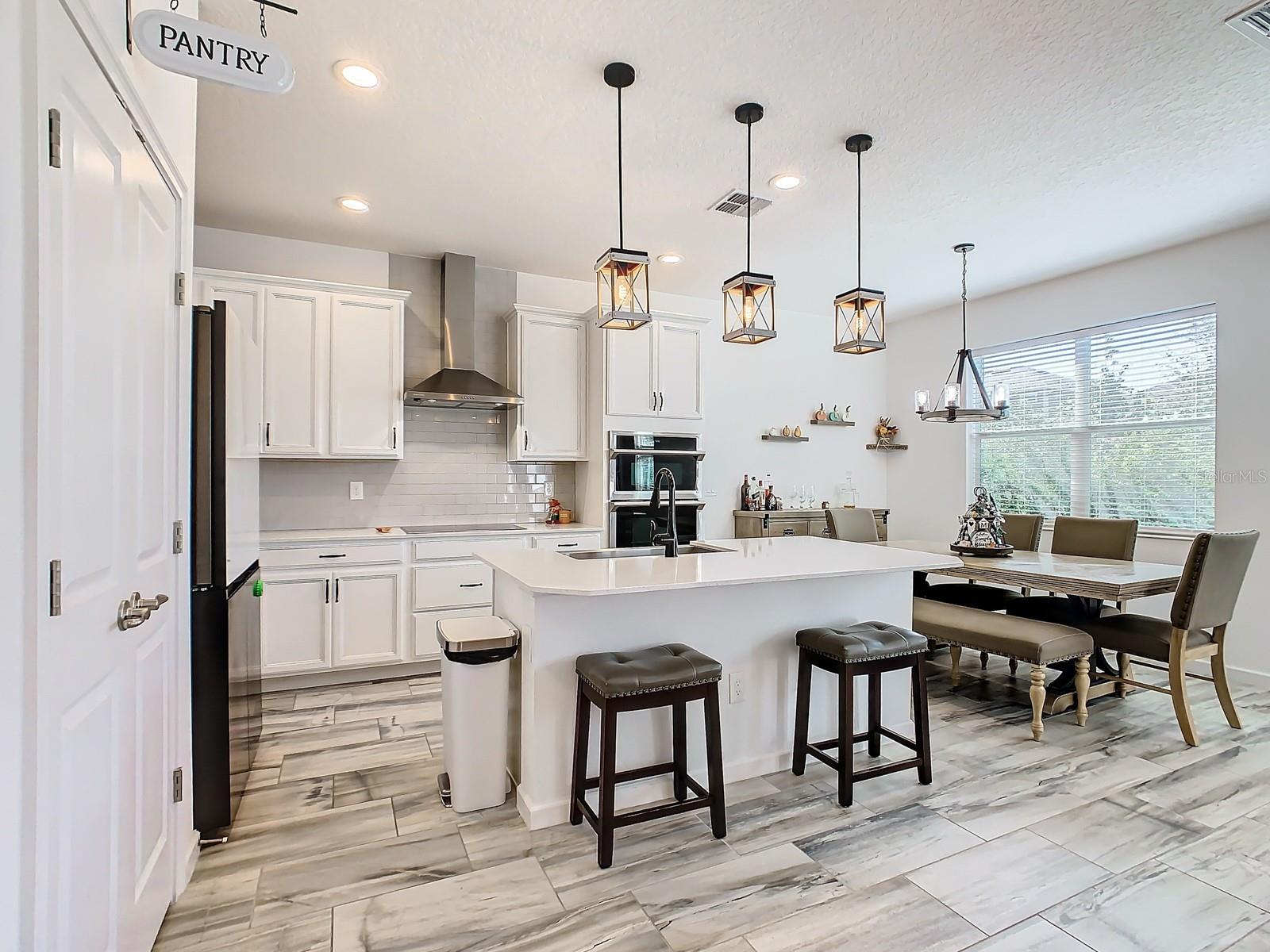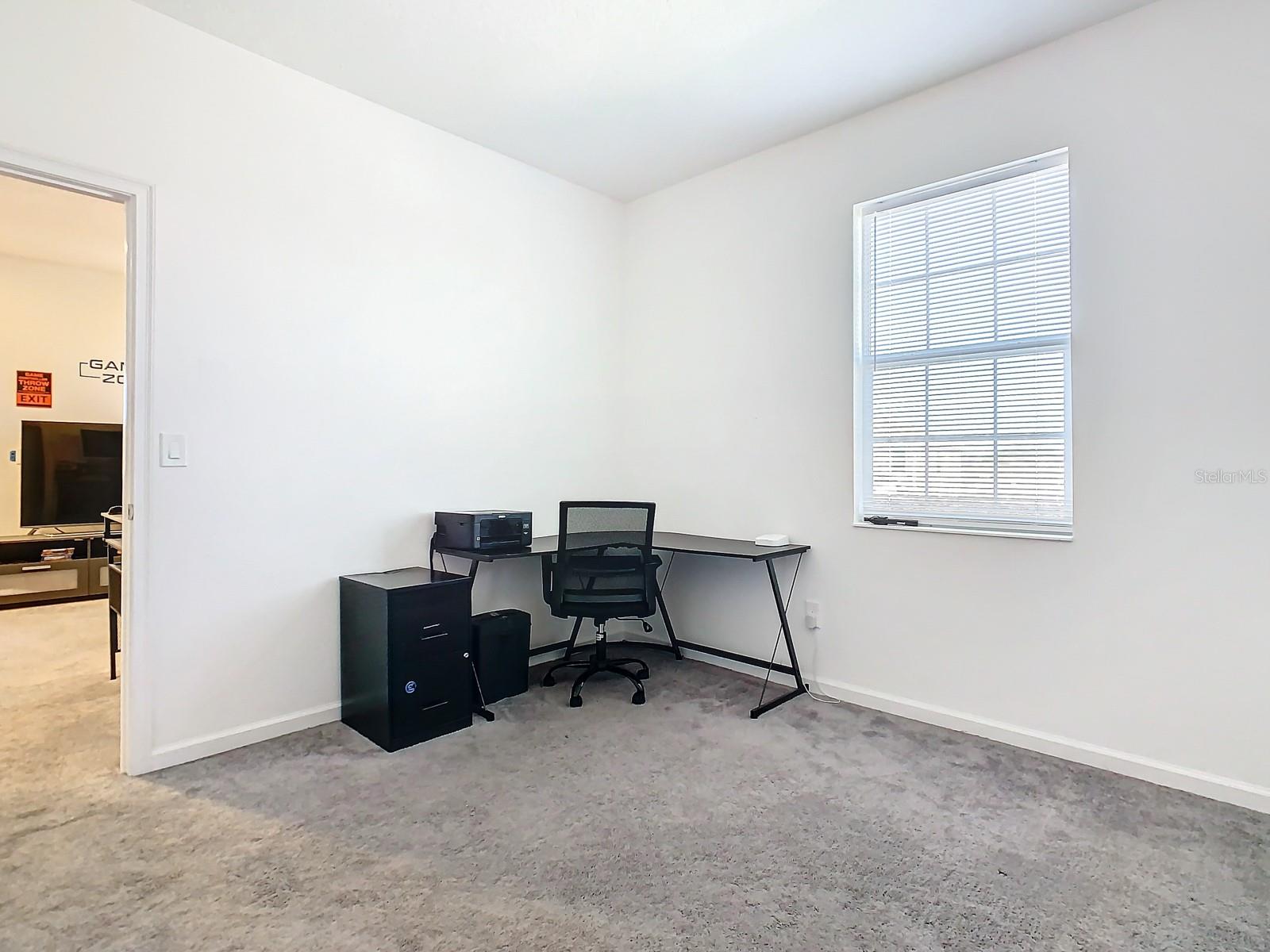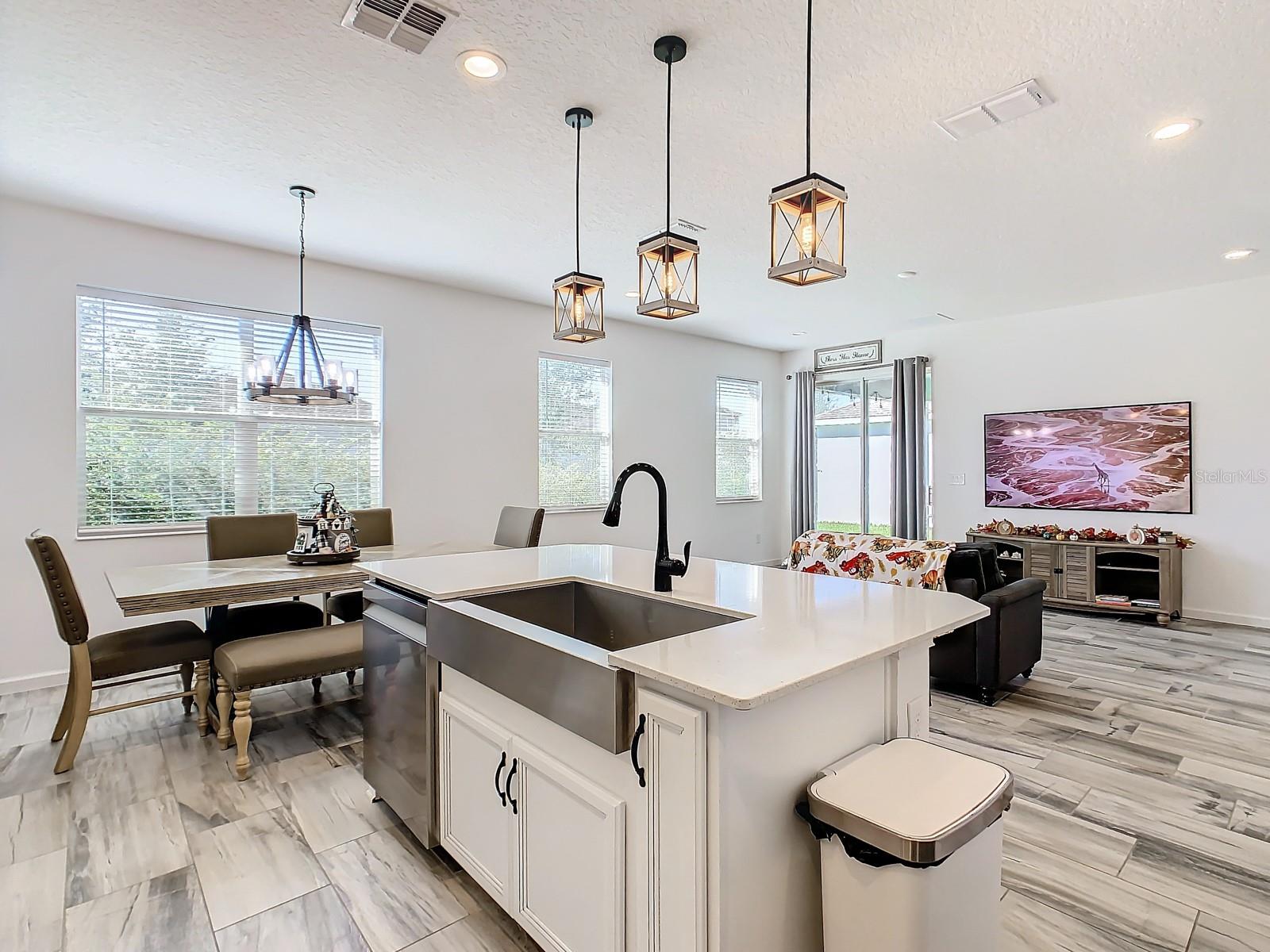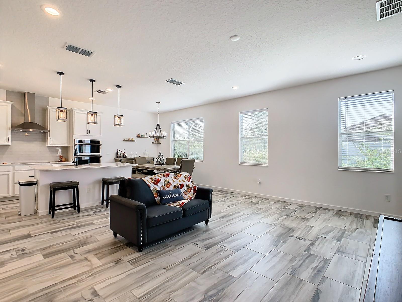 Discover this beautifully designed 4-bed, 3-bath home, built in 2021 by Park Square Homes. COMES WITH SOLAR PANEL PACKAGE providing very low energy costs averaging $25-$80 per month! Located in the vibrant community of Davenport, FL, this property combines luxury with functionality, ideal for family life. This home features 4 spacious bedrooms, 3 full bathrooms and over 2,300 sq ft of modern living space. A cozy front porch greets you before you enter the home. Some of the highlights of this like-new home are the open kitchen, complete with sleek modern appliances including a Samsung Bespoke designer refrigerator, quartz countertops, farmhouse sink, cooktop, built-in microwave & oven for easy access and ample storage. The flooring was upgraded with stylish ceramic tile throughout downstairs. Enjoy the bonus room downstairs which can be used as an office, den, workspace or craft nook. Upstairs has a versatile loft area perfect for a playroom or additional living space. The primary bedroom features a modern bathroom with a walk-in shower and built-in bench, dual sinks and a massive walk-in closet. There is a convenient laundry chute from the second floor down to the laundry room equipped with Samsung washer and dryer set. Off the living room there is a covered lanai and a spacious backyard, perfect for entertaining. The two-car garage with additional storage options offers plenty of parking. The community amenities include: a playground, soccer field, swimming pool. Enjoy these with a LOW HOA of just $207 per quarter! No CDD fee. Situated in a growing area of Davenport, this home is just 30 minutes away from Disney World, making it a perfect spot for both relaxation and fun. Close to schools, and shopping centers, you’ll have everything you need within reach. Schedule your showing today! 3D Tour: https://nodalview.com/s/2inz4Ti9z6remwJ_bbXgJ9