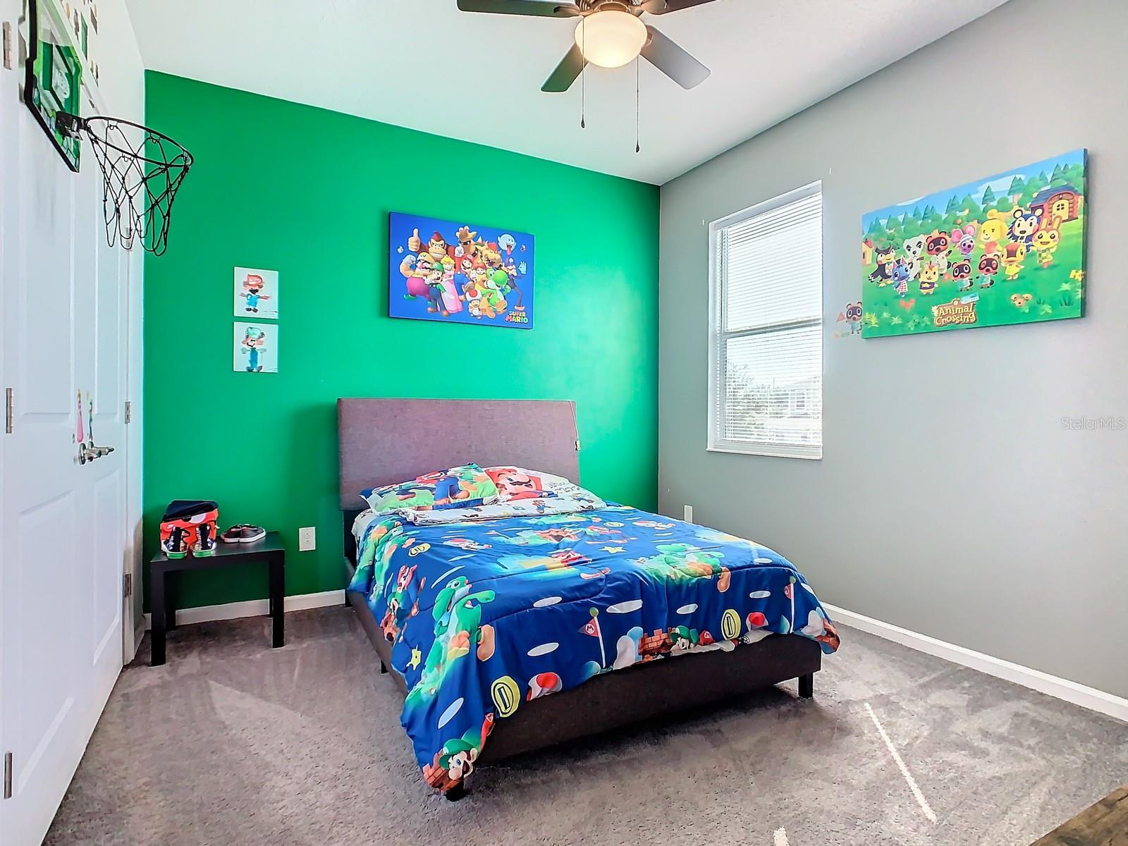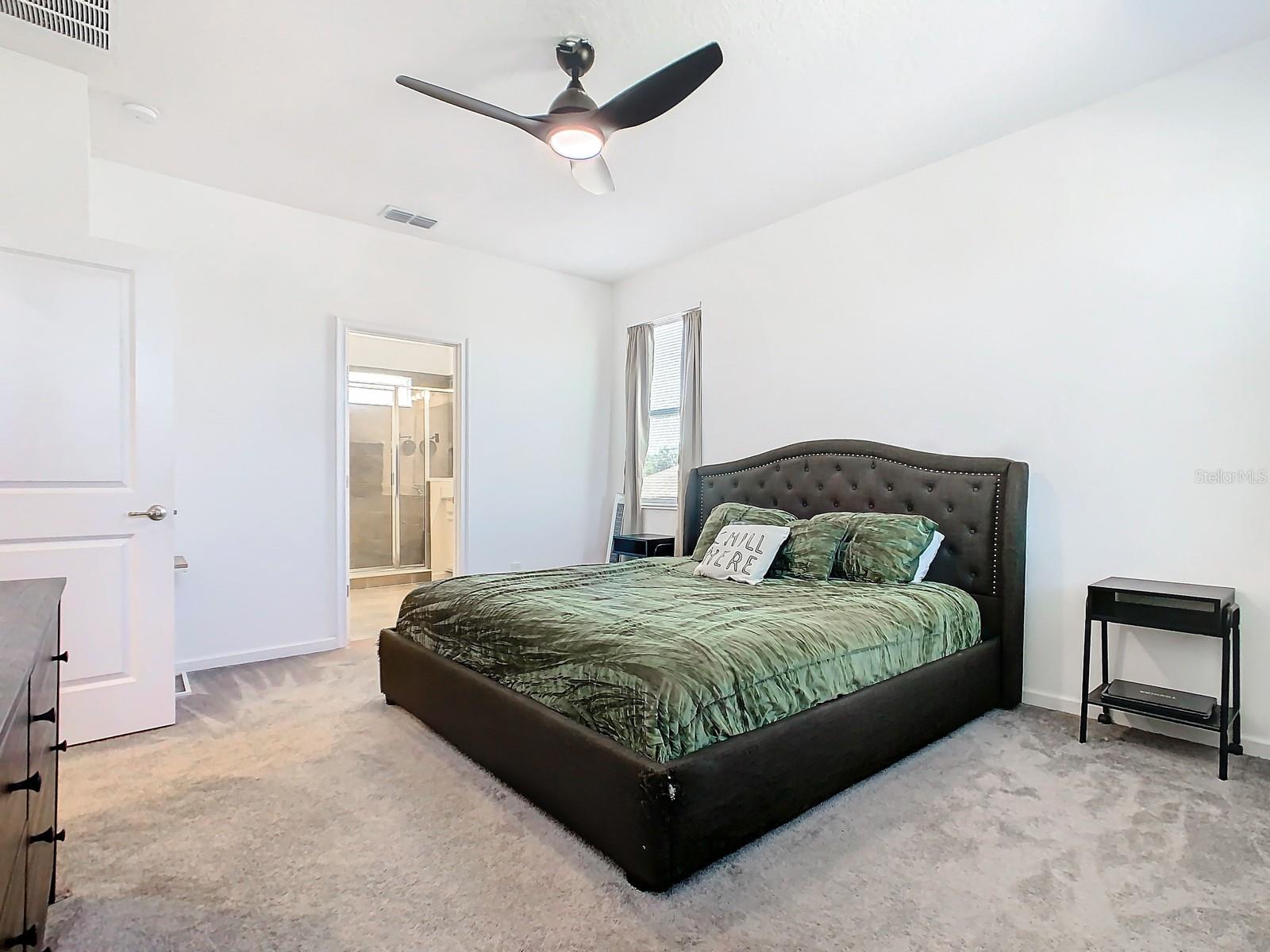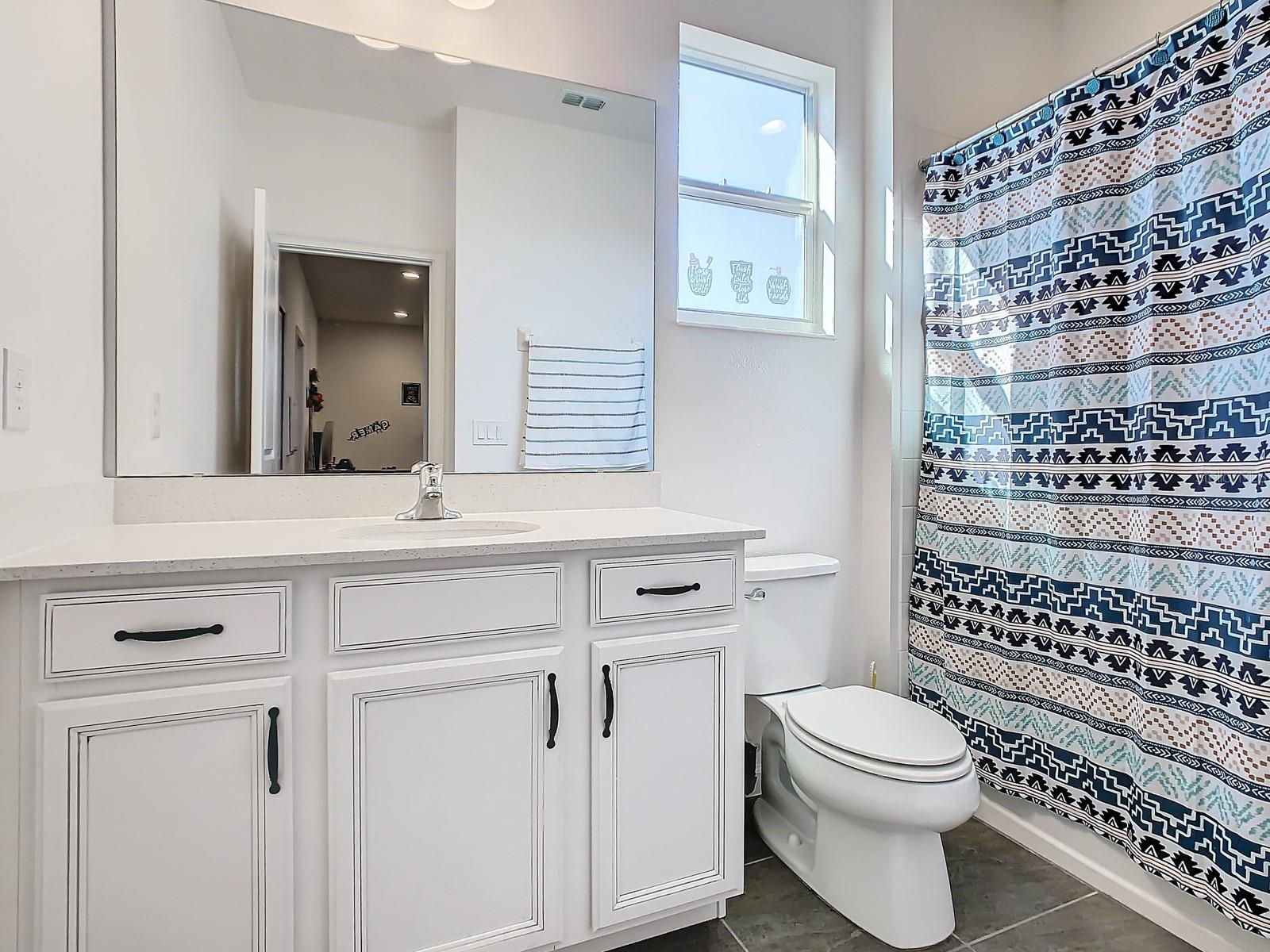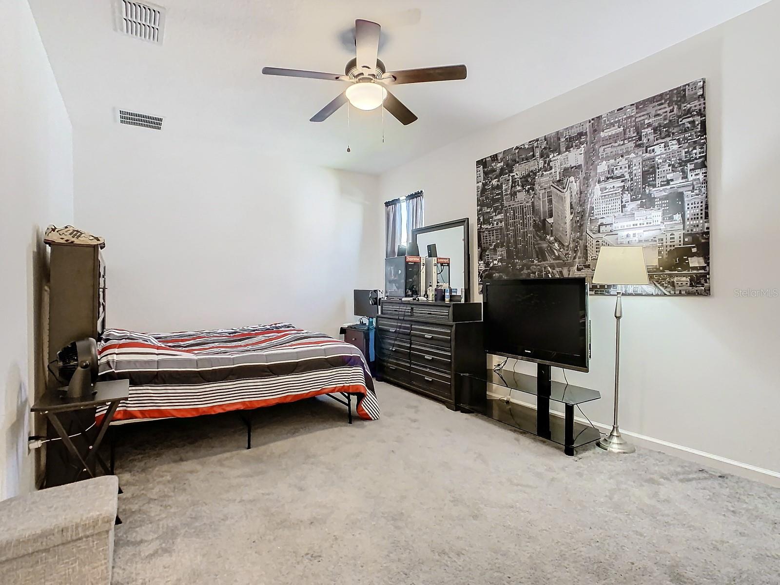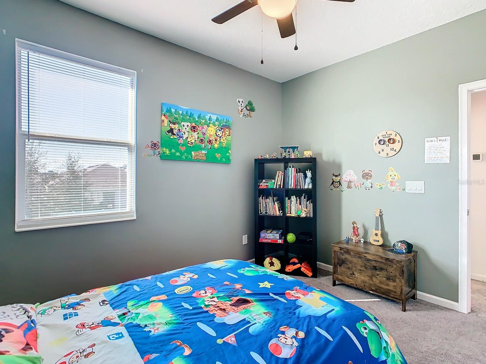 Discover this beautifully designed 4-bed, 3-bath home, built in 2021 by Park Square Homes. COMES WITH SOLAR PANEL PACKAGE providing very low energy costs averaging $25-$80 per month! Located in the vibrant community of Davenport, FL, this property combines luxury with functionality, ideal for family life. This home features 4 spacious bedrooms, 3 full bathrooms and over 2,300 sq ft of modern living space. A cozy front porch greets you before you enter the home. Some of the highlights of this like-new home are the open kitchen, complete with sleek modern appliances including a Samsung Bespoke designer refrigerator, quartz countertops, farmhouse sink, cooktop, built-in microwave & oven for easy access and ample storage. The flooring was upgraded with stylish ceramic tile throughout downstairs. Enjoy the bonus room downstairs which can be used as an office, den, workspace or craft nook. Upstairs has a versatile loft area perfect for a playroom or additional living space. The primary bedroom features a modern bathroom with a walk-in shower and built-in bench, dual sinks and a massive walk-in closet. There is a convenient laundry chute from the second floor down to the laundry room equipped with Samsung washer and dryer set. Off the living room there is a covered lanai and a spacious backyard, perfect for entertaining. The two-car garage with additional storage options offers plenty of parking. The community amenities include: a playground, soccer field, swimming pool. Enjoy these with a LOW HOA of just $207 per quarter! No CDD fee. Situated in a growing area of Davenport, this home is just 30 minutes away from Disney World, making it a perfect spot for both relaxation and fun. Close to schools, and shopping centers, you’ll have everything you need within reach. Schedule your showing today! 3D Tour: https://nodalview.com/s/2inz4Ti9z6remwJ_bbXgJ9