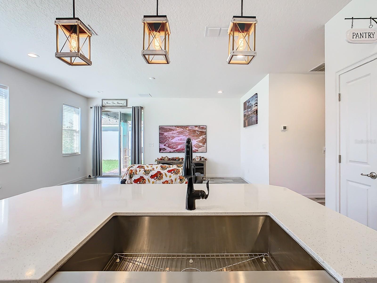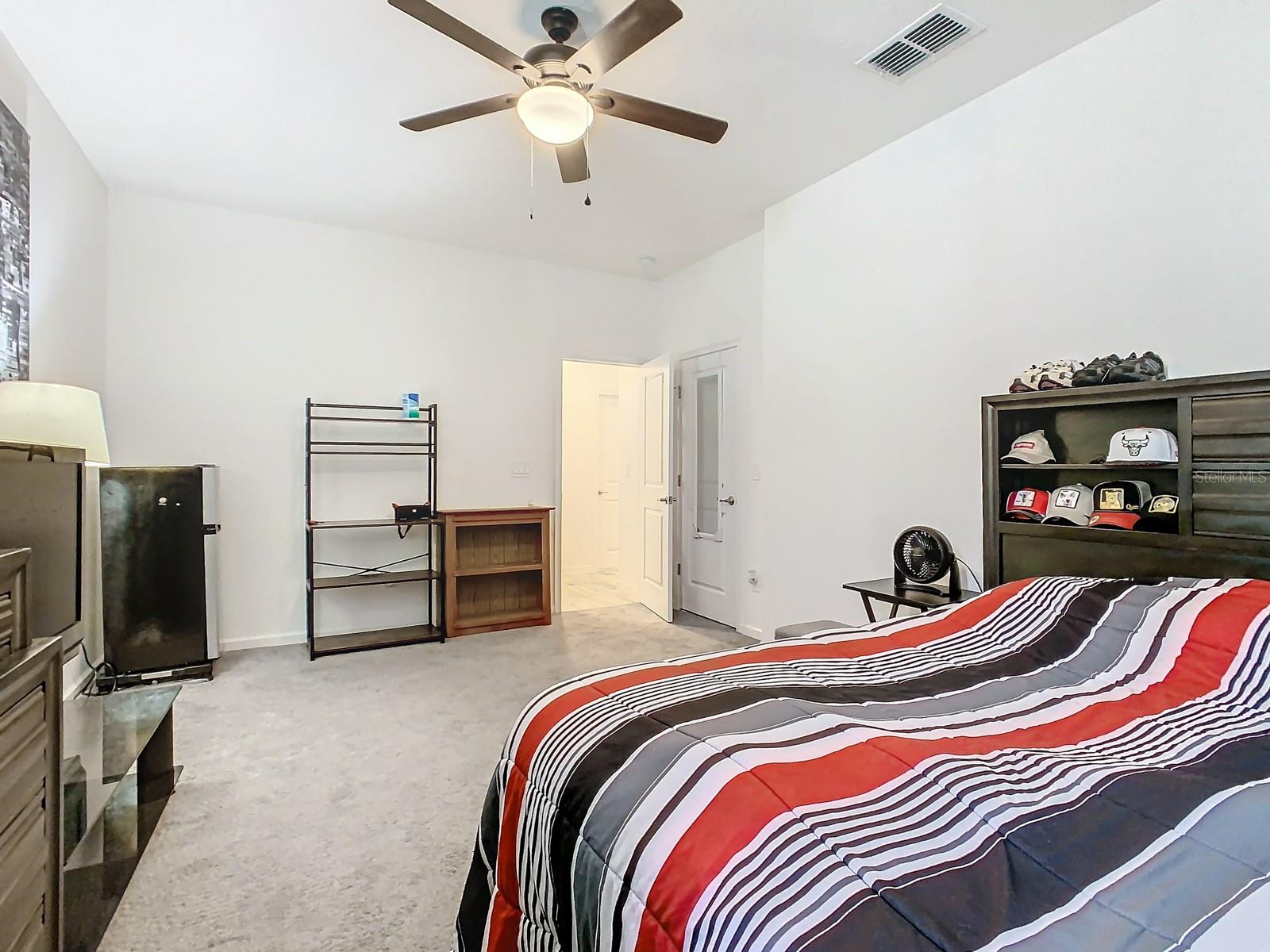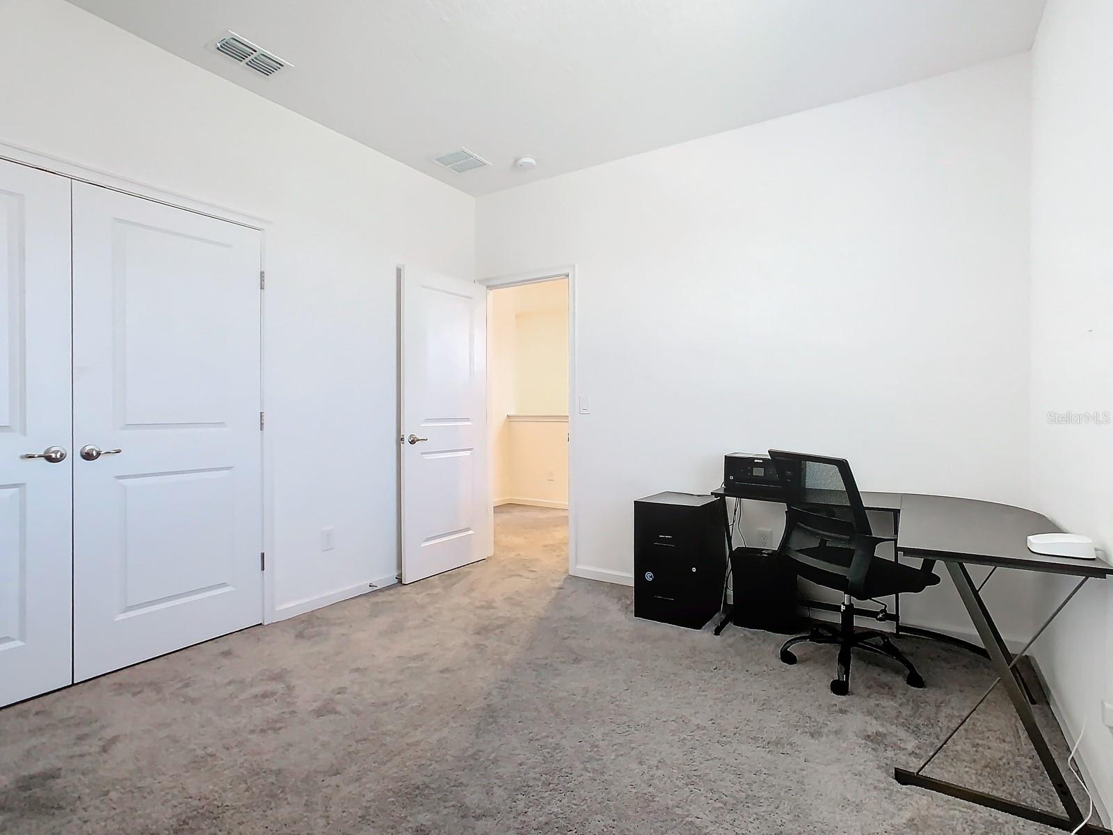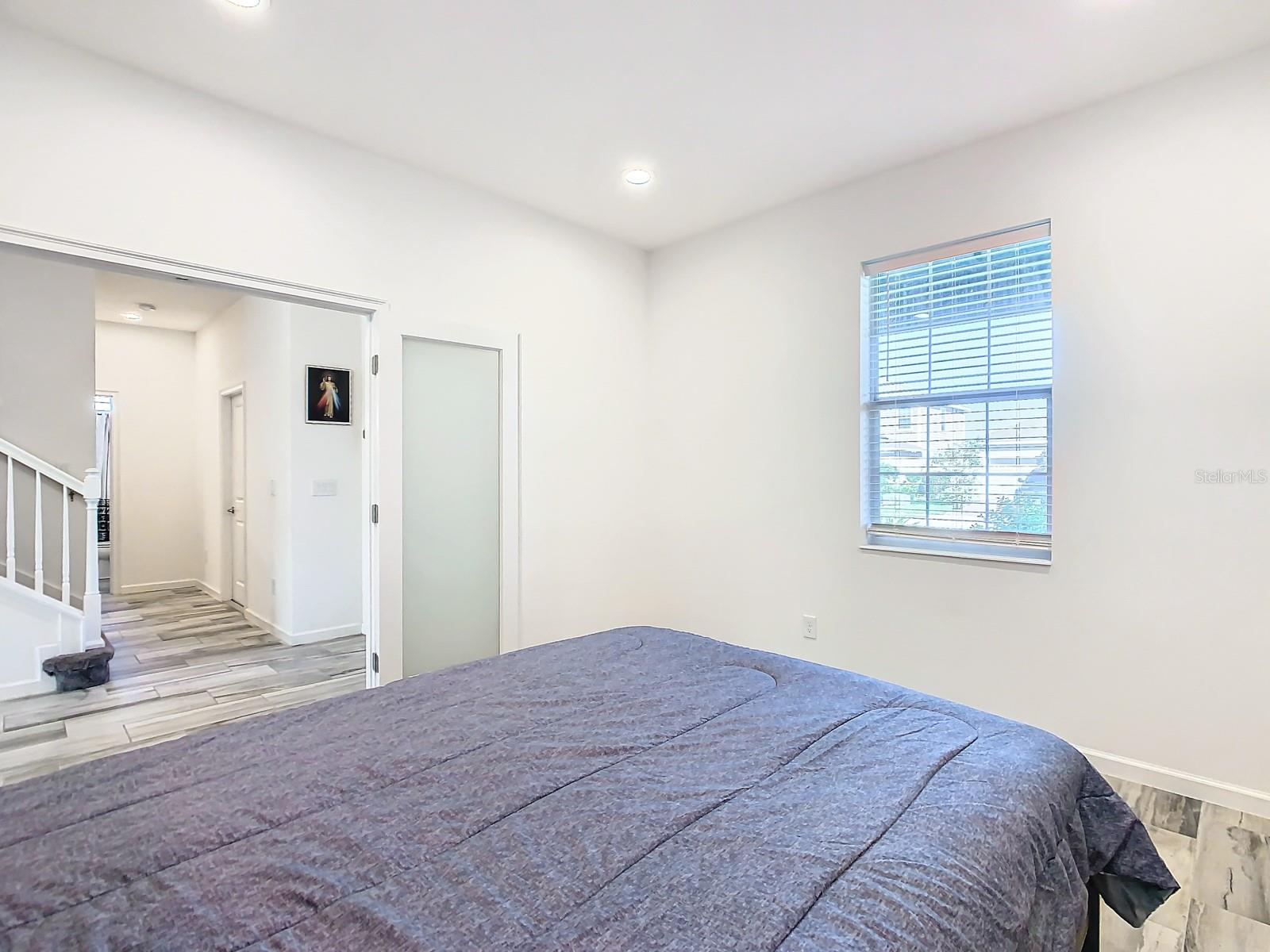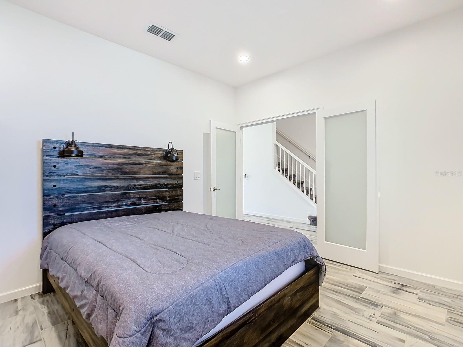 Discover this beautifully designed 4-bed, 3-bath home, built in 2021 by Park Square Homes. COMES WITH SOLAR PANEL PACKAGE providing very low energy costs averaging $25-$80 per month! Located in the vibrant community of Davenport, FL, this property combines luxury with functionality, ideal for family life. This home features 4 spacious bedrooms, 3 full bathrooms and over 2,300 sq ft of modern living space. A cozy front porch greets you before you enter the home. Some of the highlights of this like-new home are the open kitchen, complete with sleek modern appliances including a Samsung Bespoke designer refrigerator, quartz countertops, farmhouse sink, cooktop, built-in microwave & oven for easy access and ample storage. The flooring was upgraded with stylish ceramic tile throughout downstairs. Enjoy the bonus room downstairs which can be used as an office, den, workspace or craft nook. Upstairs has a versatile loft area perfect for a playroom or additional living space. The primary bedroom features a modern bathroom with a walk-in shower and built-in bench, dual sinks and a massive walk-in closet. There is a convenient laundry chute from the second floor down to the laundry room equipped with Samsung washer and dryer set. Off the living room there is a covered lanai and a spacious backyard, perfect for entertaining. The two-car garage with additional storage options offers plenty of parking. The community amenities include: a playground, soccer field, swimming pool. Enjoy these with a LOW HOA of just $207 per quarter! No CDD fee. Situated in a growing area of Davenport, this home is just 30 minutes away from Disney World, making it a perfect spot for both relaxation and fun. Close to schools, and shopping centers, you’ll have everything you need within reach. Schedule your showing today! 3D Tour: https://nodalview.com/s/2inz4Ti9z6remwJ_bbXgJ9