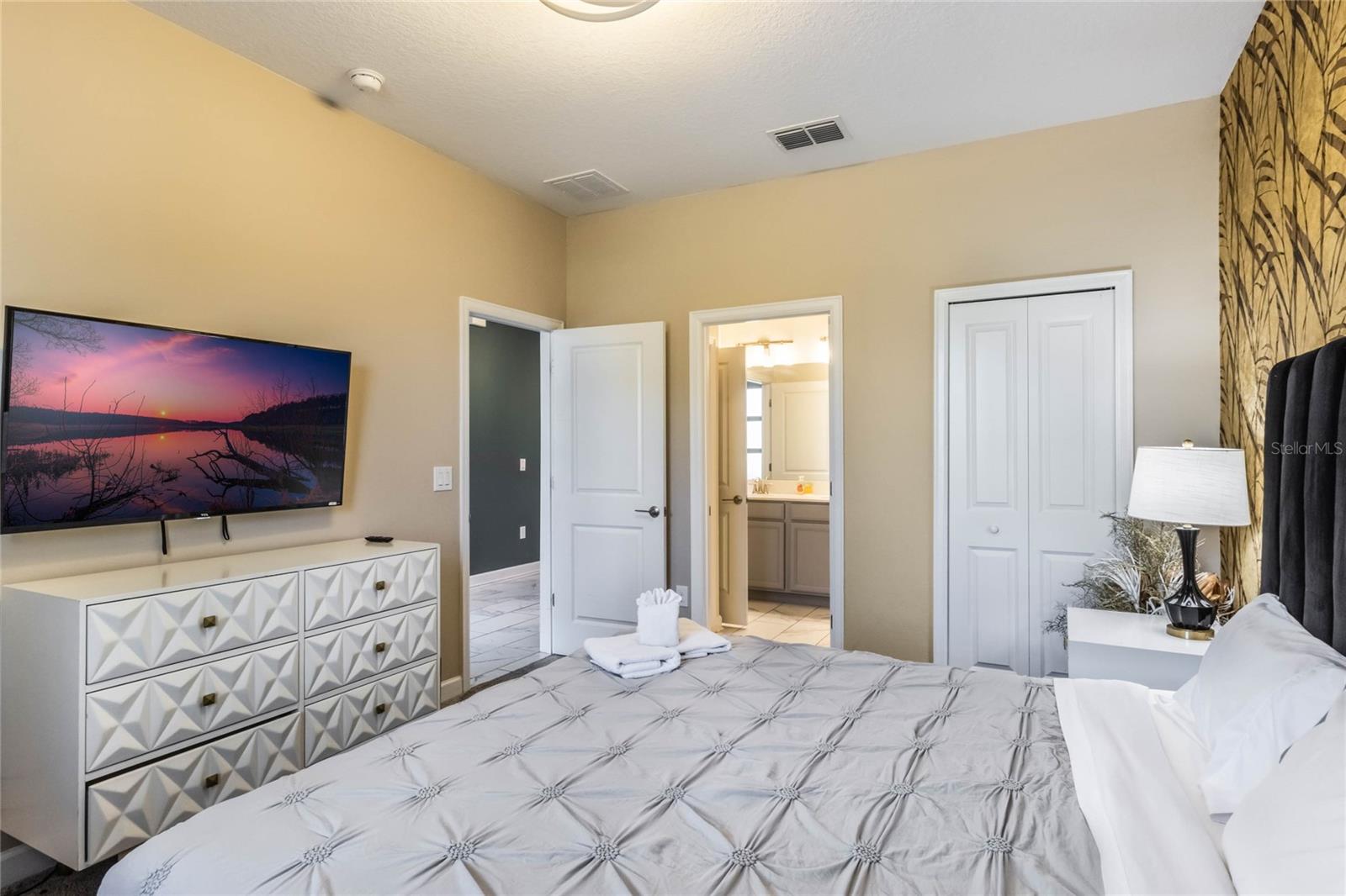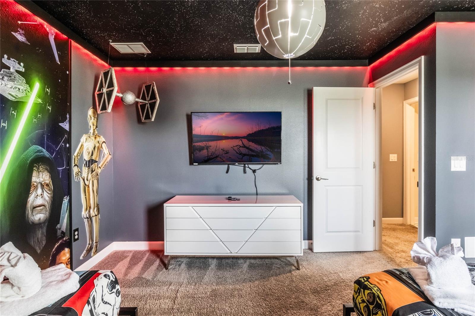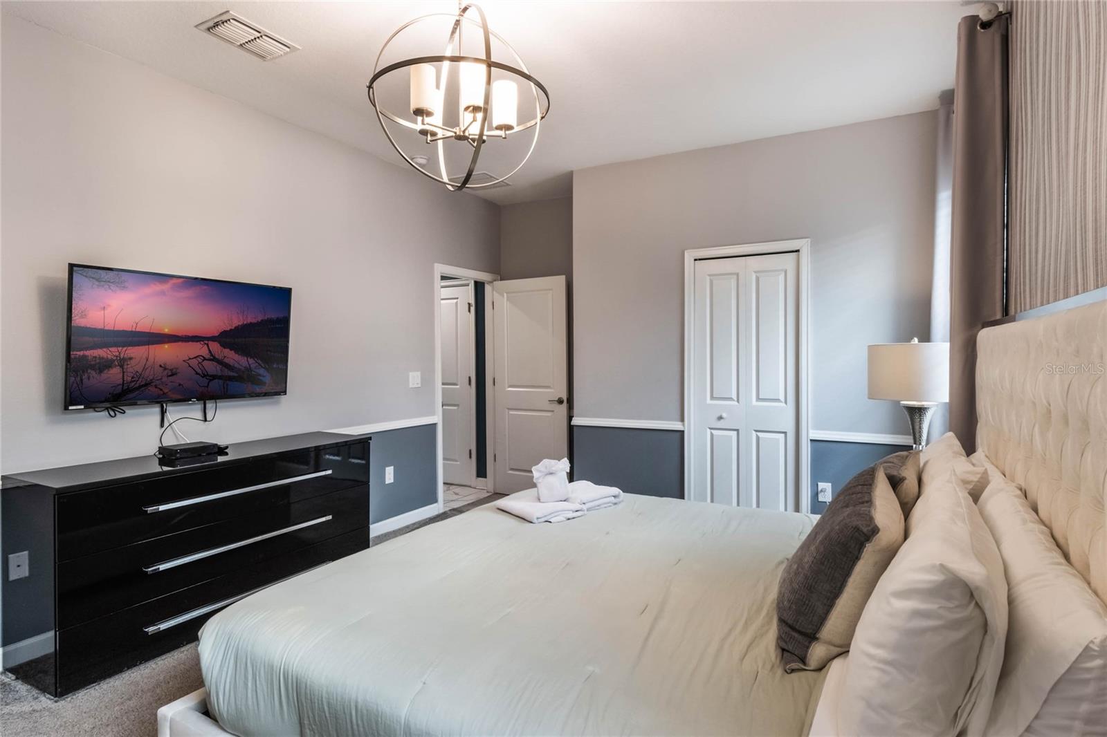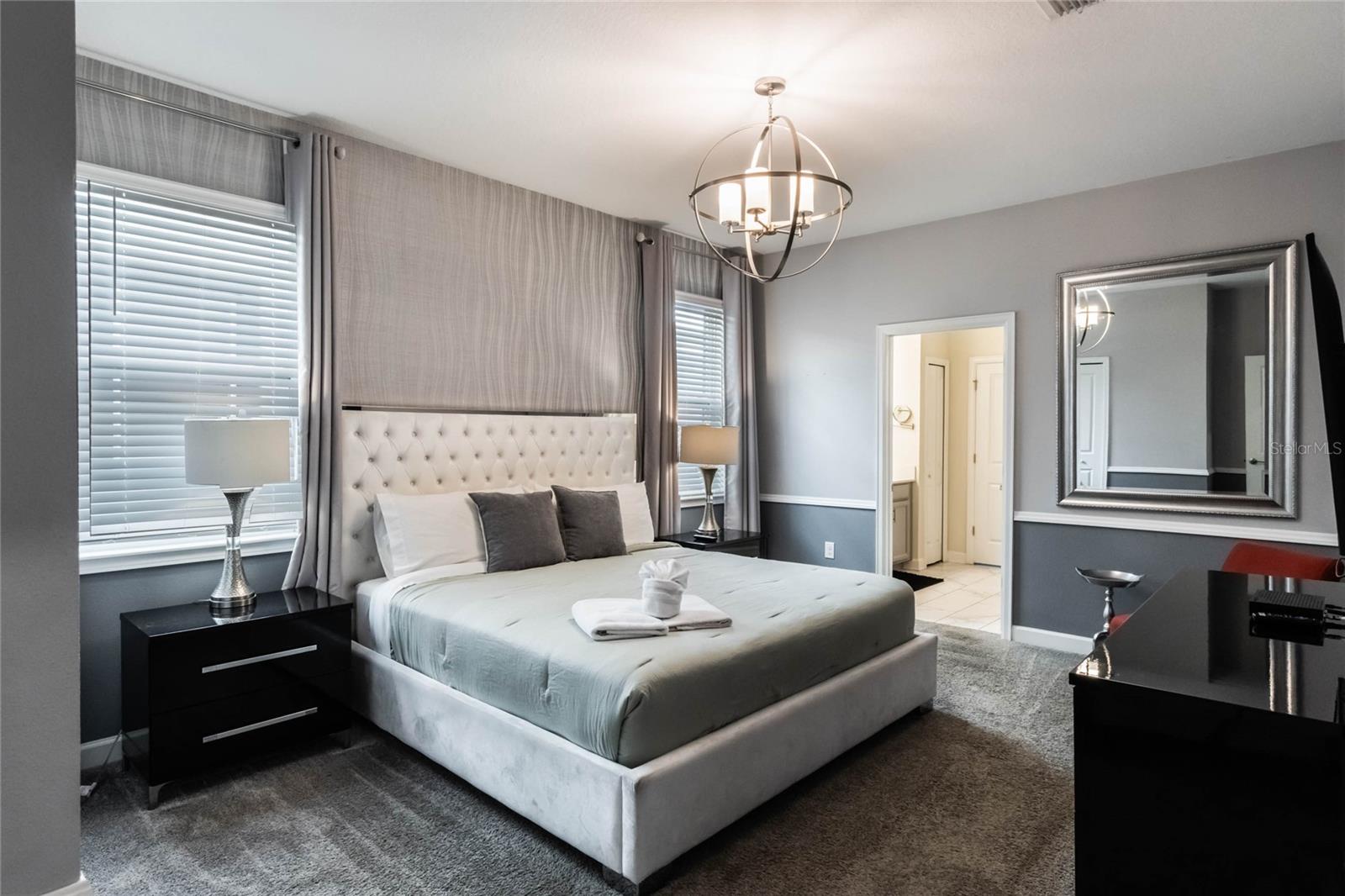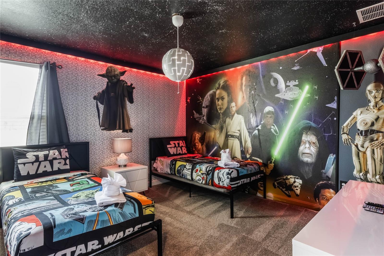 Turnkey short term rental home on the golf course of Championsgate Resort. Check out the 3D walkthrough here. https://www.tourdrop.com/dtour/387425/Zillow-3D-MLS Such a rare find that is themed amazingly, still looks and feels brand new and has plenty of bookings that can convey with the purchase. This home has it all and has been fully optimized to standout in the rental market with multiple THEMED ROOMS including an incredible STAR WARS MOVIE THEATER garage conversion with A LIFE-SIZED DARTH VADER. The garage even has a split AC unit so that guests can enjoy the garage even during the hotter months! Other rooms include a Harry Potter room with secret closet, a whimsicle castle bunkbed, Mickey and Minnie and of course a Star Wars room that will attract the most discerning guests.Of course the young adults and parents have private rooms with spa like finishes too. Champions Gate checks every box from an amenity standpoint with a multimillion-dollar community pool/clubhouse, lazy river over 1000 feet long, indoor cabanas with AC, arcade, fitness center, Champions Gate Country Club golf course, full-service restaurant, beach volleyball courts, onsite movie theater, & of course the Tiki Bar at the pool to cool down with a refreshing drink and meet new friends! Championsgate is in an excellent location being only a 15-minute drive to Disney Parks and close to plenty of restaurants, theme parks, highways, & shopping. This fully furnished home is truly TURNKEY as the association takes care of all the general maintenance of the exterior. This home has been geared up to standout in the short-term rental market and will hit the ground running for the new owner! Don't miss your chance!! With Universal EPIC theme park set to open early 2025, now is the time to get in and take advantage of the over 75 Million visitors Orlando gets every year.