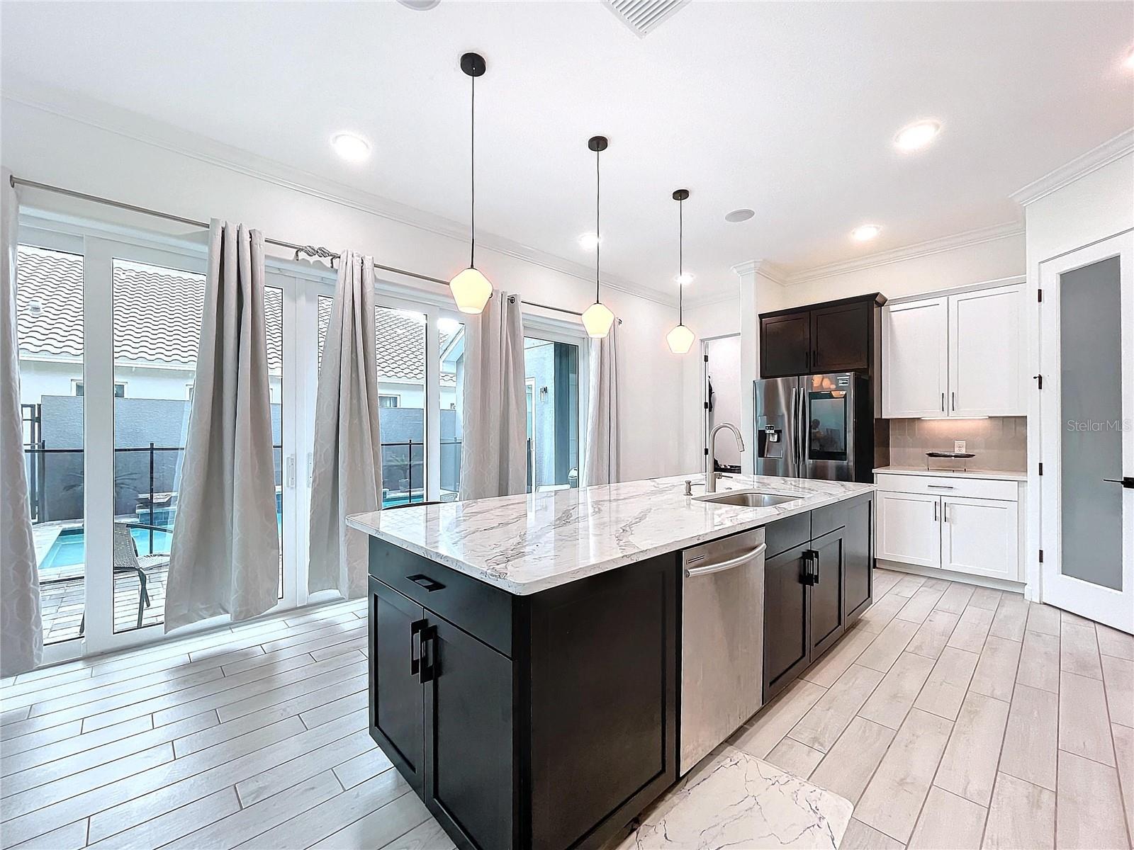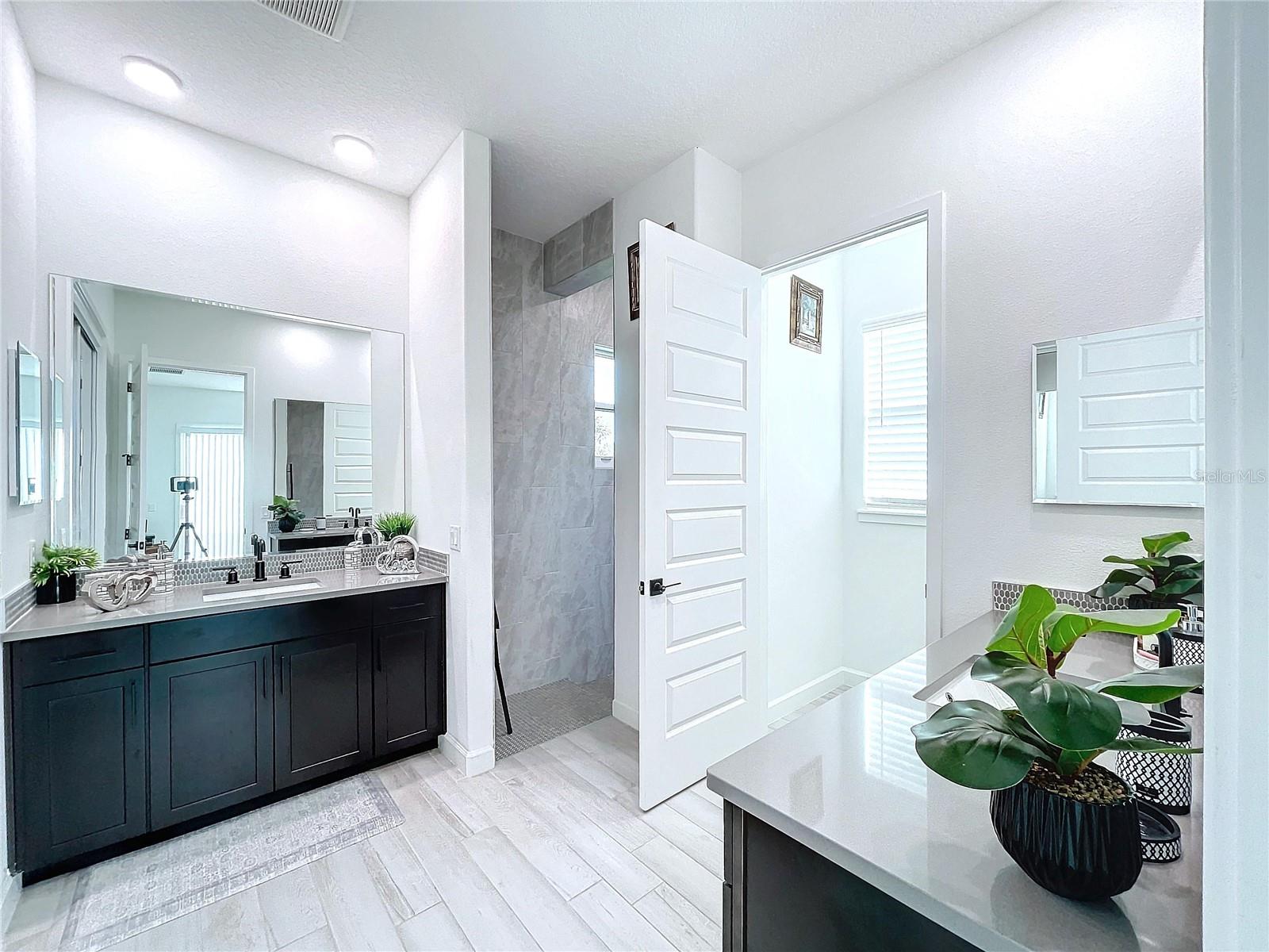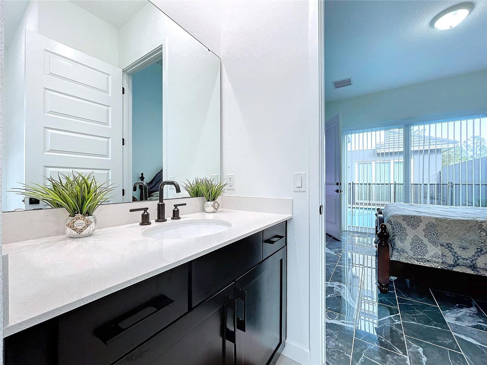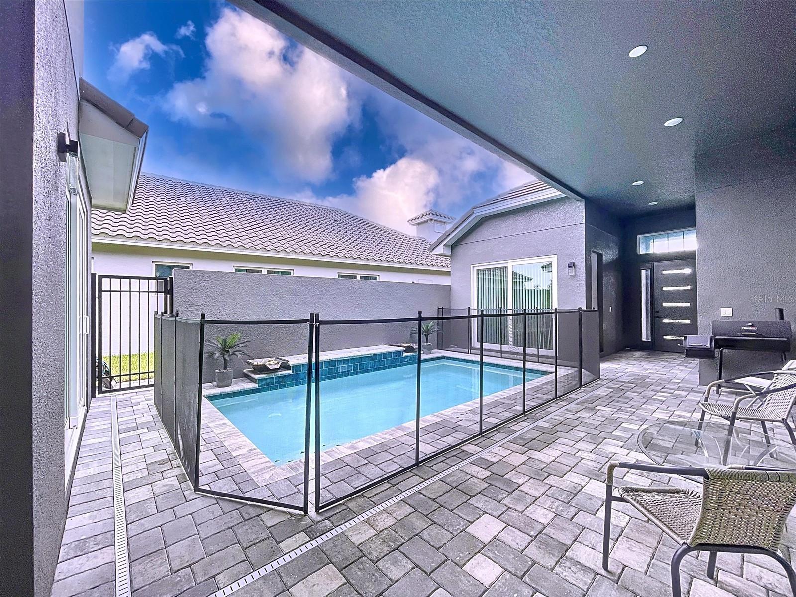 Welcome to this fantastic 4-bedroom, 3-bathroom home! It is the perfect retreat for those seeking comfort and modern style. As you walk in, you'll immediately notice The stunning courtyard pool where luxury meets tranquility. As you enter the home you'll notice gorgeous ceramic flooring that flows throughout the first floor, giving the space a clean and inviting feel. This home comes with fully paid off solar panels, giving you energy savings from day one. The high ceilings create a bright and airy atmosphere, making the entire home feel even more spacious. The open kitchen is a real highlight, featuring modern appliances and plenty of counter space. You'll love the stylish, contemporary bathrooms that adds a touch of luxury to your daily routine. This home truly has it all, blending modern finishes with a relaxed, welcoming vibe. Don't miss your chance to make this beautiful property your new home sweet home! Schedule a showing today!