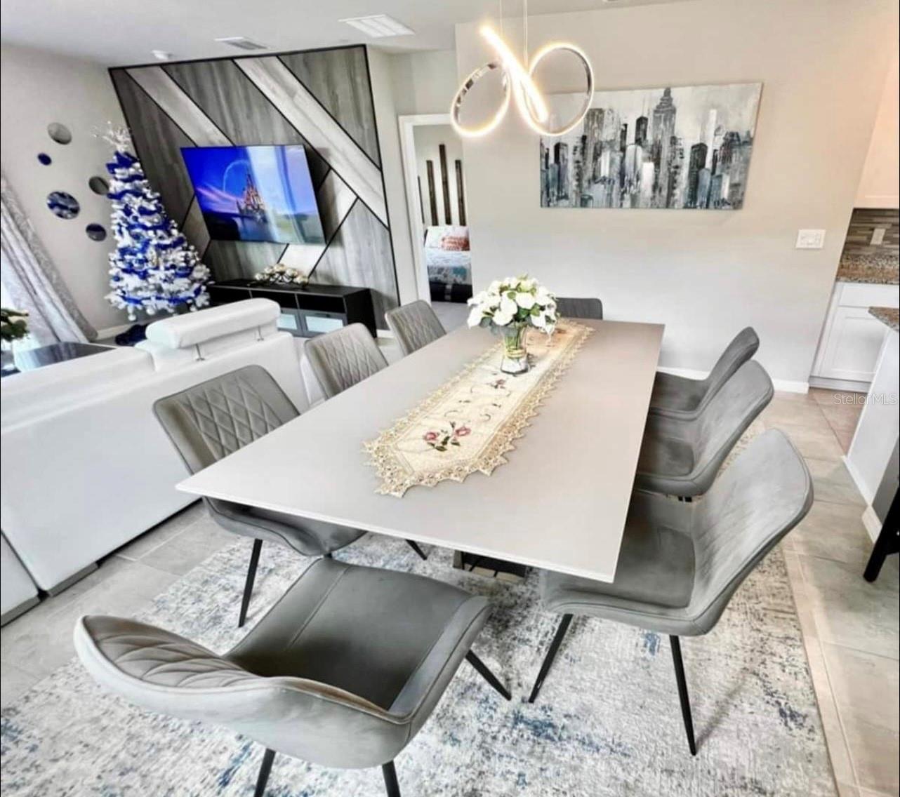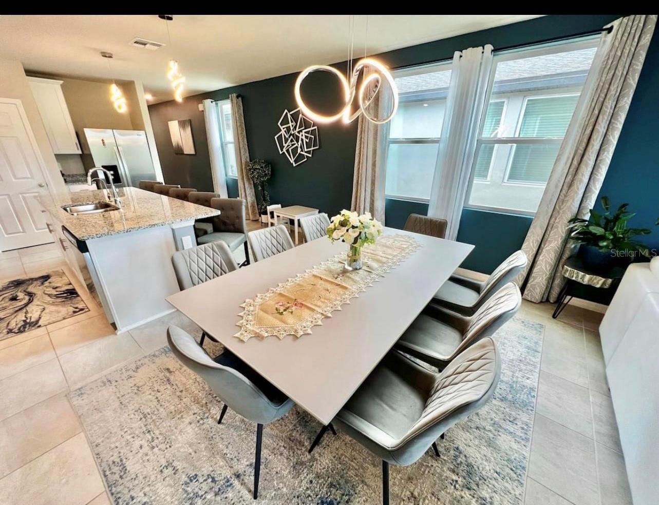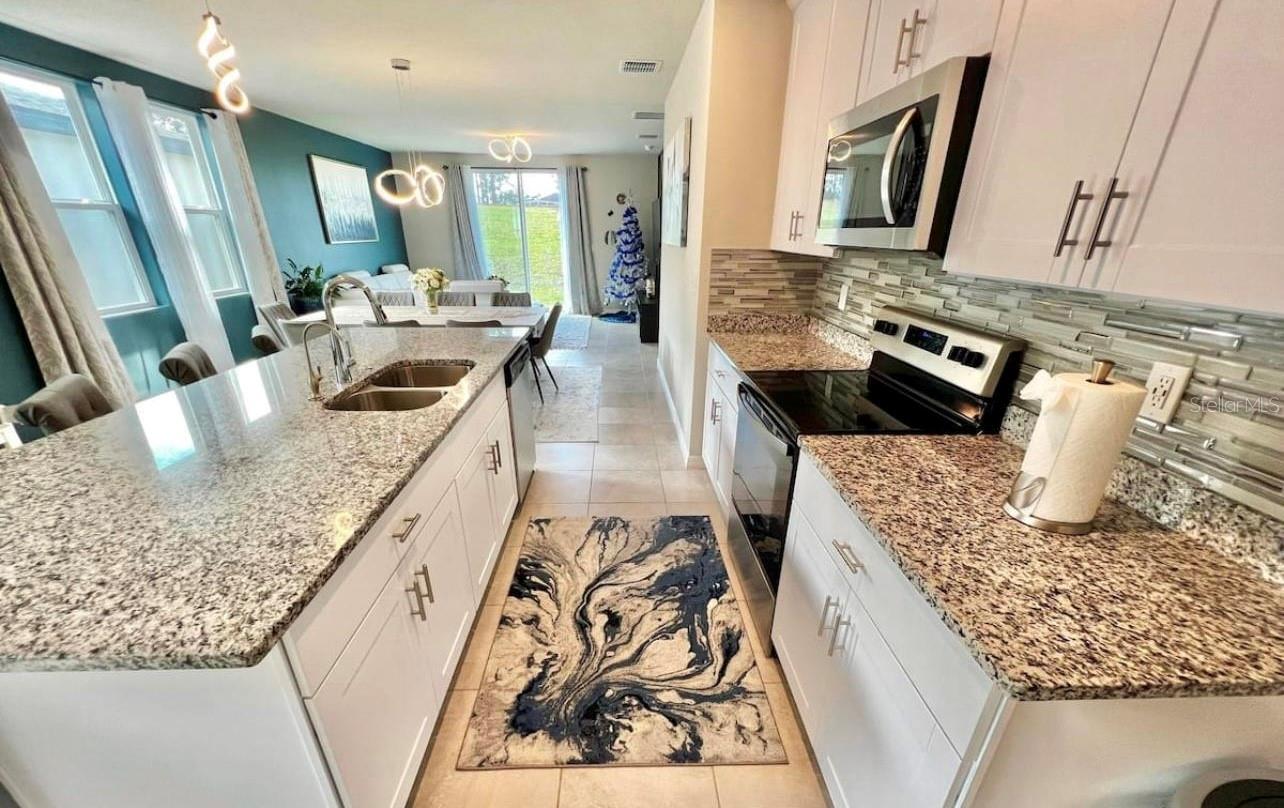 Stunning energy-efficient home! All Decorate professionally... Highest finishes and upgrades possible at time of building! Acoustical and thermal efficient fome insulation in the entire house even at the garage. As you approach the home you'll immediately notice the very nice looking brick driveway with the walkway to the front door. Right as you walk into this stunning home, you'll be greeted with vibrant colors at the entry way. The gorgeous Ceramic Tile looks amazing at the kitchen and family room is in all the right places for easy cleaning! Going down the hallway you'll walk directly into the beautiful kitchen with an oversized island and stainless steel appliances. This island not only has the kitchen sink for convenience but also plenty of room to sit, eat, or enjoy a morning cup of coffee. The hard surface counter tops look stunning! kitchen which overlooks a great room and dining area. Well appointed primary suite provides a restful retreat at the end of the day and has a spacious walk-in closet. Tuscan Meadows is located in Davenport only minutes from the I-4 and US-27 intersection providing easy access to major employment centers. This community is in close proximity to Posner Park which offers many stores, restaurants and entertainment for your family, as well as the Orlando's theme parks including the world-famous Walt Disney World, Universal Orlando Studios, and SeaWorld Resort. Known for their energy-efficient features, the house help you live a healthier and quieter lifestyle while saving thousands of dollars on utility bills. Filters of water installed for all houses.