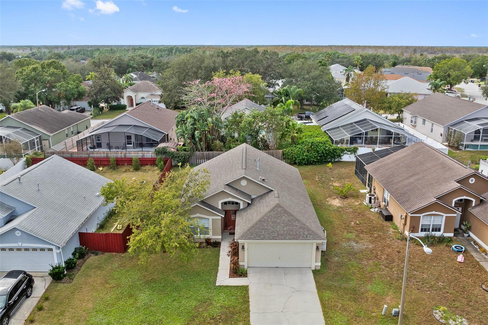 Whether you're seeking a vacation rental, long-term residence, personal retreat, or a full-time home, this property offers it all! Located just 12 miles from Disney World and the area’s top theme parks, this beautifully maintained home is the perfect blend of convenience, comfort, and affordability. The home features a 3-bedroom, 2-bathroom split floor plan, with spacious living areas bathed in natural light. Enjoy modern updates including a 2018 roof, a natural gas hot water heater, and heating system. The home also boasts a 2-car garage, indoor laundry room (with washer and dryer), and new wood laminate flooring. The open kitchen provides a breakfast nook, stainless steel appliances, ample cabinet space, and a convenient pantry. Relax and entertain in the large living room, which flows seamlessly into the dining area and kitchen. The master bedroom offers a private retreat with plenty of space, and an ensuite bath with an oversized shower. Step outside to the covered back porch, ideal for barbecues or simply unwinding while enjoying the spacious yard. The yard is equipped with an automatic irrigation system and offers plenty of space for outdoor activities. Westridge Community amenities include a refreshing pool, tennis and basketball courts, sand volleyball court, and a fun playground for all ages. Centrally located near US Hwy 192, Ronald Reagan Hwy, and Champion's Gate, you’ll have easy access to shopping, dining, grocery stores, and more.This move-in-ready gem is priced below market value and ready for you to call home – don’t miss out on this incredible opportunity!