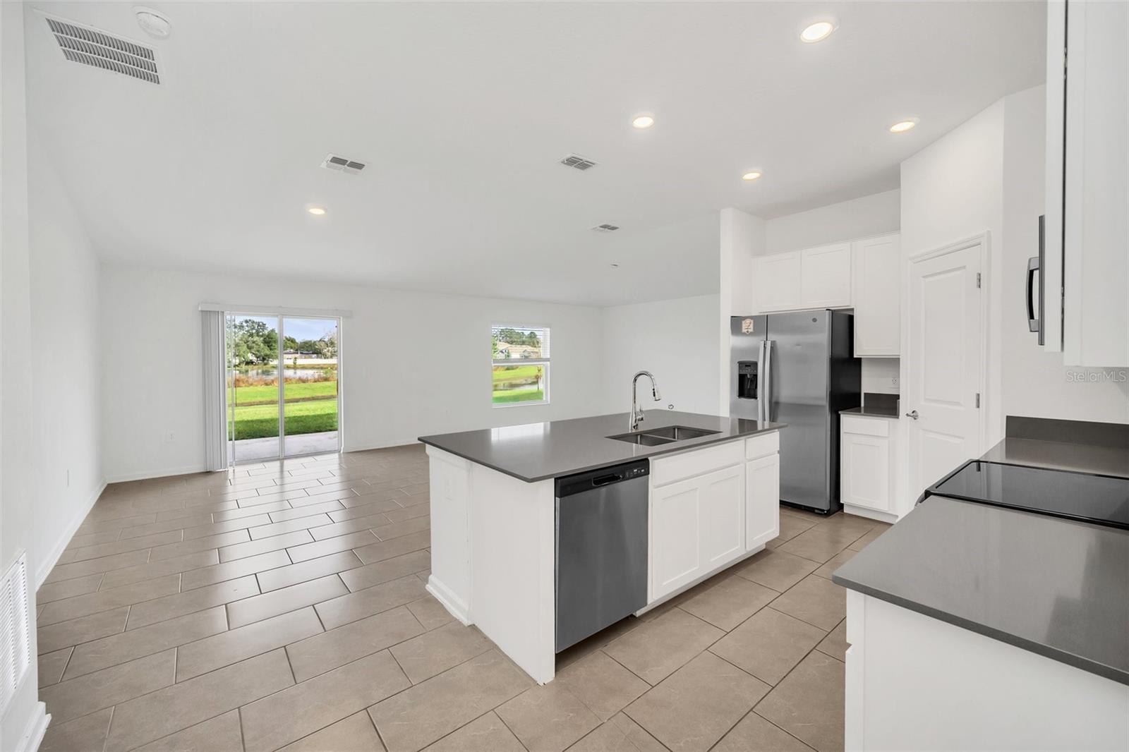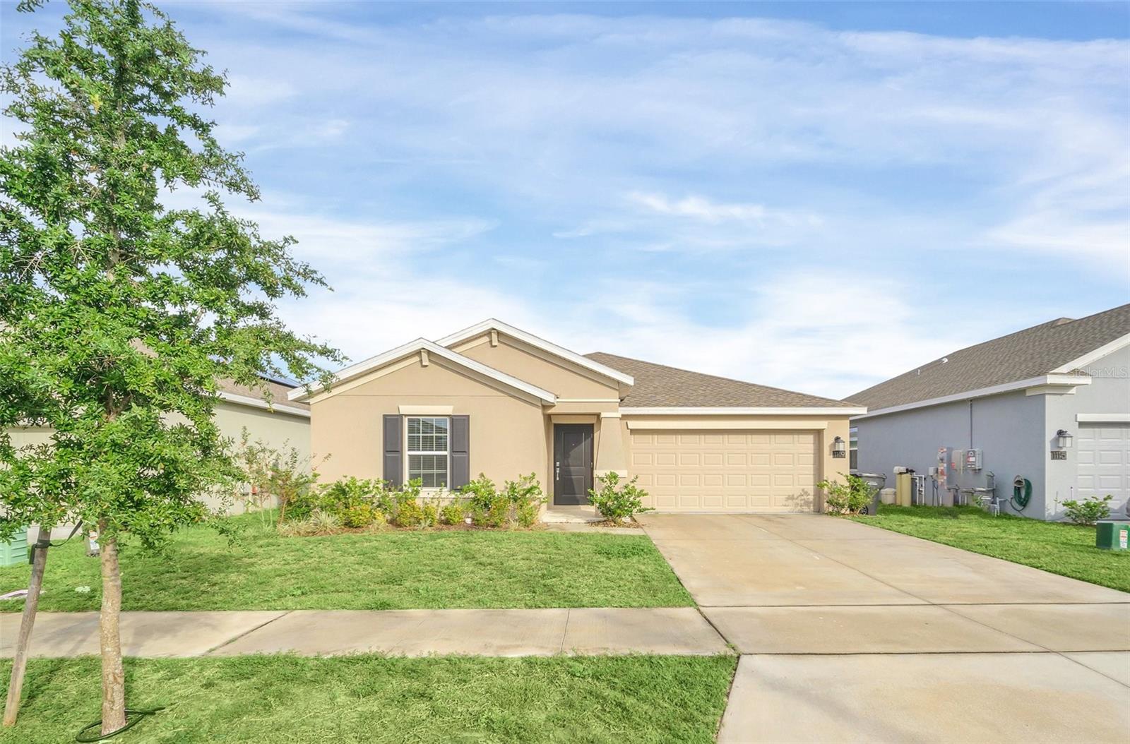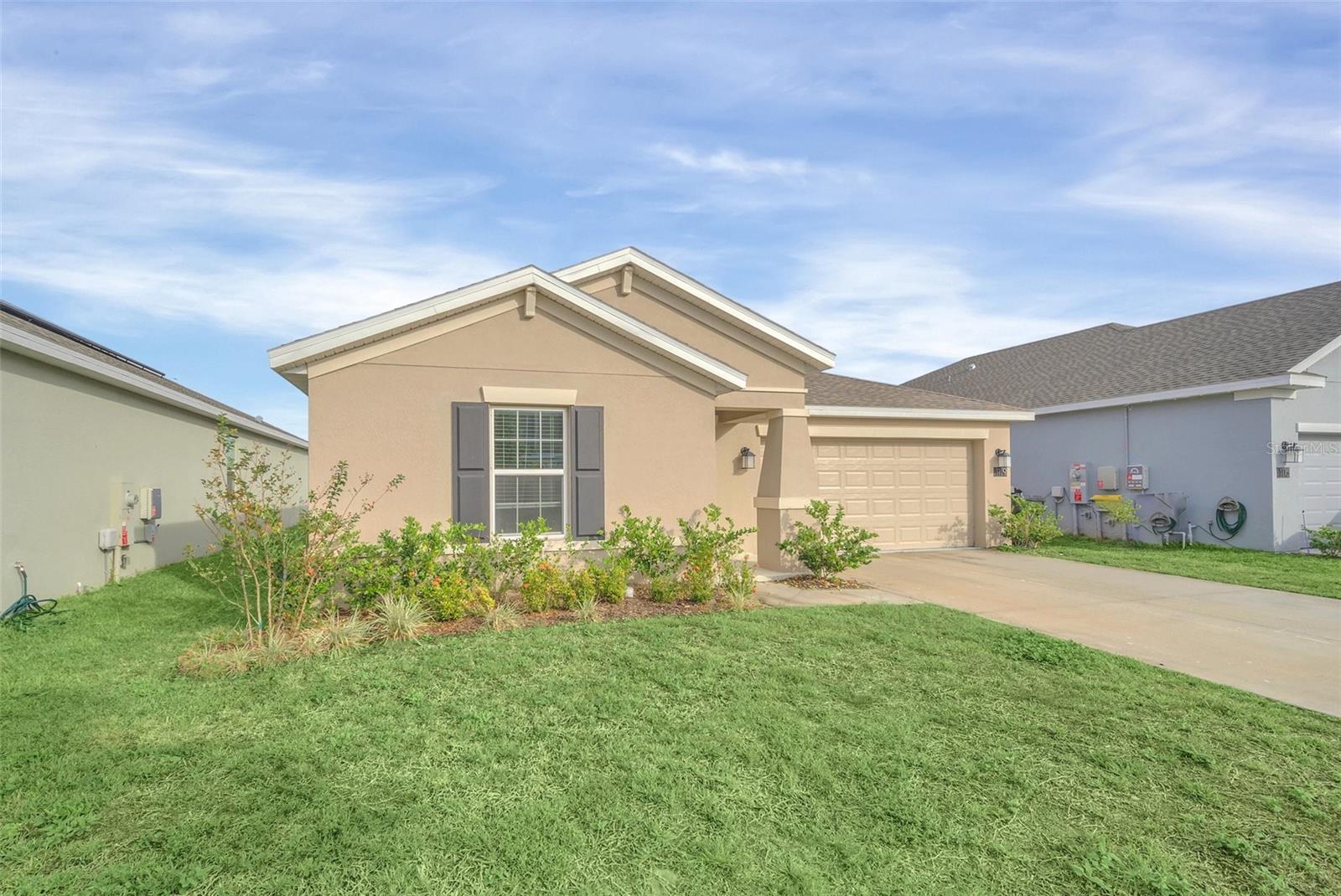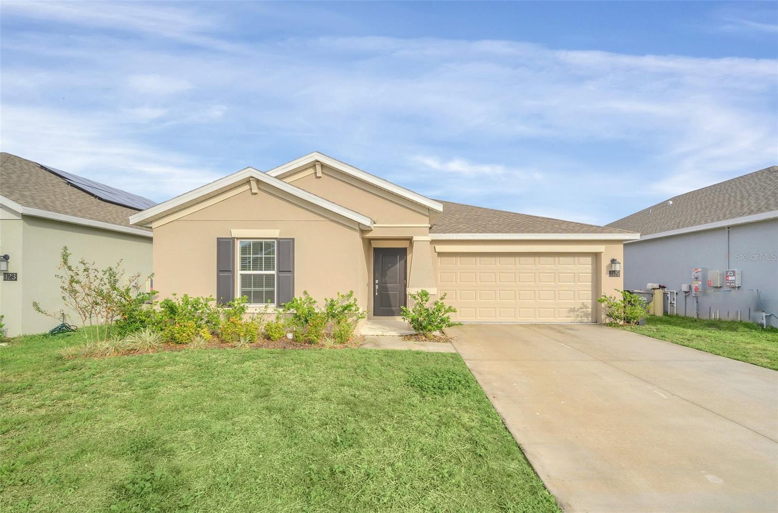 Discover the perfect blend of comfort and modern living in this beautifully designed 3-bedroom, 2-bathroom home, ideal for growing families. The expansive open floor plan features a contemporary kitchen with a spacious pantry, seamlessly overlooking the inviting family room and adjacent café area perfect for shared meals and quality family time. Start your day with a peaceful coffee on the covered front porch or unwind on the back patio that flows directly from the café. The owner's suite is a true retreat, boasting an oversized walk-in closet and dual vanities for added luxury and convenience. A 2-car garage not only enhances convenience but also offers ample storage space. This home has premium features, such as brand appliances, elegant quartz countertops throughout, and durable tile flooring in all wet areas. Designed as an Ecosmart home, it comes equipped with solar power to help reduce energy costs. Situated in Astonia, a master-planned community in Davenport, FL, this home provides access to a lifestyle of convenience and recreation. Residents will appreciate being minutes away from premier shopping and dining at Posner Park and having easy access to I-4 for quick commutes to world-famous theme parks, championship golf courses, and the natural beauty of Florida's outdoor escapes. Community amenities include a resort-style swimming pool, a playground, and more, ensuring fun and relaxation for all ages. Welcome home to a place where modern features meet timeless comfort, all in an unbeatable location.