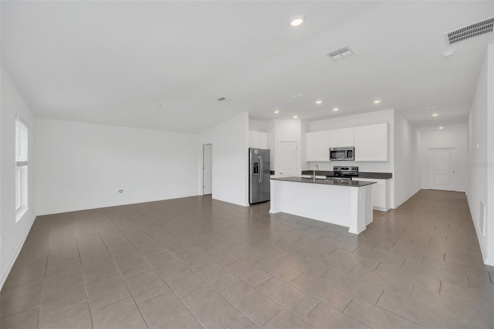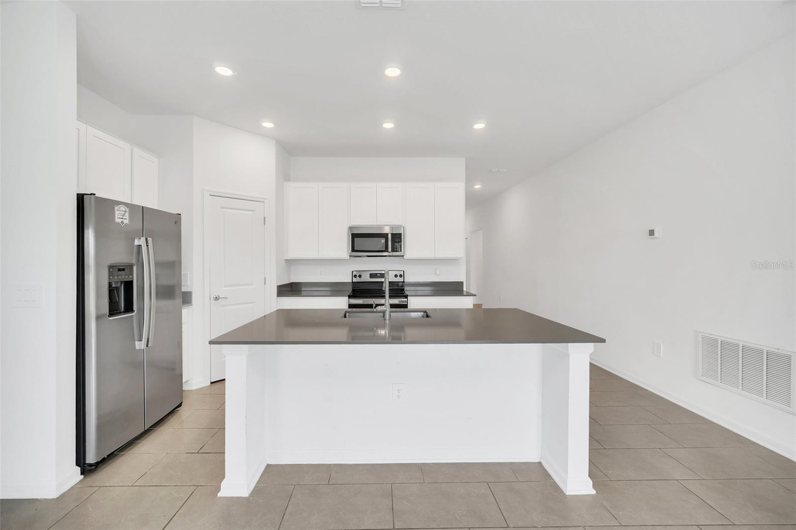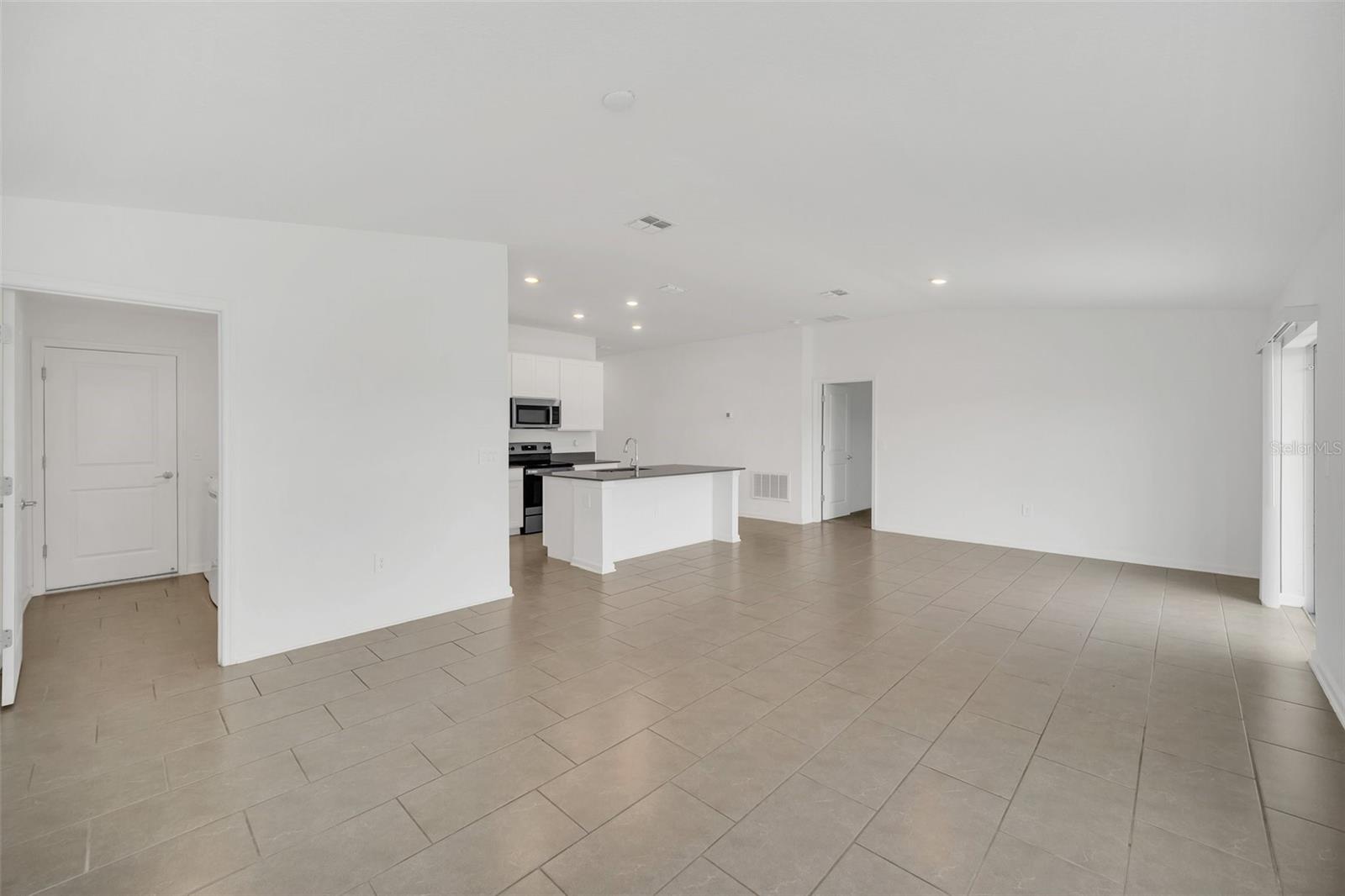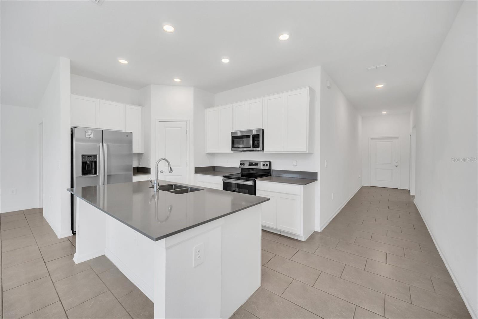 Discover the perfect blend of comfort and modern living in this beautifully designed 3-bedroom, 2-bathroom home, ideal for growing families. The expansive open floor plan features a contemporary kitchen with a spacious pantry, seamlessly overlooking the inviting family room and adjacent café area perfect for shared meals and quality family time. Start your day with a peaceful coffee on the covered front porch or unwind on the back patio that flows directly from the café. The owner's suite is a true retreat, boasting an oversized walk-in closet and dual vanities for added luxury and convenience. A 2-car garage not only enhances convenience but also offers ample storage space. This home has premium features, such as brand appliances, elegant quartz countertops throughout, and durable tile flooring in all wet areas. Designed as an Ecosmart home, it comes equipped with solar power to help reduce energy costs. Situated in Astonia, a master-planned community in Davenport, FL, this home provides access to a lifestyle of convenience and recreation. Residents will appreciate being minutes away from premier shopping and dining at Posner Park and having easy access to I-4 for quick commutes to world-famous theme parks, championship golf courses, and the natural beauty of Florida's outdoor escapes. Community amenities include a resort-style swimming pool, a playground, and more, ensuring fun and relaxation for all ages. Welcome home to a place where modern features meet timeless comfort, all in an unbeatable location.