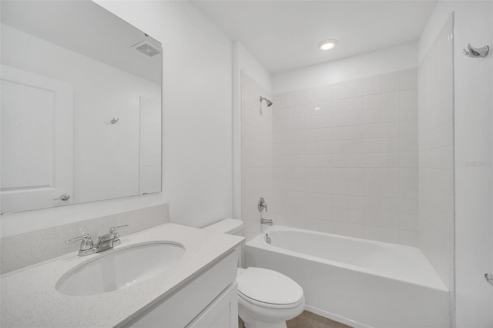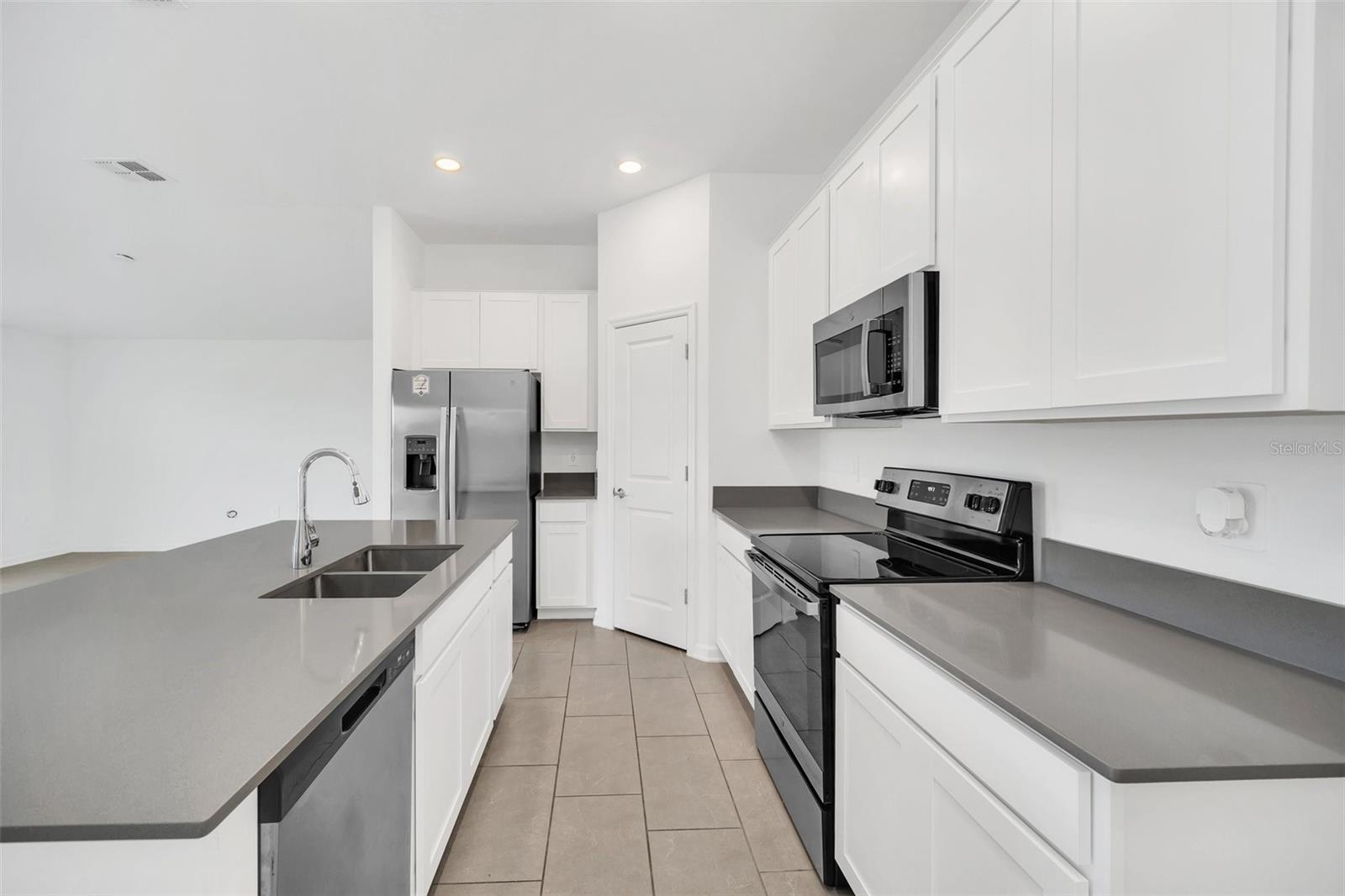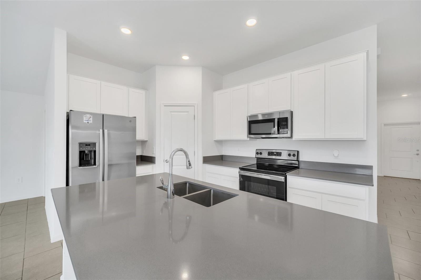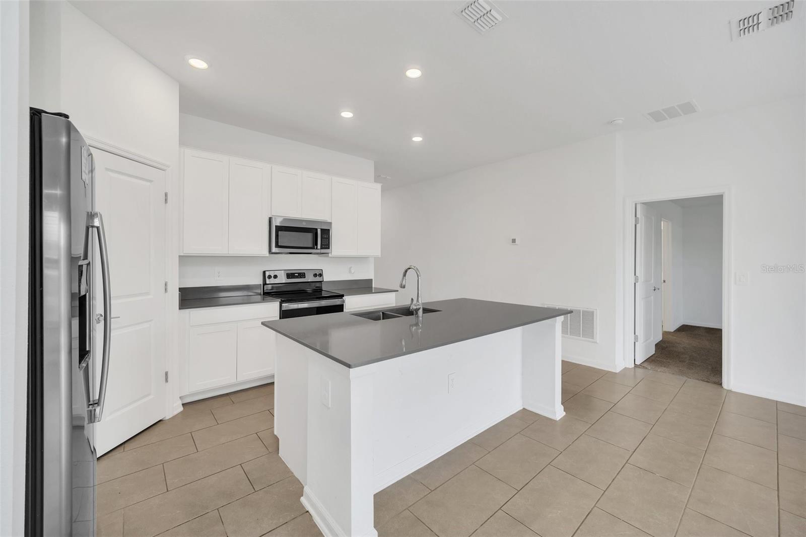 Discover the perfect blend of comfort and modern living in this beautifully designed 3-bedroom, 2-bathroom home, ideal for growing families. The expansive open floor plan features a contemporary kitchen with a spacious pantry, seamlessly overlooking the inviting family room and adjacent café area perfect for shared meals and quality family time. Start your day with a peaceful coffee on the covered front porch or unwind on the back patio that flows directly from the café. The owner's suite is a true retreat, boasting an oversized walk-in closet and dual vanities for added luxury and convenience. A 2-car garage not only enhances convenience but also offers ample storage space. This home has premium features, such as brand appliances, elegant quartz countertops throughout, and durable tile flooring in all wet areas. Designed as an Ecosmart home, it comes equipped with solar power to help reduce energy costs. Situated in Astonia, a master-planned community in Davenport, FL, this home provides access to a lifestyle of convenience and recreation. Residents will appreciate being minutes away from premier shopping and dining at Posner Park and having easy access to I-4 for quick commutes to world-famous theme parks, championship golf courses, and the natural beauty of Florida's outdoor escapes. Community amenities include a resort-style swimming pool, a playground, and more, ensuring fun and relaxation for all ages. Welcome home to a place where modern features meet timeless comfort, all in an unbeatable location.