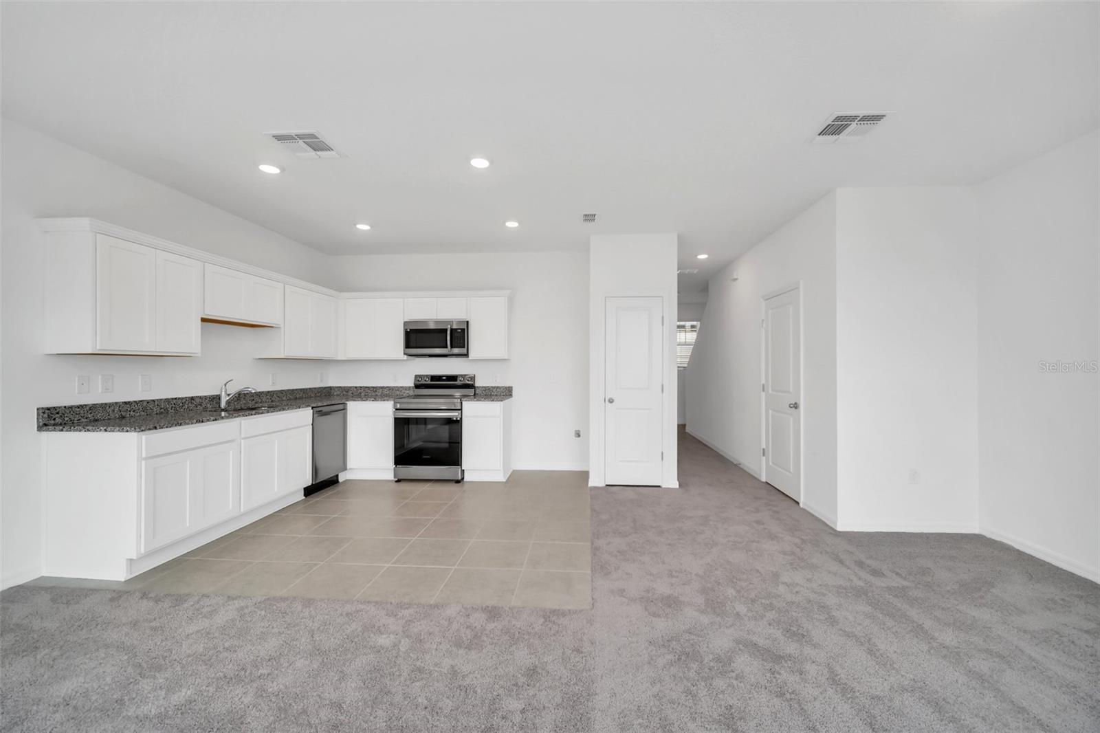 This 2023 townhome has 3 bedrooms, 2 full bathrooms, 1 half bath and 1 car attached garage and comes with a great tenant in place. Step into the entranceway with stairs to the left and hall leading straight ahead to the great room. Large open concept living space contains Kitchen with granite countertops, stainless steel appliances and tile floors. Kitchen is open to the Living and Dining area. Sliding doors lead to a back patio overlooking green space between the homes. Upstairs find three bedrooms and laundry closet. Primary bedroom has a large walk in closet and bathroom. Two bedrooms share a full bath. Do not miss this opportunity to own your own home in Davenport close to I4 and Posner Park.