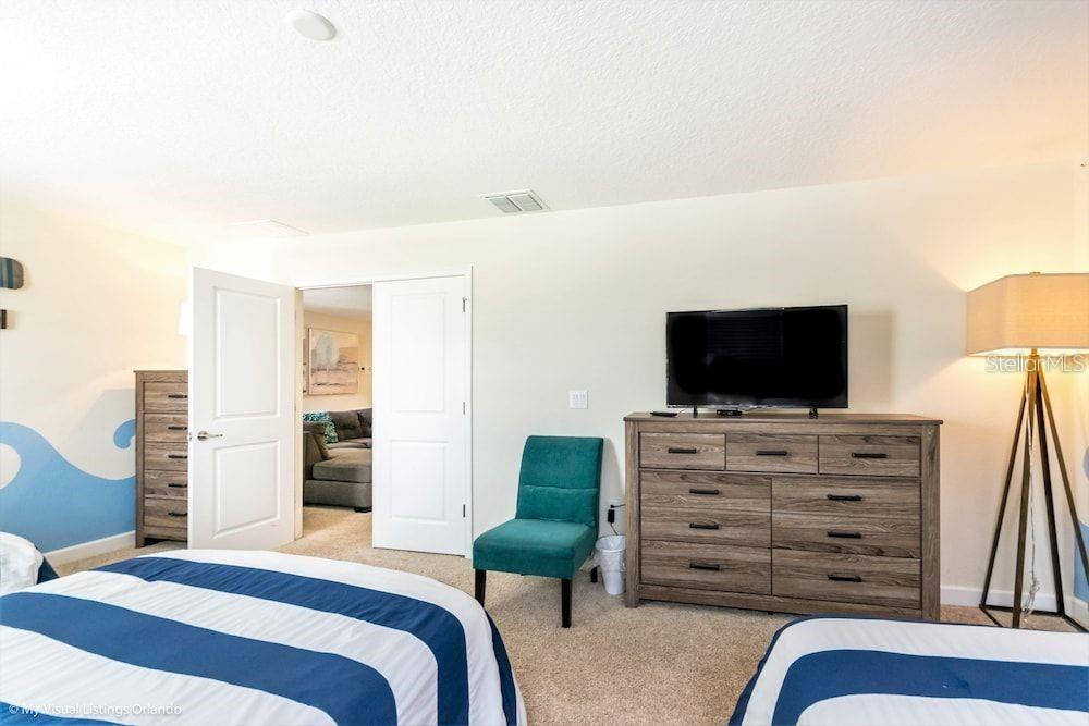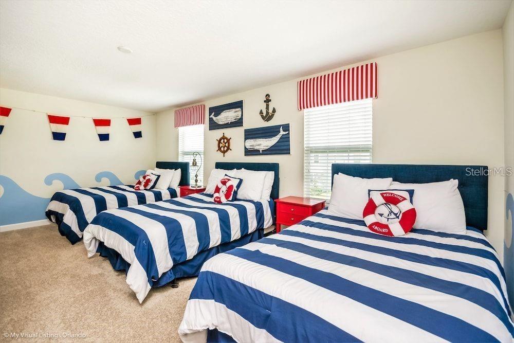 Step into this charming residence situated within The Retreat at Championsgate. The esteemed community boasts an alluring Waterpark and Clubhouse that remains among the most coveted amenities. With features like a Lazy River, thrilling Water-slides, a Swim-Up Bar, cascading Water Falls, a rejuvenating Spa, a vibrant Splash Pad, a Grill, a Bar, a Fitness Area, a state-of-the-art Movie Theatre, an engaging Games Room, a delightful Tiki Bar, and inviting Cabanas, the offerings are unparalleled. Professionally adorned, this vacation home comes fully furnished and prepared for rentals. Stainless steel appliances enhance the well-equipped kitchen, while luxurious en-suite master bedrooms on the lower level and additional bedrooms upstairs provide comfort and space. A relaxing sitting or family area, complemented by flat-screen televisions in every room, ensures optimum leisure. The main floor boasts a well-defined layout with a family room, dining area, and fully equipped kitchen, setting the stage for memorable family gatherings. Outside, a heated pool and spa, coupled with a covered patio, create an ideal setting for families to bask in quality vacation moments. Whether it's relaxation or adventure, this property delivers the best of both worlds. This home has everything you need and it certainly wont last long.