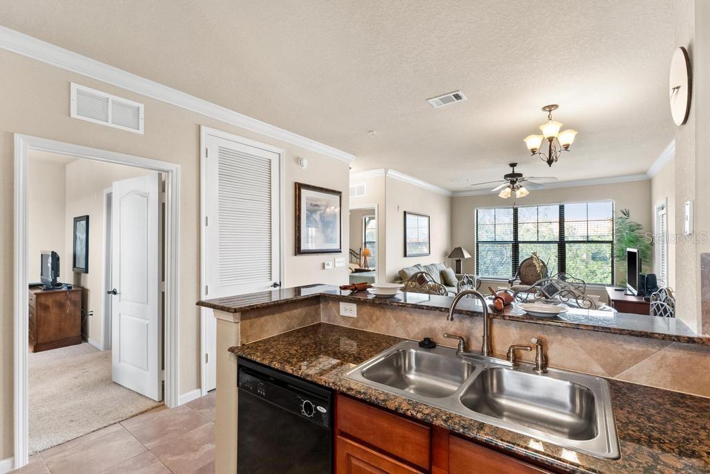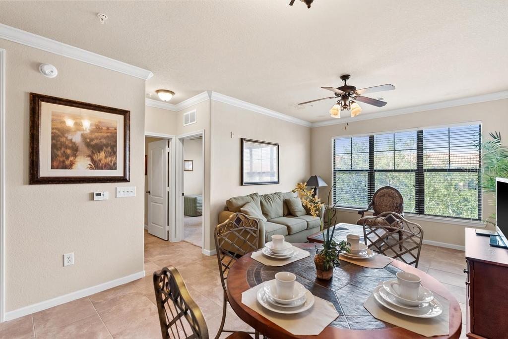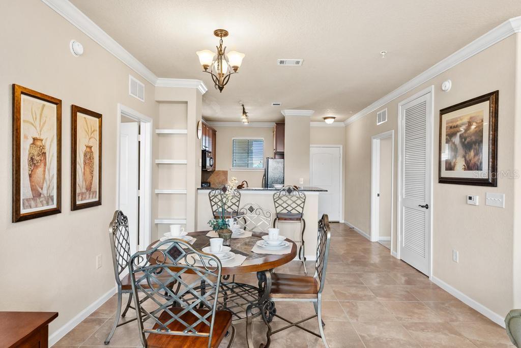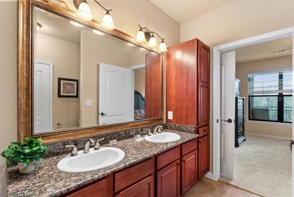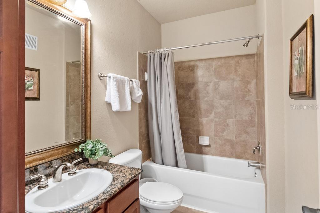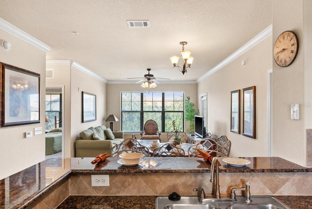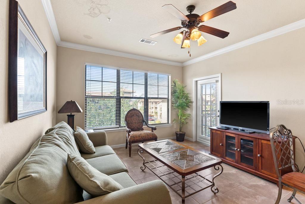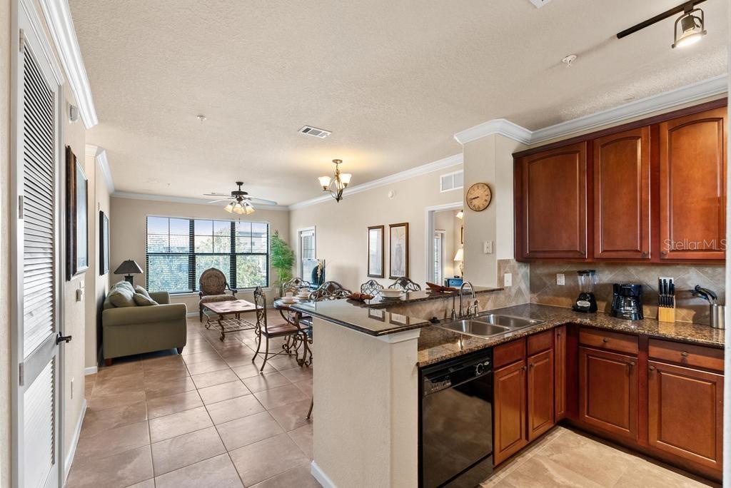 (The lowest priced 3B 3B in the complex) CASH ONLY . This listing showcases a beautifully maintained, fully furnished 3-bedroom, 3-bathroom Tuscan-style unit just 15 minutes from Disney Parks. Building has elevator. Perfect for residents or as a short-term rental, this rare, private property offers peaceful fountain views and numerous upgrades like granite countertops, wood cabinetry, crown molding, and tile flooring throughout, with cozy carpets in the bedrooms. The home is within walking distance of grocery stores and restaurants, enhancing convenience. Community amenities include two pools, a kids' pool, a large jacuzzi, a gym, a business center, and BBQ grill areas spread across landscaped gardens. The HOA covers water, cable, and internet, making it a hassle-free choice for full-time living or as an investment property with solid bookings. The unit is move-in or rental-ready, with all appliances and furniture included, and even features an in-unit washer and dryer. Don't miss this well-kept, inviting home—an ideal opportunity in a prime location!
