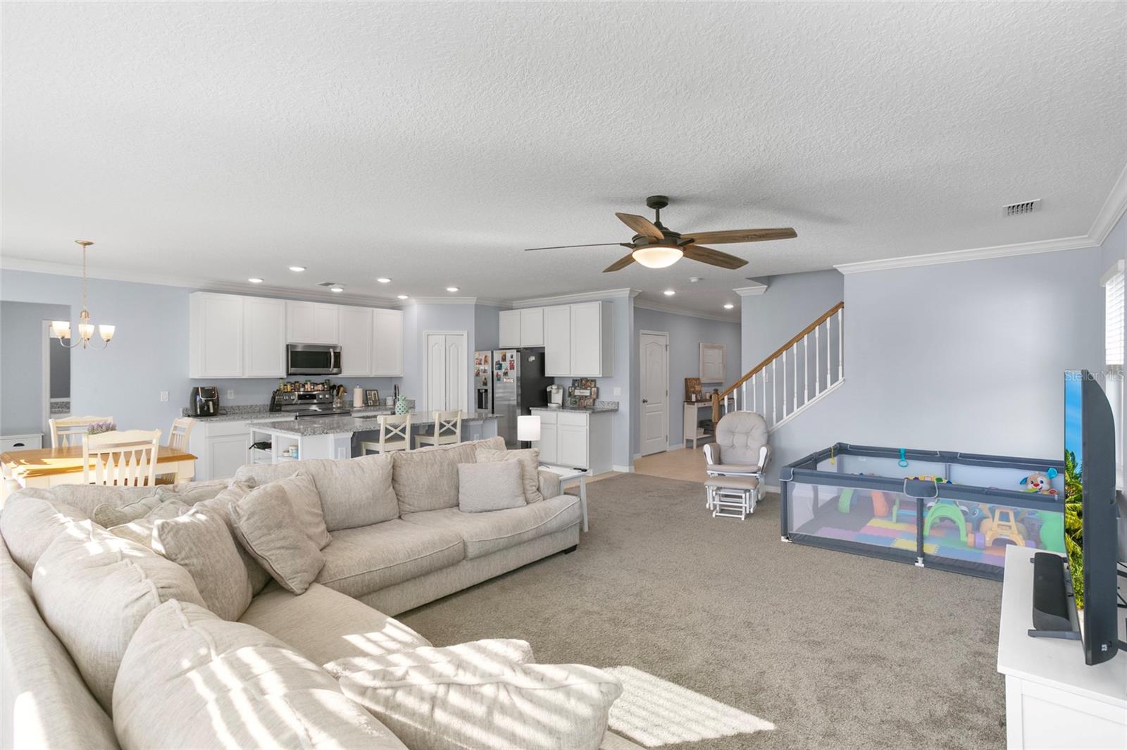 PRICE REDUCED!!! Possible 2.9% assumable loan!!! Let's talk. This is an opportunity to own the largest customized Carlisle model in the esteemed community of Northridge Reserve in Davenport. A fantastic investment opportunity…it’s a 3-year-old home in better “move-in-ready” shape than a NEW HOME that you could find from a builder’s offering. It’s in pristine condition, having lived in less than 1-week each month since it was purchased in 2021. Outstanding community amenities include a large community pool, dog park, playground, and park, all for an extremely low HOA of only $157 PER YEAR!! The home features an open and inviting great room for entertaining guests, combined with a large open kitchen equipped with gorgeous granite countertops, an oversized island, lots of cabinet storage, plus a walk-in pantry. The flex/bonus room on the first floor near the entrance provides a beautiful office space with a nearby powder room. The customized builder modification provides a fifth bedroom and full bath on the first floor for older friends and family members who can’t do stairs! The owner's suite is a dream with tray ceilings, double vanities, a separate shower and tub, a huge walk-in closet, and enough space for a relaxing sitting area. Each of the other 3 bedrooms on the second floor is big and comfy, ideal to fit all your furniture and family. Upstairs you'll also find the laundry room which offers convenience and privacy from the rest of the home. The home runs energy efficiently off of the solar panels. The additional porch in the front of the home is great for relaxing or visiting as neighbors walk by. Conveniently located in Kissimmee, Haines City, Hwy 27, Disney Theme Parks, shopping, schools, restaurants and so much more are all nearby! There is a lot of potential “return on your investment”! Hands down, it's a great price for this home size, lot size, and location. This property is sure to please every buyer! What are you waiting for? Call us today to schedule your private viewing and be the 1st to steal this deal!