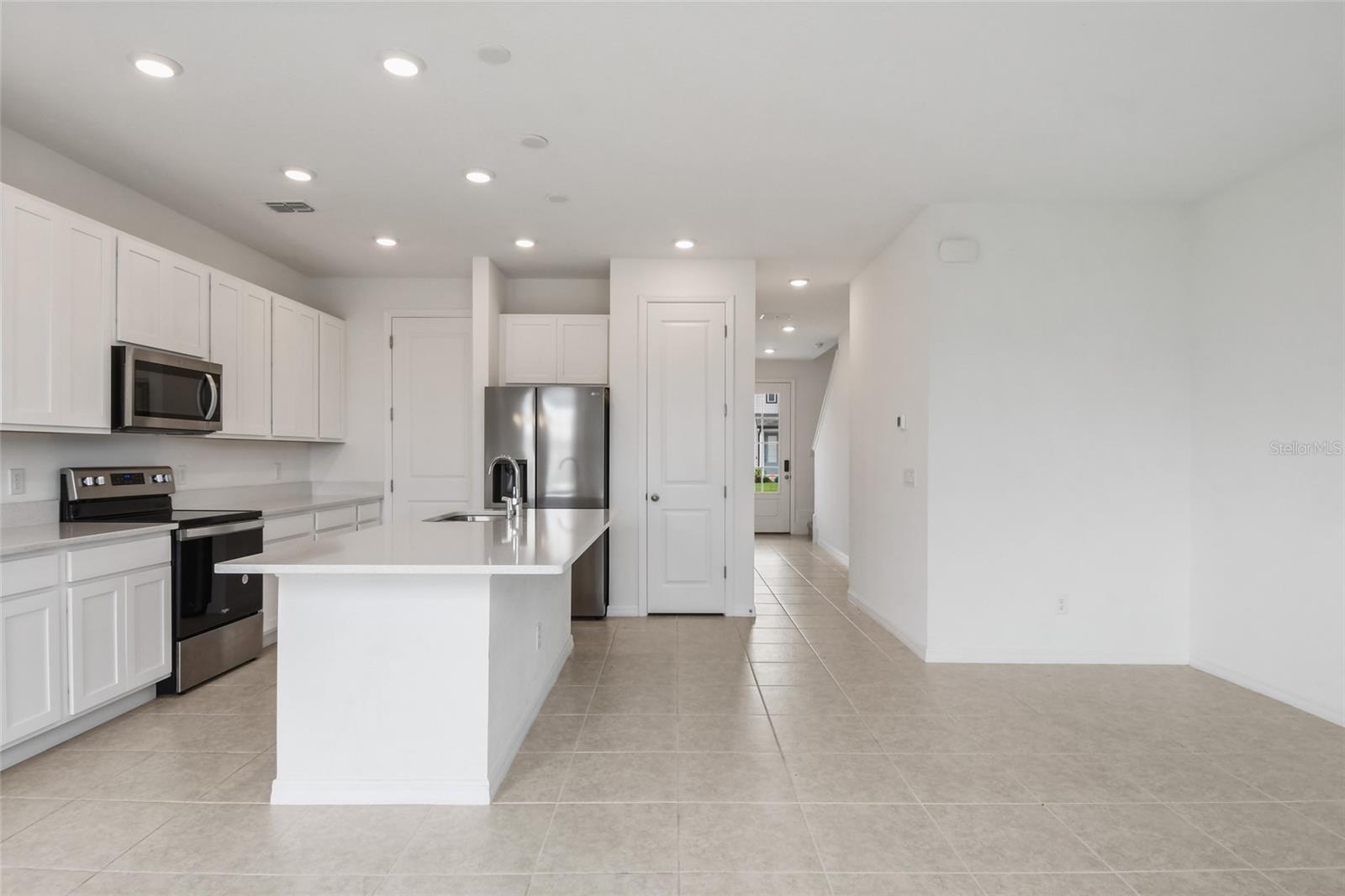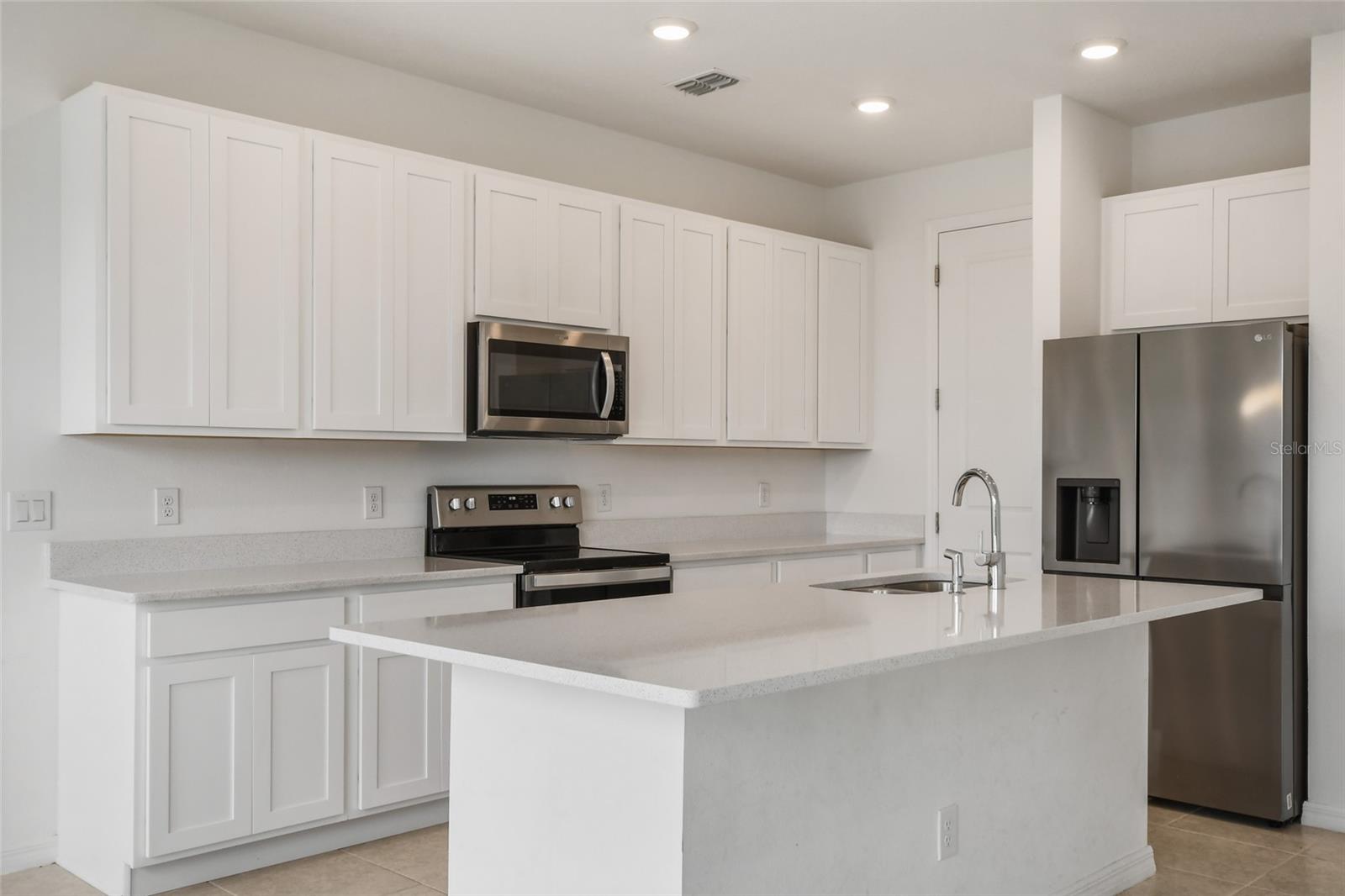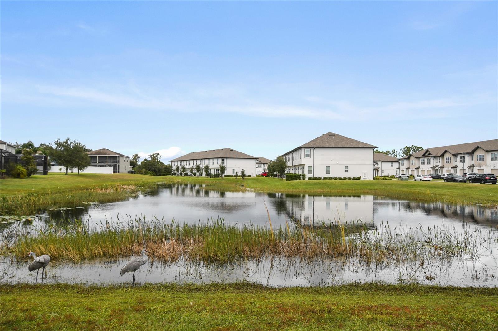 Endless Possibilities with No Rental Restrictions! This 3-bedroom, 2.5-bathroom townhome offers unmatched flexibility for short-term (Airbnb) or long-term rental investments. Nestled in the vibrant Enclave at Festival Resort, this home features a serene pond view and a modern, luxurious design that appeals to both residents and travelers alike. Inside, you'll find ceramic tile floors, a bright open kitchen with stainless steel appliances (stove, dishwasher, microwave, and refrigerator), and an enormous Quartz island, perfect for entertaining. The kitchen flows seamlessly into the great room and dining area, creating an inviting space for gatherings. Nestled amidst 200 acres of serene woodlands and lakes, the community offers a wealth of amenities: A resort-style pool, fitness center and sports courts, scenic nature trails and tranquil lakeside views. This townhome is located just 5 minutes from ChampionsGate Town Center, offering convenient access to shopping and dining. Additionally, you’re only 20 minutes from world-renowned theme parks, making it a perfect hub for exploring Central Florida’s finest attractions.