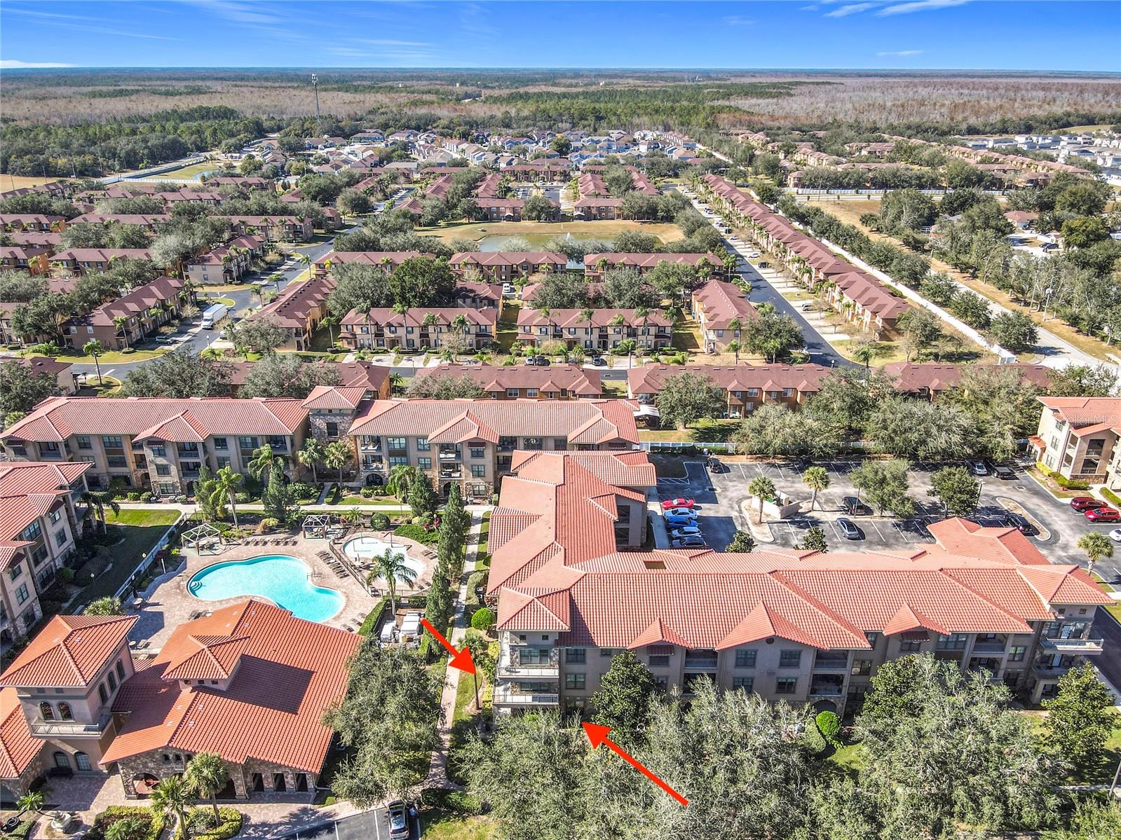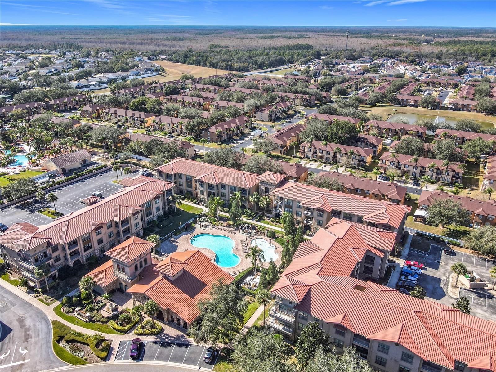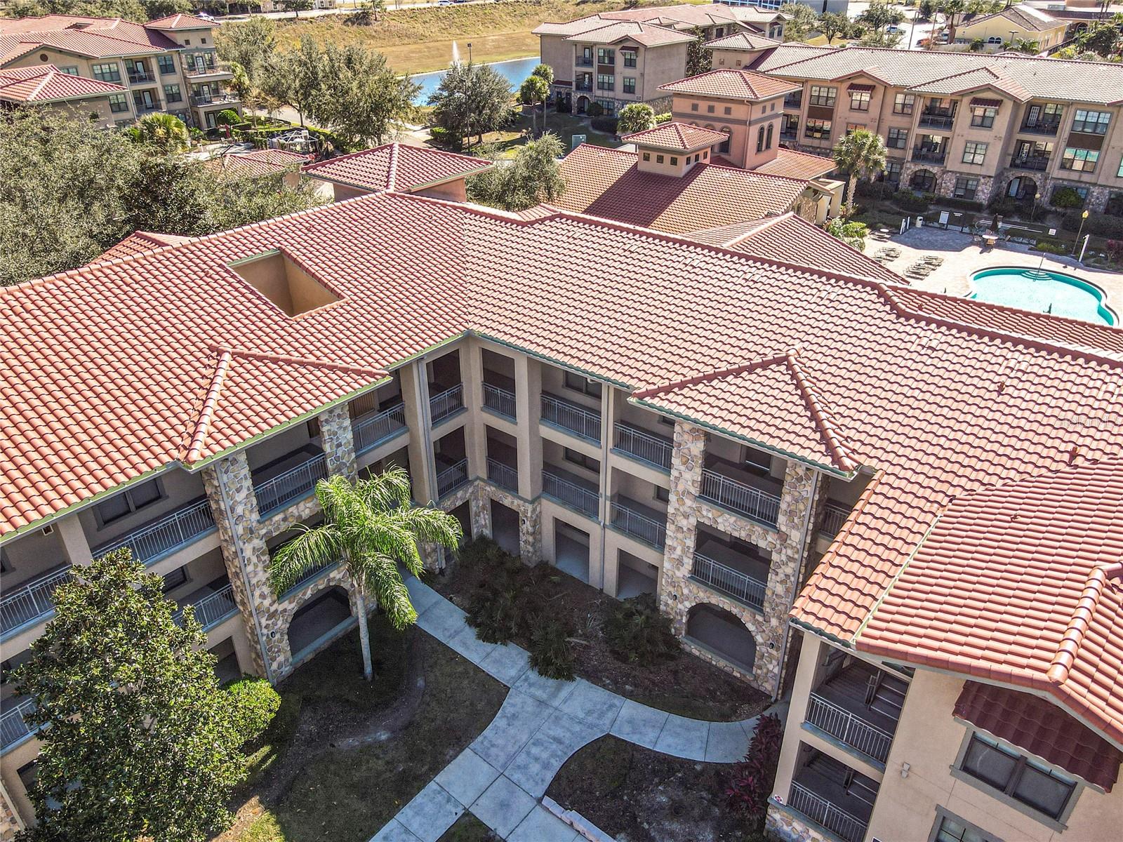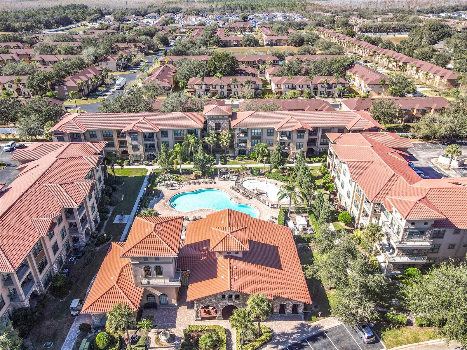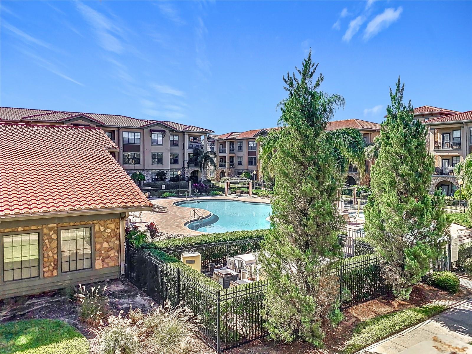Welcome to Bella Piazza, a Tuscan-style resort. A rare opportunity to own this immaculate well taken care of SOUTH FACING CORNER UNIT overlooking the pool. The original owner is selling, this was a former model for the builder and it has never been rented! This beautiful 3 bedroom 3 bath condo has crown moulding throughout and full of upgrades. As you walk in the condo and approach the open kitchen and living room layout you will see upgraded stainless steel appliances, granite countertops and beautiful hardwood cabinets. The HVAC has been upgraded to a higher end Trane unit. Highend ceiling fans and light fixtures thru out. The spacious primary suite features a walk in closet and the primary bathroom has dual sinks, a shower and separate tub. The laundry closet features top of the line Frigidaire washer and dryer less than a year old. Condo building has a BRAND NEW ROOF and NEW BALCONY coming in 2025, Seller has already paid for the assessment. And yes, the building does have an elevator, so no need to worry about carrying groceries or luggage up the stairs! Enjoy maintenance free living, the monthly condo fee includes cable, internet, trash, and water! Bella Piazza Resort is zoned for short term rental and includes a lot of amenities like a Clubhouse and Business center, 2 large pools, kiddies pool with splash pad, spa, fitness center, lounge area. Prime location close to Disney Theme Parks, several shopping plazas, fine and casual restaurants, nearby championship public golf courses and the famous Sunset Walk at Margaritaville, major HWY's I-4 and 429. Orlando International Airport only 30 min! Schedule your showing appointment today to enjoy an amazing lifestyle tomorrow!!!