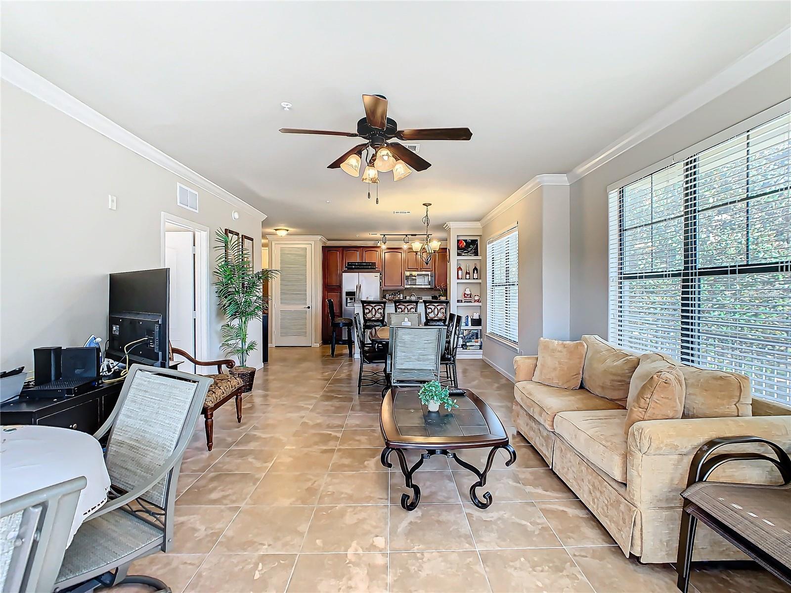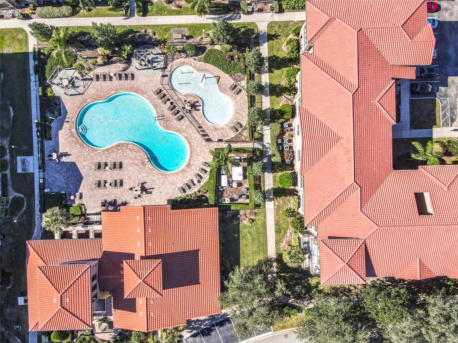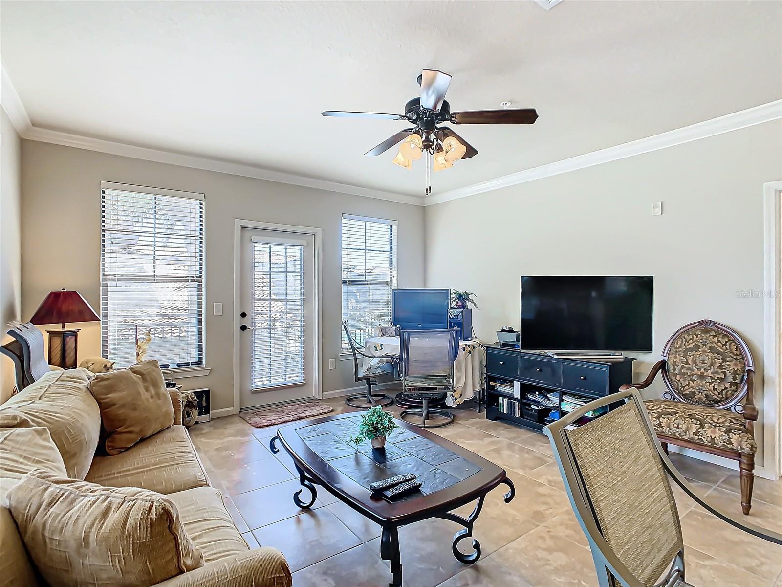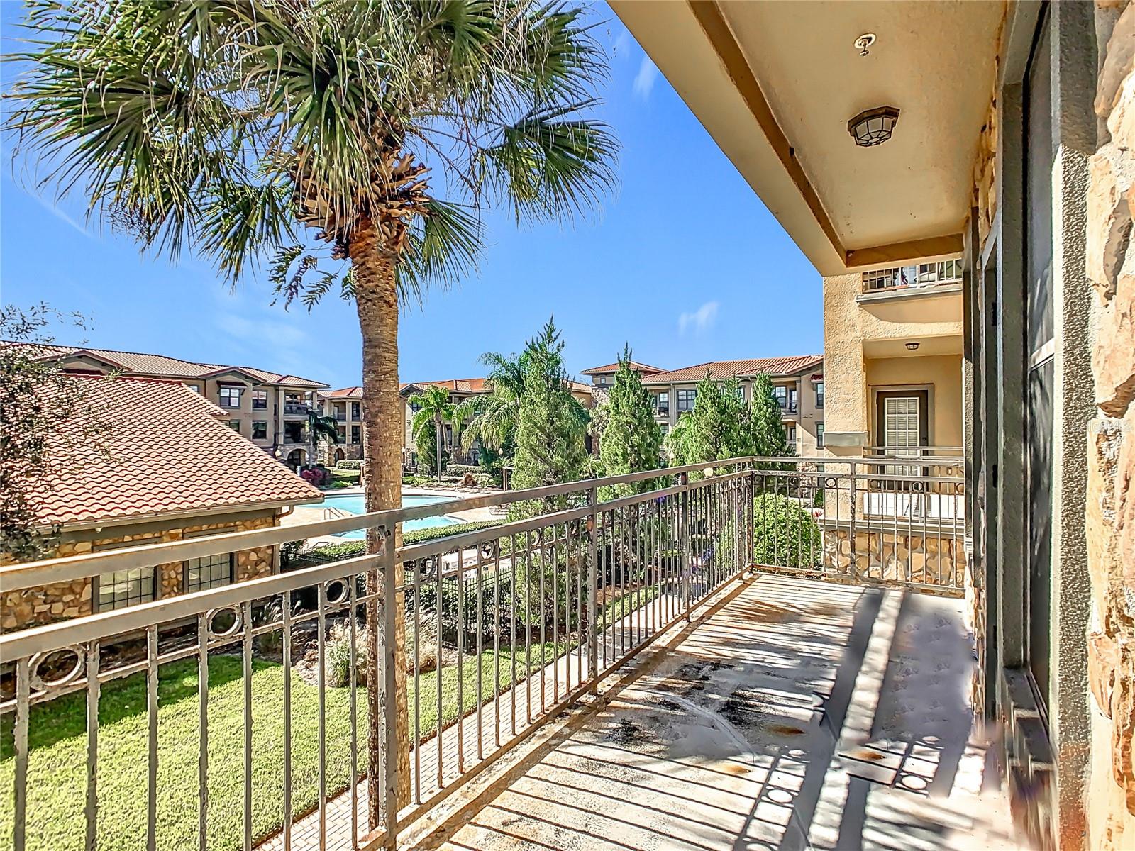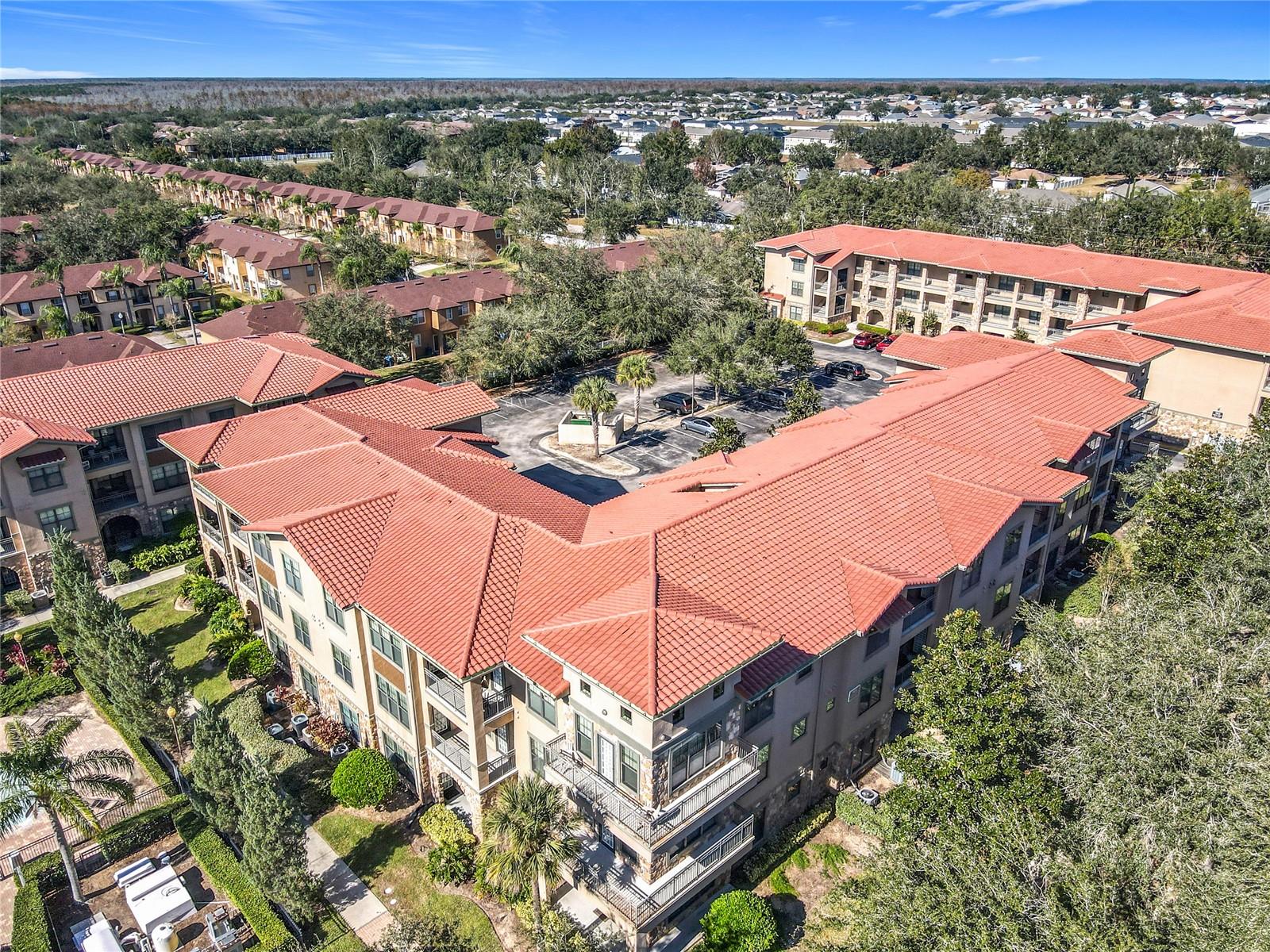 Welcome to Bella Piazza, a Tuscan-style resort. A rare opportunity to own this immaculate well taken care of SOUTH FACING CORNER UNIT overlooking the pool. The original owner is selling, this was a former model for the builder and it has never been rented! This beautiful 3 bedroom 3 bath condo has crown moulding throughout and full of upgrades. As you walk in the condo and approach the open kitchen and living room layout you will see upgraded stainless steel appliances, granite countertops and beautiful hardwood cabinets. The HVAC has been upgraded to a higher end Trane unit. Highend ceiling fans and light fixtures thru out. The spacious primary suite features a walk in closet and the primary bathroom has dual sinks, a shower and separate tub. The laundry closet features top of the line Frigidaire washer and dryer less than a year old. Condo building has a BRAND NEW ROOF and NEW BALCONY coming in 2025, Seller has already paid for the assessment. And yes, the building does have an elevator, so no need to worry about carrying groceries or luggage up the stairs! Enjoy maintenance free living, the monthly condo fee includes cable, internet, trash, and water! Bella Piazza Resort is zoned for short term rental and includes a lot of amenities like a Clubhouse and Business center, 2 large pools, kiddies pool with splash pad, spa, fitness center, lounge area. Prime location close to Disney Theme Parks, several shopping plazas, fine and casual restaurants, nearby championship public golf courses and the famous Sunset Walk at Margaritaville, major HWY's I-4 and 429. Orlando International Airport only 30 min! Schedule your showing appointment today to enjoy an amazing lifestyle tomorrow!!!