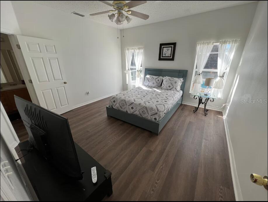 NEW ROOF, & A/C Floors, Drywalls, Appliances, and completely remodeled to host guests! This fabulous large 5/4 home is situated in the beautiful Hampton Lakes Estates off. The fantastic layout is great for entertaining family and friends. Two Master Suites are located on the first floor. An open staircase overlooks the spacious kitchen and family room. This extends to the spa like environment of the enclosed pool area which is centered for entertaining guests and family. The second floor has an additional Master Suite along with two other bedrooms with their own bathrooms. The community features a swimming pool, tennis courts, sand volleyball and beautiful grounds to walk among the palm trees. The HOA includes yard maintenance and patrolled security. Minutes to Disney, Epcot, Animal Kingdom, Hollywood Studios, Champions Gate Golf Course, Dining and Entertainment.