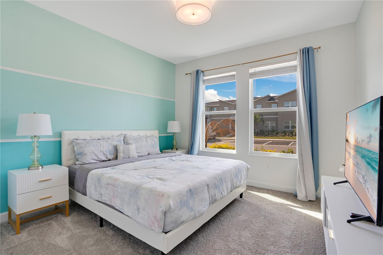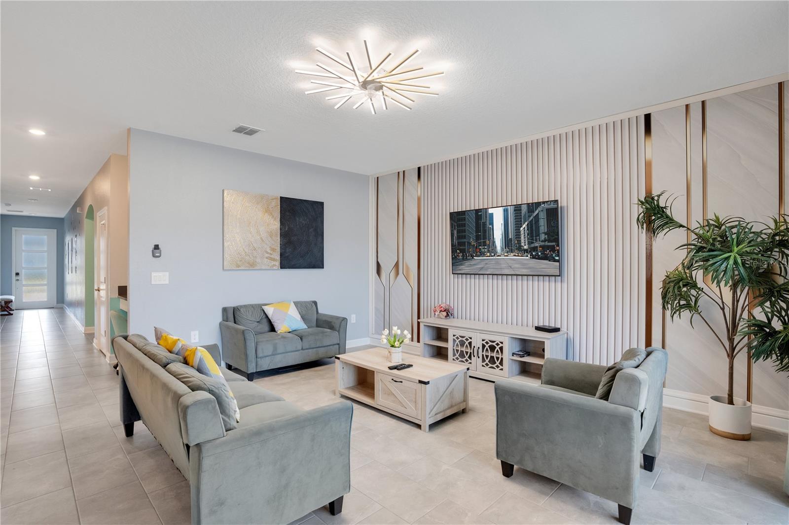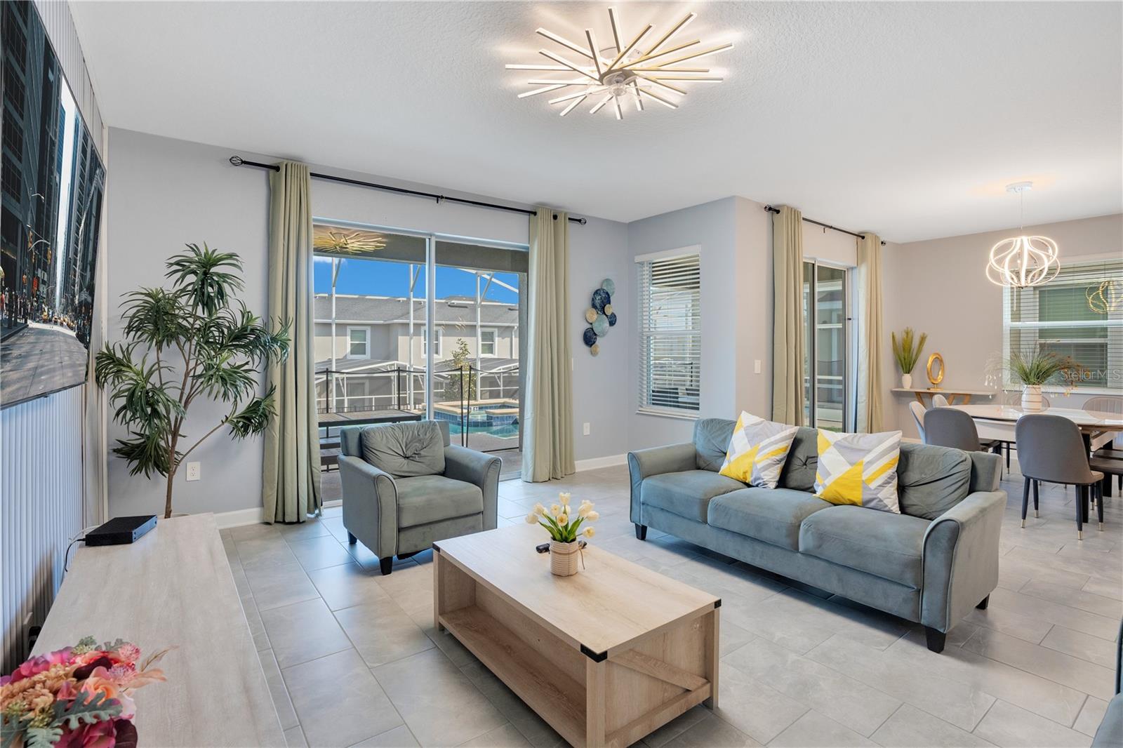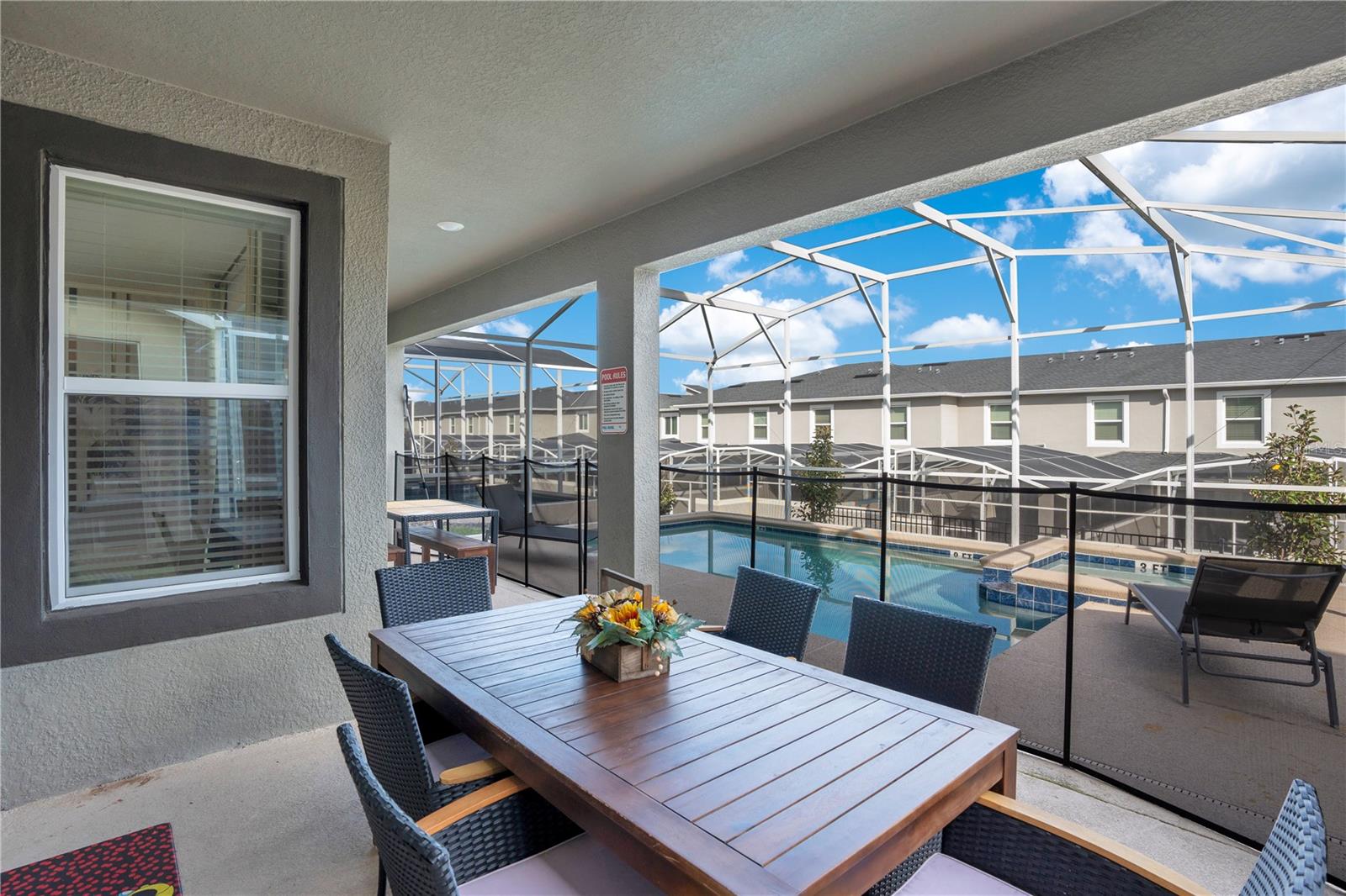 FULLY FURNISHED TURNKEY INVESTMENT OPPORTUNITY in the highly sought-after ChampionsGate Resort! This nearly new, 2023-built, 6-bedroom, 5-bathroom luxury home combines exquisite design with unparalleled comfort and entertainment. The property features a private heated pool and hot spa within a screened lanai, creating an ideal retreat for year-round relaxation. The interior showcases a modern kitchen equipped with high-end cabinetry, granite countertops, stainless steel appliances, and a spacious island, perfect for hosting gatherings. The first floor includes a standout bedroom for convenience, while the upper level boasts an open loft, a luxurious primary suite with a soaking tub, walk-in shower, and dual sinks, as well as four additional bedrooms, ensuring privacy and comfort for all. The expansive family/dining room combo and inviting outdoor spaces make this home perfect for entertaining or unwinding in style. Located in a premier resort community, residents and guests enjoy access to world-class amenities, including a championship golf course, elegant Oasis clubhouse, resort-style pool, tennis and volleyball courts, and a fully equipped fitness center. With a newly added clubhouse and water park, the community continues to enhance its appeal for owners and vacationers alike. The HOA ensures a worry-free experience by covering access to these exceptional amenities, along with lawn care, trash service, cable, and internet. Golf enthusiasts will appreciate the celebrated golf course, recognized in leading publications. Ideally situated just 10 minutes from Disney, 20 minutes from Universal Studios, and 30 minutes from Orlando International Airport, this property offers proximity to major highways, world-class dining, shopping, and entertainment, making it the ultimate hub for relaxation and adventure.
