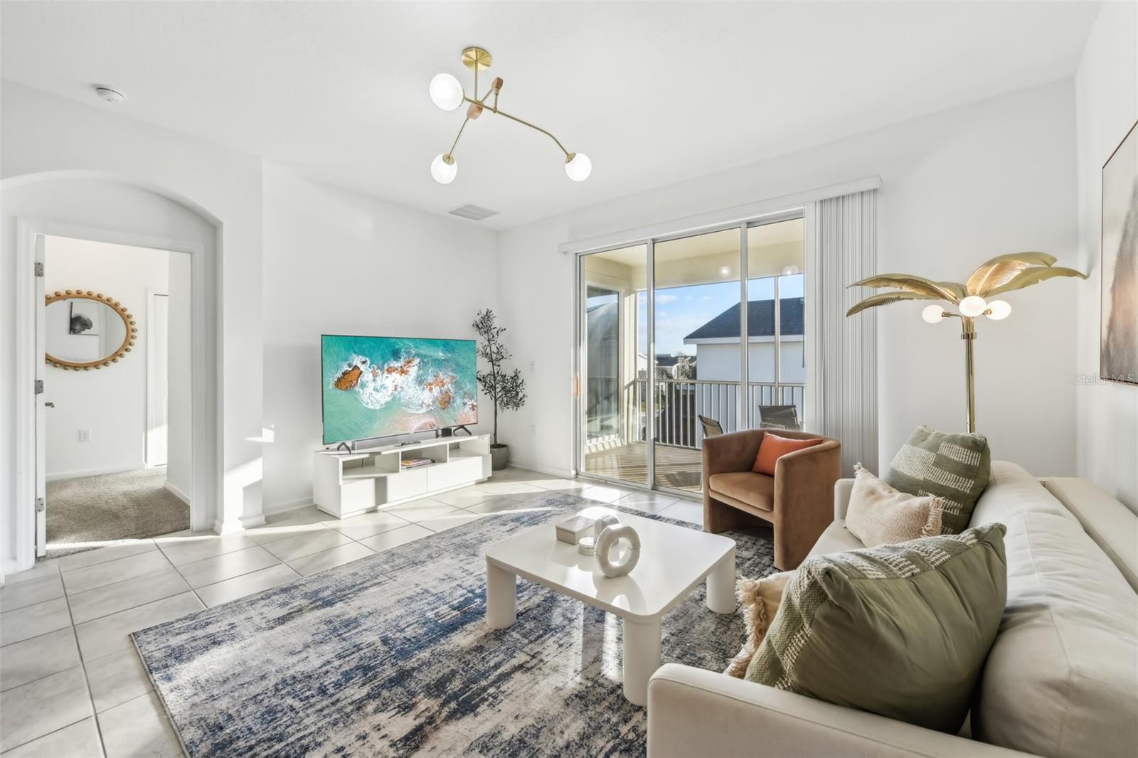 This beautifully furnished, turnkey 3-bedroom, 2-bathroom home offers the ideal opportunity for short-term rentals in the highly sought-after Champions Gate community. Located just minutes from the Disney Parks and International Drive, this spacious home combines comfort and convenience for guests and owners alike. The condo features a spacious kitchen with 42-inch cabinets, quartz countertops, stainless steel appliances, and recessed lighting – perfect for preparing meals or entertaining. The open floor plan provides ample space for relaxation and socializing, while the screened-in private balcony offers a partial water view for a serene setting. The master suite includes a walk-in closet and an en-suite bathroom with a garden tub and separate shower for ultimate relaxation. ChampionsGate is a true vacation destination with endless amenities to offer, including two exciting waterparks – Oasis Club and the new Retreat Club (just steps away from the condo). Guests can enjoy world-class golf courses, tennis courts, lazy river, pools, restaurants, and a clubhouse with a movie theater, fitness center, game room, tiki bar, cabanas, and more! Whether you're looking for a relaxing retreat or a vibrant vacation spot, this condo delivers. All furnishings are included, making this a fully turn-key investment property ready to generate income. Don't miss out on this amazing opportunity, schedule a showing today to see all that this spectacular condo has to offer!