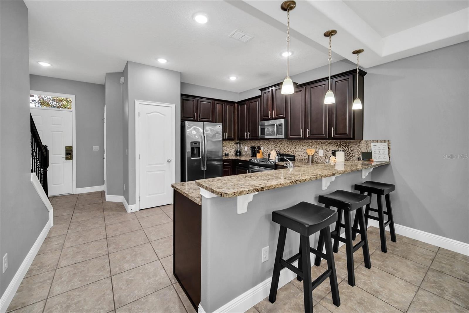 Prepare to be Wowed! Nestled in the heart of Champions Gate is this stylish and elegant townhome, which comes fully furnished and Vacation ready! The Fountains' in Champions Gate is close to World class attractions such as Disney & Universal Studios, SeaWorld and Legoland as well as easy access to I-4. The gated community itself offers a community pool, spa, gym and meeting room and is just a short walk to local restaurants, pubs, services and shopping! The current owners have spared no expense when updating this lovely home, which is beautifully decorated to include a new engineered hardwood staircase, recently installed laminate flooring upstairs, all new furniture and soft furnishings, fresh paint throughout, and new LED lights throughout the home. Settle in with your family or use this as your second home/investment home. The first floor of the home contains an open plan living space with the living, dining room and kitchen all seamlessly flowing together. The kitchen includes modern appliances, ample counter space and chic design touches that any chef is sure to love. The living room has sliding doors opening to a private patio and lawned area which is open to the tranquil preservation area behind. All 3 bedrooms and 2 bathrooms are located upstairs. The listing agent is the managing agent, so please ask for information regarding income. This home has a long term guest staying and paying $2,500 per month. This guest would like to stay for longer if the incoming buyer would like to keep him. Don't miss out on this wonderful home!All information recorded in the MLS is intended to be accurate but cannot be guaranteed. The buyer is responsible for their own due diligence, including but not limited to verifying HOA covenants and governing documents, association transfer fees, capital contributions, resales fees, pet restrictions, parking restrictions, community information, rules, leasing requirements, sq feet, lot size, dimensions and taxes.
