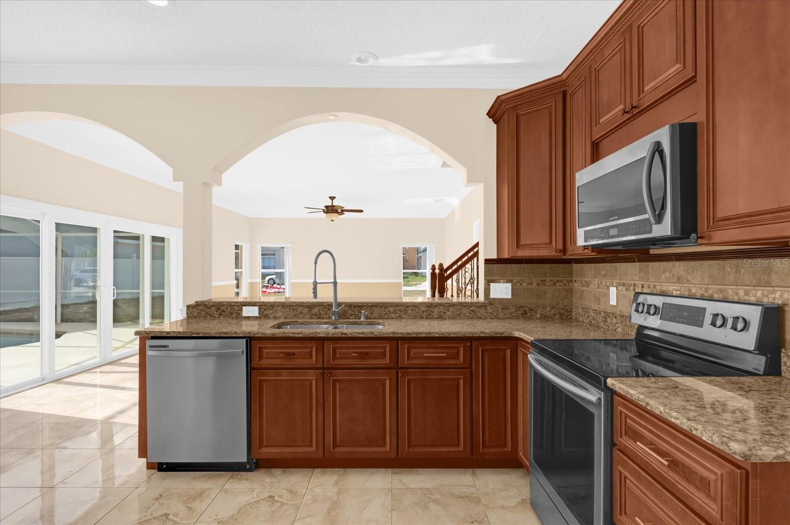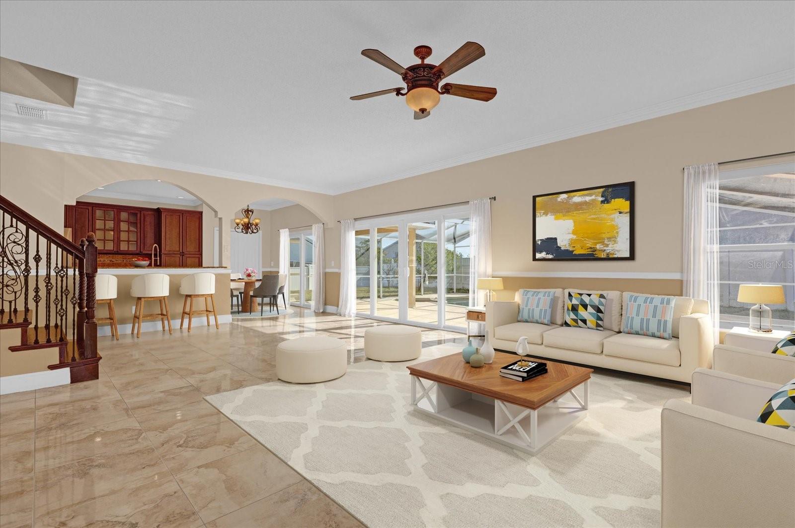 One or more photo(s) has been virtually staged. Step into the epitome of luxury with this exquisitely renovated 7-bedroom, 5-bathroom home, centrally located in the highly sought-after Four Corners area of Davenport, Florida. Offering unmatched comfort and convenience, this property is an ideal find for both homebuyers and investors. The spacious open layout is ideal for both entertaining guests and everyday living This impressive home has been upgraded with tile and hardwood floors. The spacious kitchen has been upgraded with pine wood cabinets. And the entire home has renovated Granite countertops in the kitchen and all 5 bathrooms. The roof was replaced 7.5 years ago and the screened in pool area is great place to enjoy the sun and outdoors all year long. And with a covered area of the back area, you can grill out back no matter what the weather. The large upstairs primary bedroom not only has two closets, but, also an en suite bathroom with an upgraded walk in shower and jetted spa garden tub. And if you’re looking for storage space this home has it. With closets everywhere, this home also has a two car garage with high ceilings that is perfect place to have extra storage. The prime location of Lake Davenport Estates is conveniently close to major roads, highways, and Interstate I-4, offering easy access to entertainment, shopping, restaurants, and commuting routes, making it an ideal choice for families and professionals alike. And sitting high up at 190 feet in elevation, this home’s location gives the buyer peace of mind. In addition to being an amazing family home, this property is ideally located for short-term rental opportunities. With its proximity to the popular Florida theme parks, and especially being less than 20 minutes from Disney property, it presents an excellent investment opportunity for those looking to capitalize on the thriving vacation rental market in Central Florida. Beyond its extensive upgrades, this home offers a perfect blend of luxury and functionality in a sought-after location. Whether you're looking for a primary residence or an income-generating investment, this property promises a lifestyle of comfort, convenience, and potential returns. Come and experience firsthand the exceptional quality and unmatched value offered by 418 Riggs Circle. Don't miss out on this rare opportunity to own a truly extraordinary home with significant investment potential.