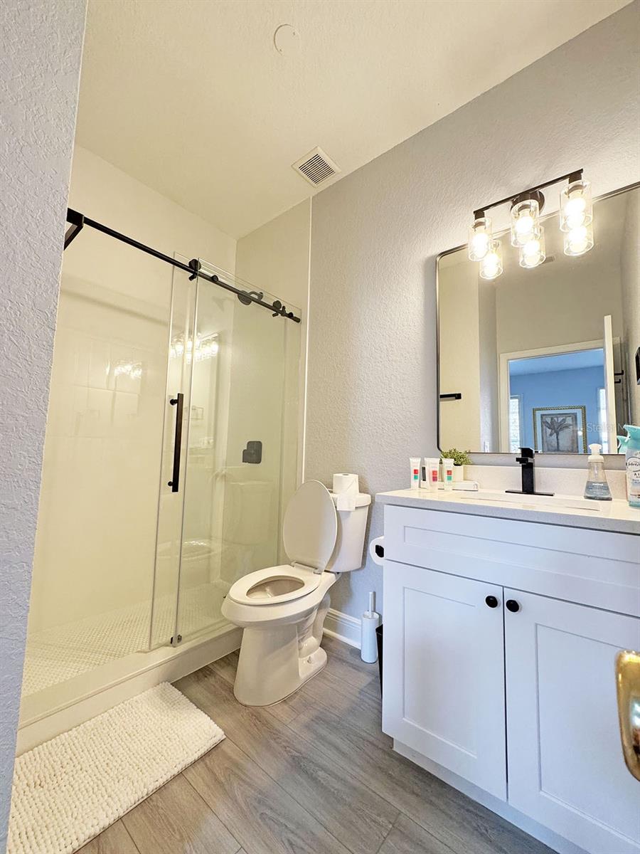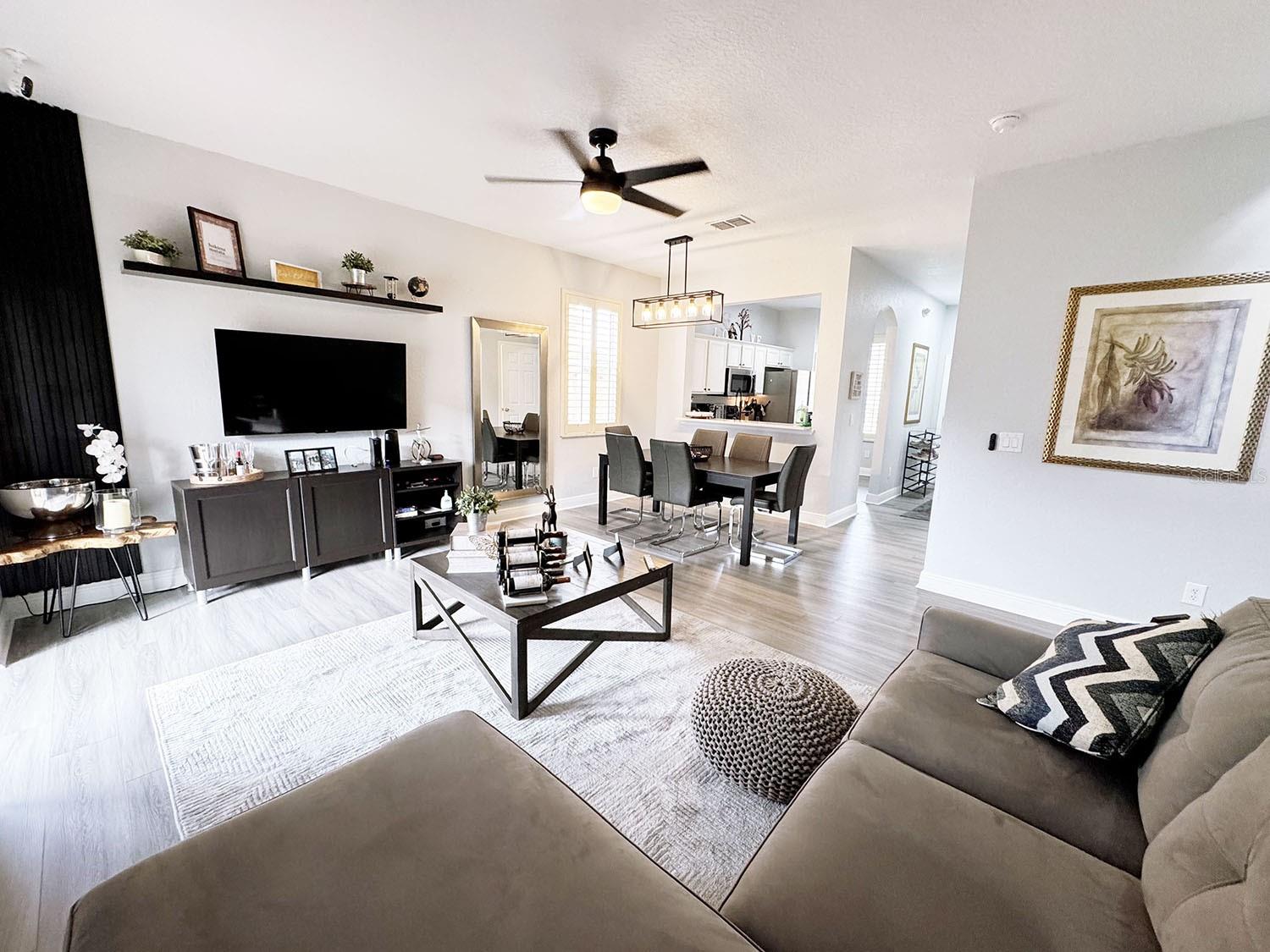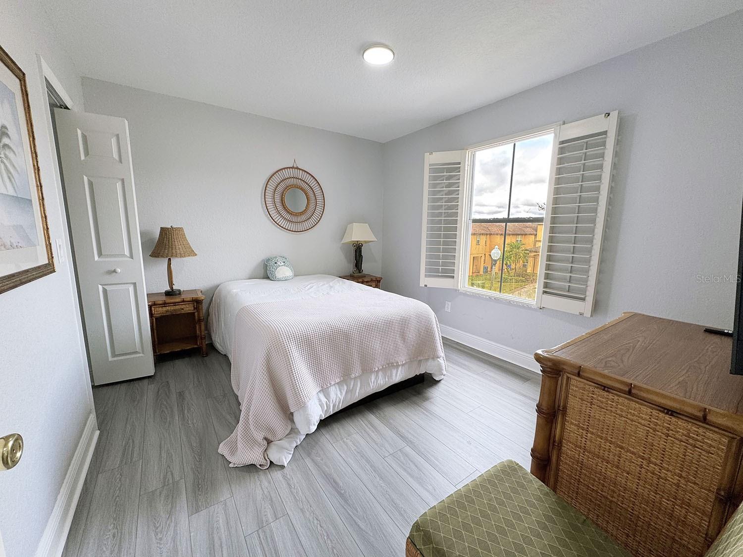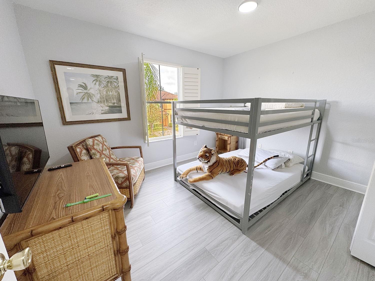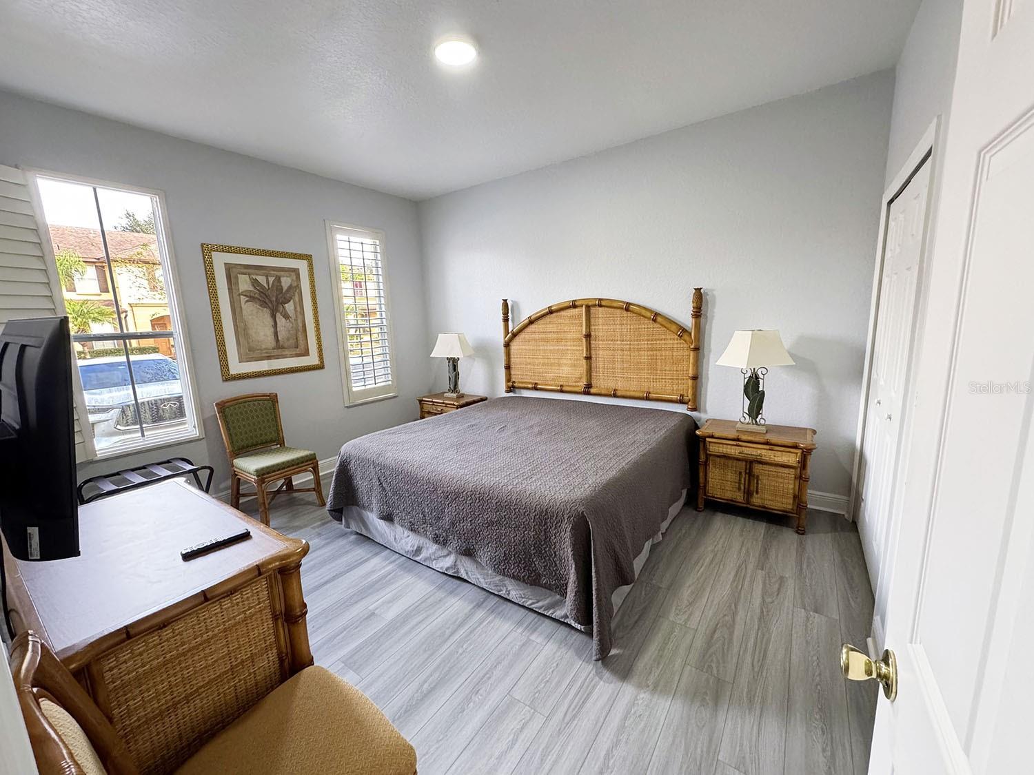 4 bed 3.5 bath Bermuda model end unit with south facing patio and deck. Comes fully furnished with Stainless Steel appliances, Granite counter tops, Bamboo floors in the common areas on the 1st floor, plantation shutters and glass shower sliding doors. Regal Palms is an exclusive private and gated Resort community with lots of amenities. You will love the 2.5 acre tropical swimming pool and lazy river oasis, complete with heated pools, water slide with waterfalls and outdoor jacuzzis. Sun bathing terraces, a playground and a volleyball court with a pool side 'Tiki' bar. The fitness center has a therapeutic Jacuzzi, steam room and sauna along with elliptical training equipment. The spa allows you to pamper yourself with massage, manicures and pedicures etc. Inside you can enjoy dining at the restaurant and Bar, surf online on your wireless device on their free Wi-Fi or utilize the business center. Regal Palms live entertainment(seasonal), event celebrations on holidays and even a marketplace for the must have items! The Guest Services is open 24 hours. Onsite is Banana Jacks, a 4000+ sq.ft. family style environment with games, food and fun far all ages. Regal Palms is the most highly sought Resort community in the Davenport area for short term rental townhomes. AC unit with 10 years warranty, replaced in 2018. Great investment property that is zoned for short term rental