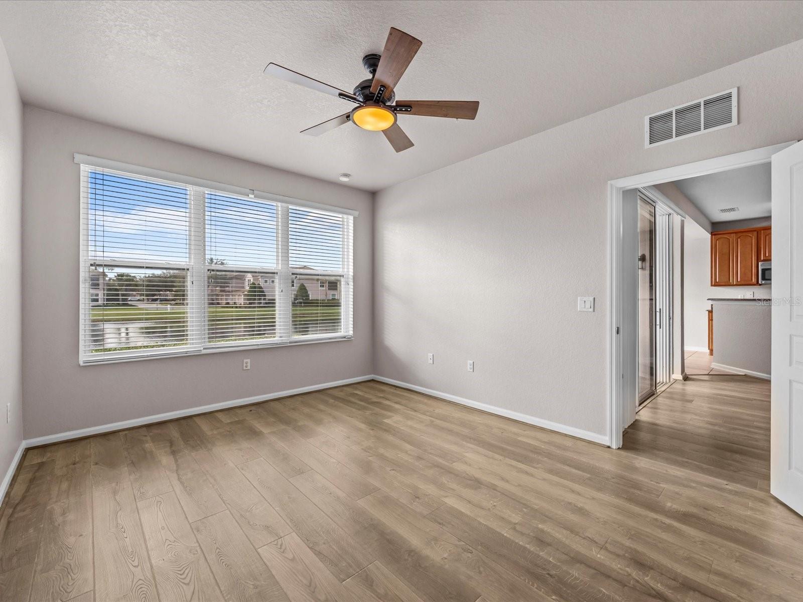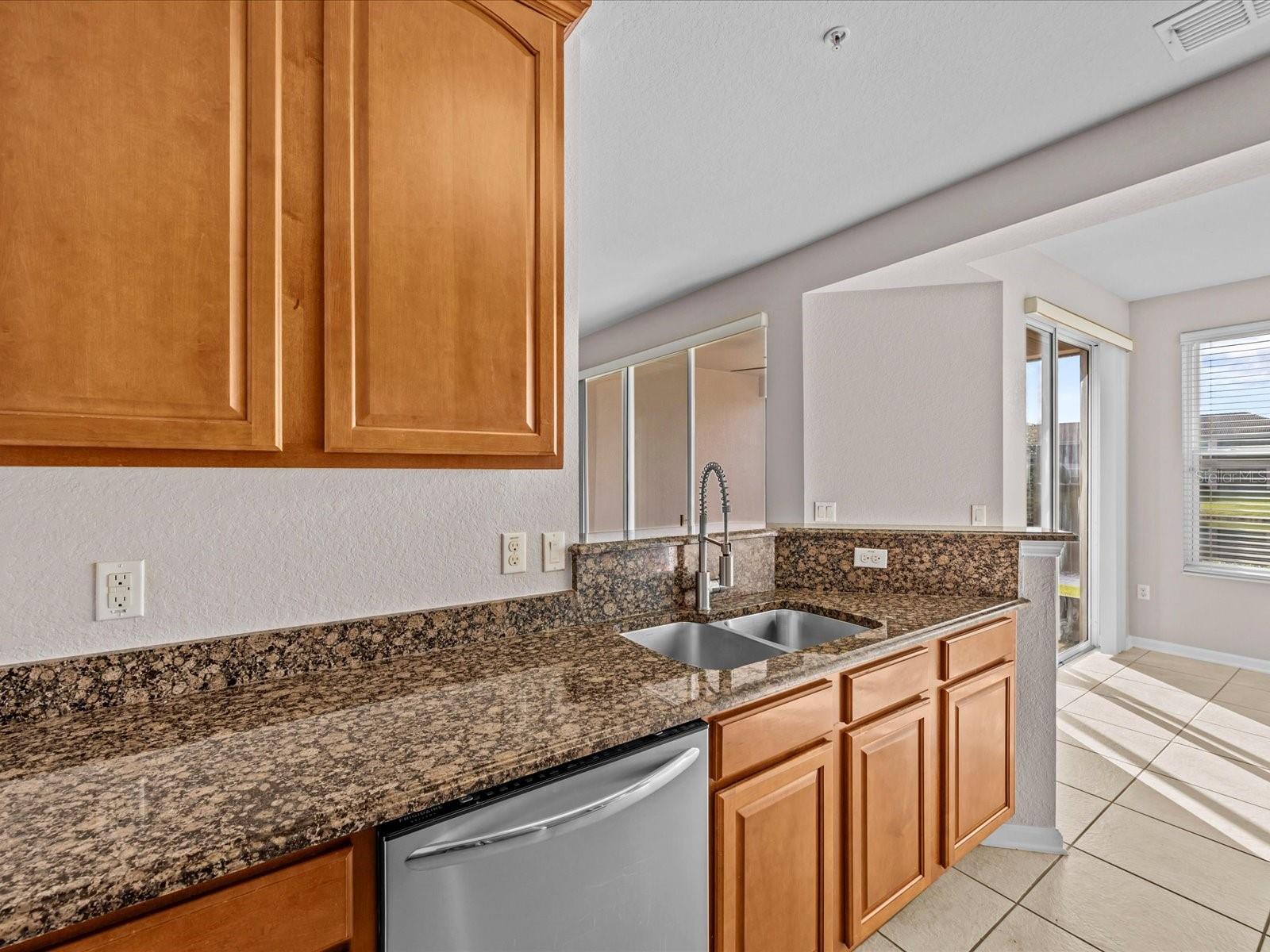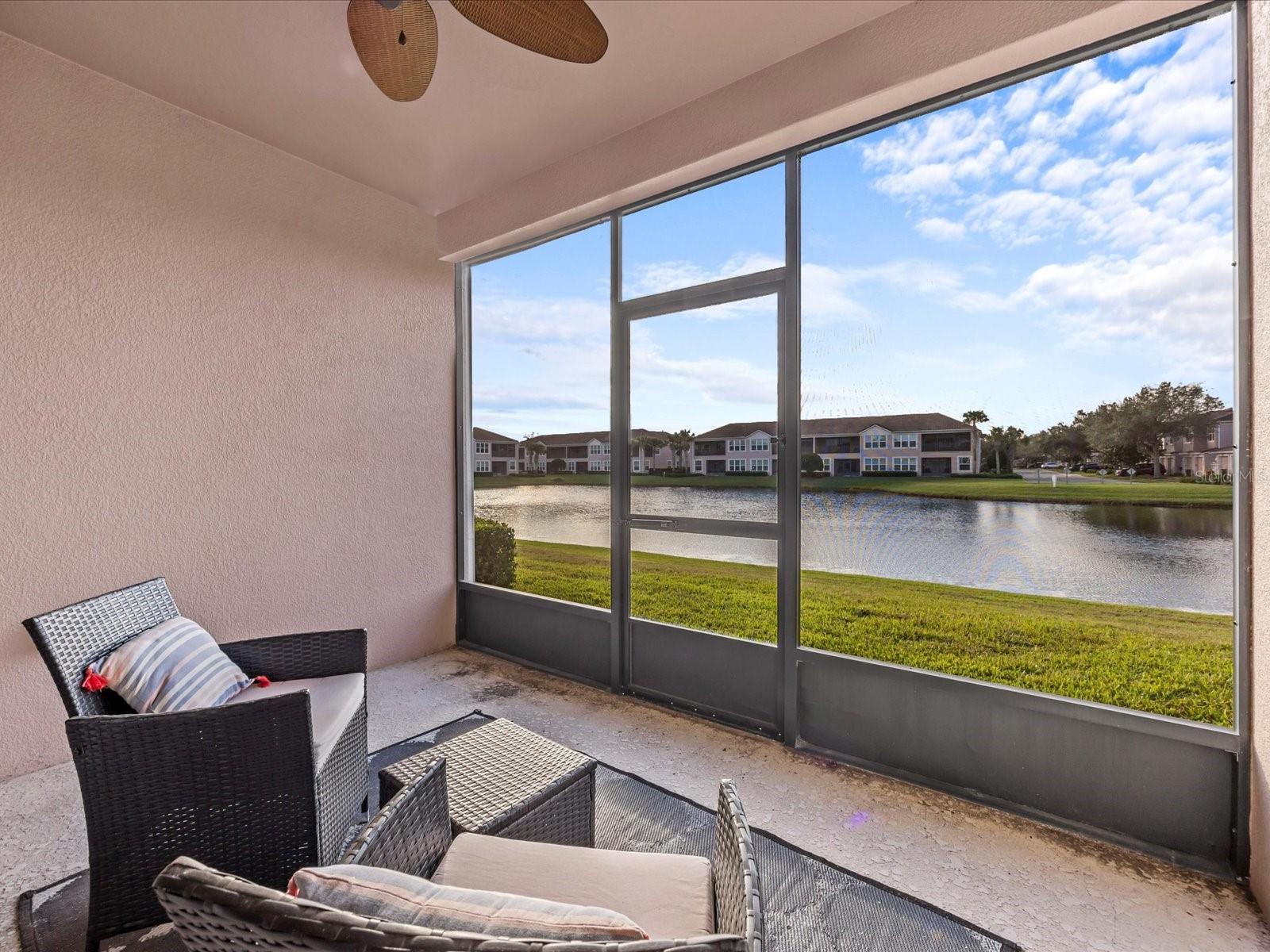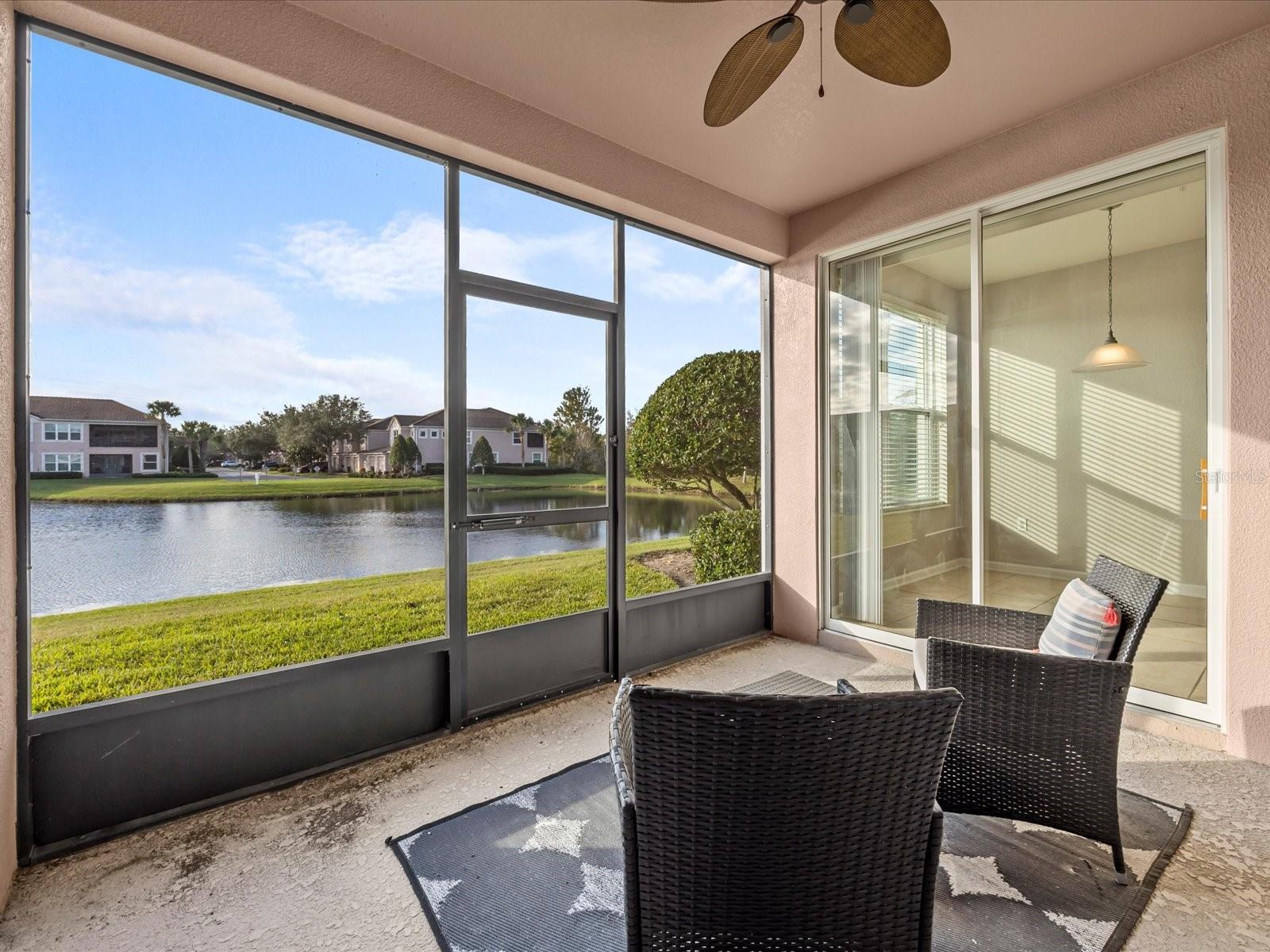 Nestled within the desirable gated community of Bella Trae, this charming first-floor condo offers the perfect blend of comfort and functionality. Featuring two bedrooms and a versatile bonus room—ideal as a third bedroom or home office—this home caters to a variety of lifestyles. The open-concept dining and living area flows effortlessly into a screened lanai, where serene pond views create an inviting space for relaxation or entertaining. The galley kitchen boasts stainless steel appliances and a cozy dining nook, perfect for enjoying your morning coffee. The primary suite offers privacy and convenience, with dual sinks, a generous walk-in shower, and a roomy walk-in closet. Two additional bedrooms are complemented by a well-placed guest bathroom for easy access. This condo also includes a full-sized washer and dryer and an attached one-car garage for added convenience. Enjoy the maintenance-free lifestyle with HOA dues that cover grounds maintenance, cable/internet, pest control, and a variety of resort-style amenities. Bella Trae offers a clubhouse with a fitness center, billiards room, library, meeting rooms, community grill stations, a zero-entry pool, spa, putting green, and tennis courts. This property is ideally situated near major highways, restaurants, and shopping.