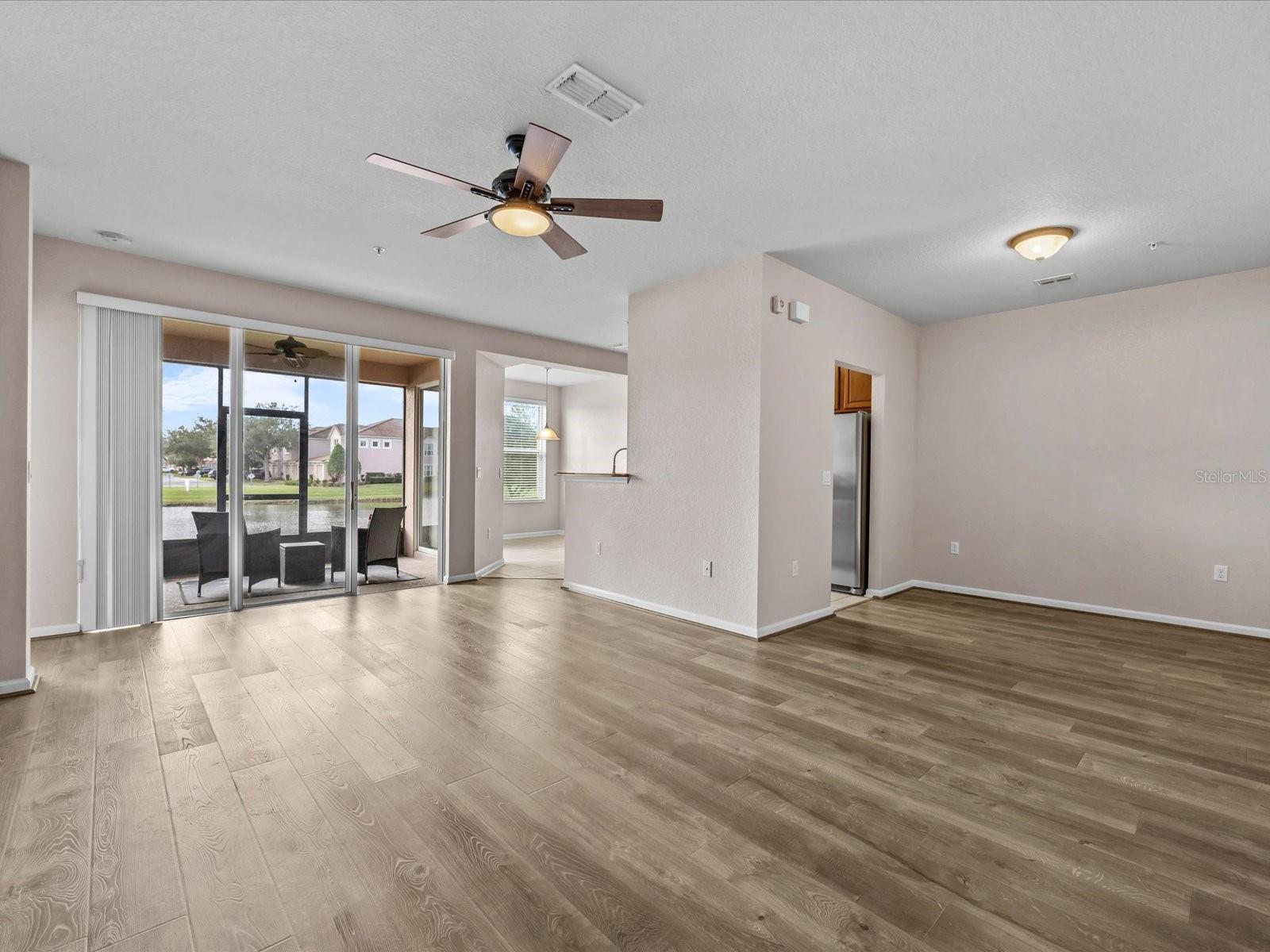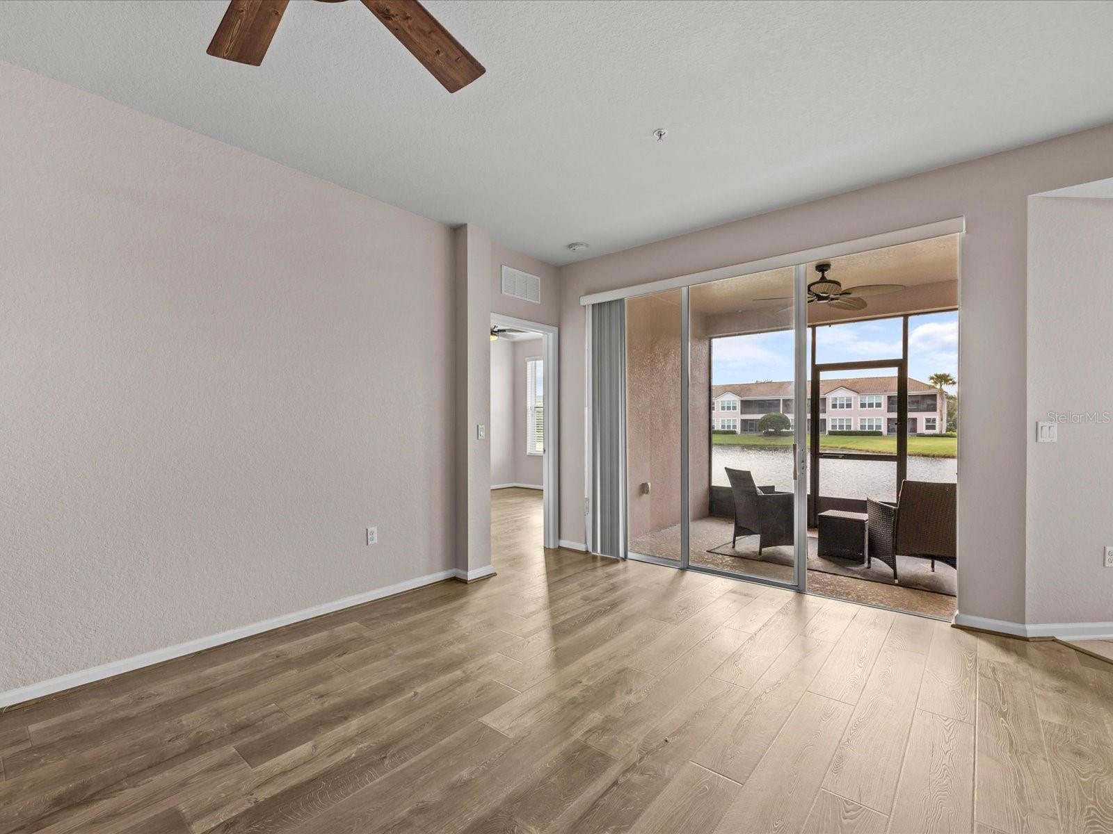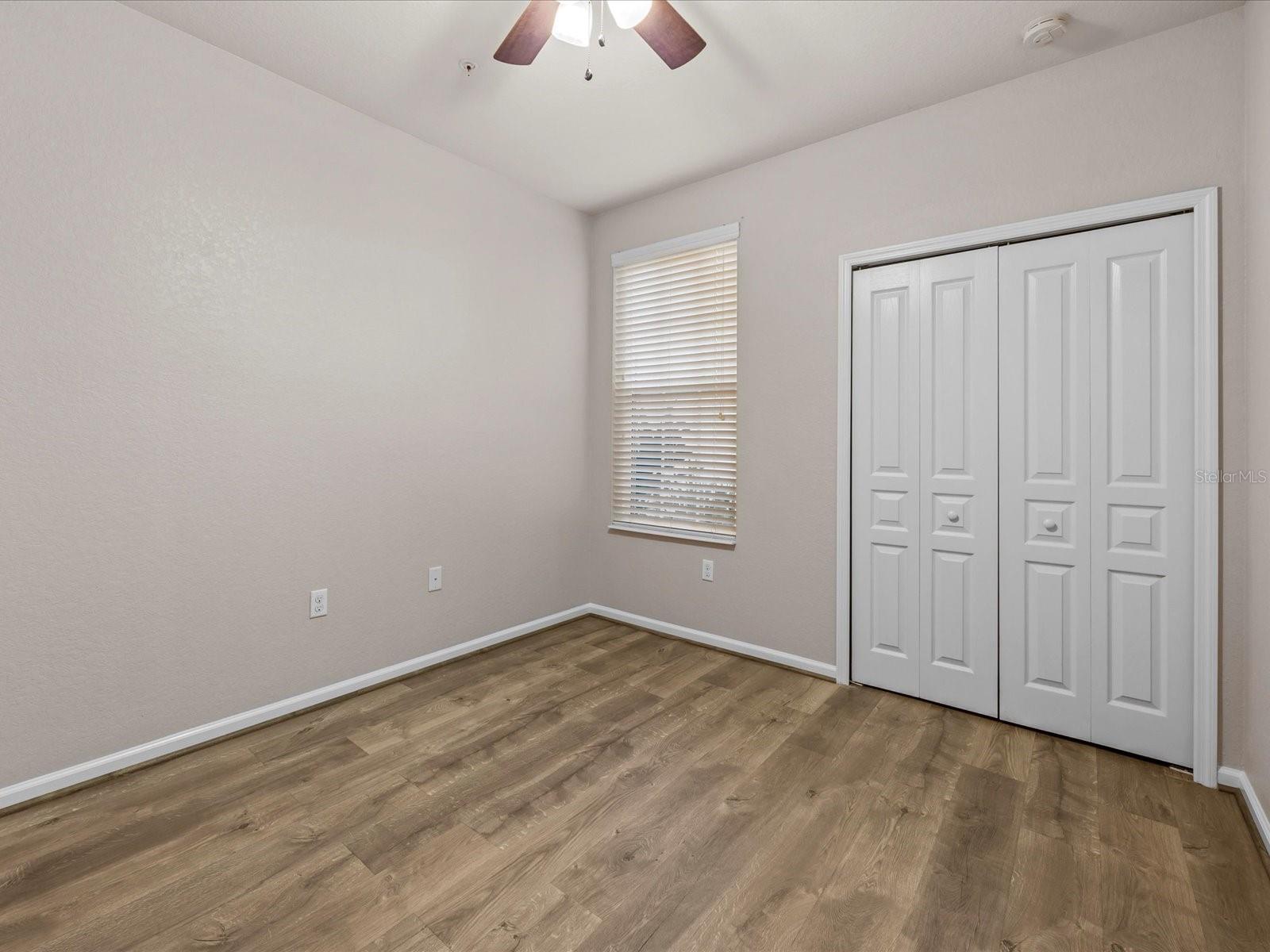 Nestled within the desirable gated community of Bella Trae, this charming first-floor condo offers the perfect blend of comfort and functionality. Featuring two bedrooms and a versatile bonus room—ideal as a third bedroom or home office—this home caters to a variety of lifestyles. The open-concept dining and living area flows effortlessly into a screened lanai, where serene pond views create an inviting space for relaxation or entertaining. The galley kitchen boasts stainless steel appliances and a cozy dining nook, perfect for enjoying your morning coffee. The primary suite offers privacy and convenience, with dual sinks, a generous walk-in shower, and a roomy walk-in closet. Two additional bedrooms are complemented by a well-placed guest bathroom for easy access. This condo also includes a full-sized washer and dryer and an attached one-car garage for added convenience. Enjoy the maintenance-free lifestyle with HOA dues that cover grounds maintenance, cable/internet, pest control, and a variety of resort-style amenities. Bella Trae offers a clubhouse with a fitness center, billiards room, library, meeting rooms, community grill stations, a zero-entry pool, spa, putting green, and tennis courts. This property is ideally situated near major highways, restaurants, and shopping.