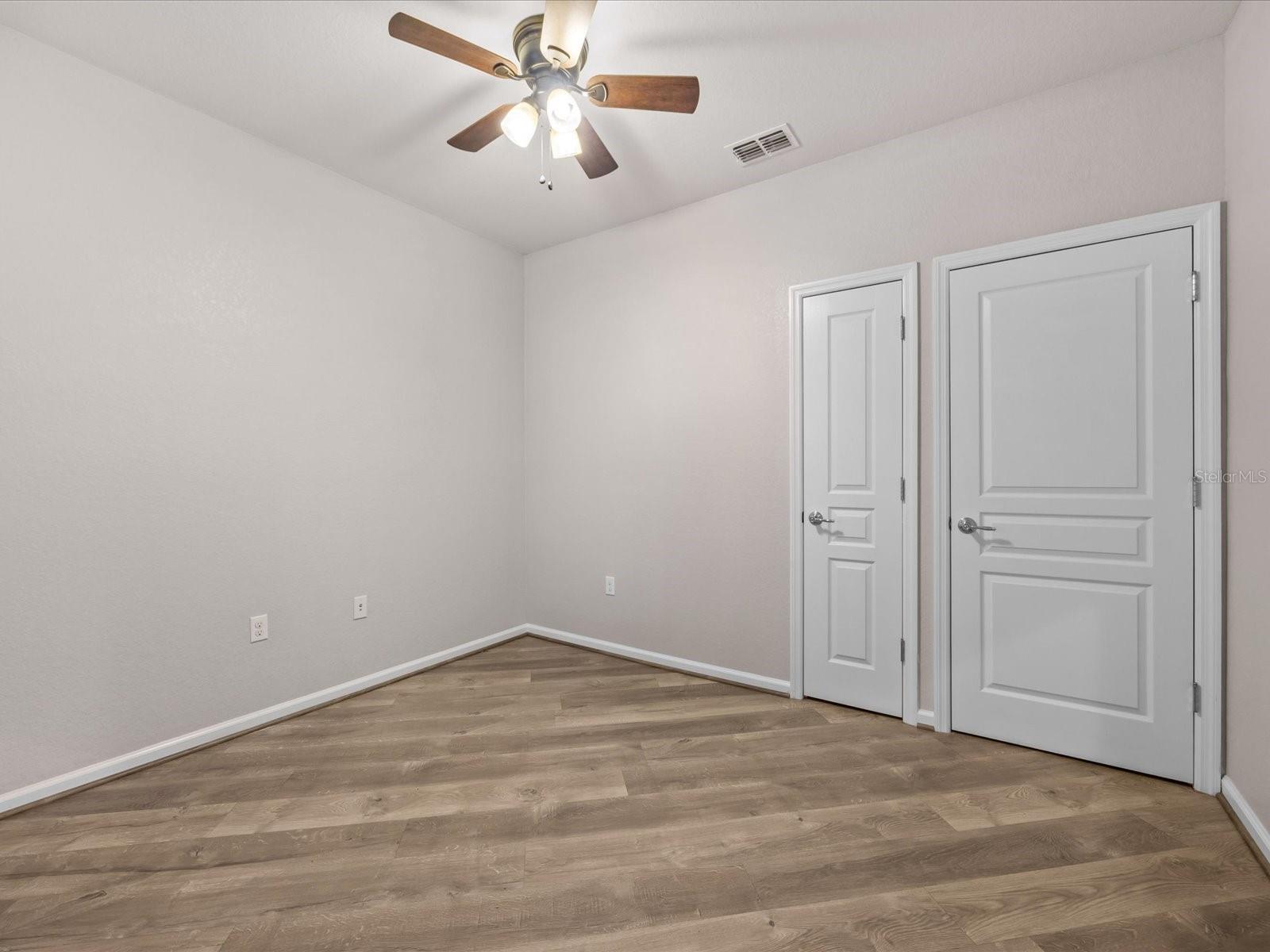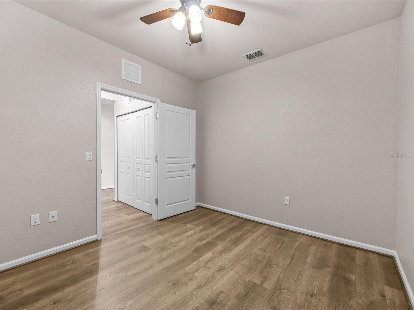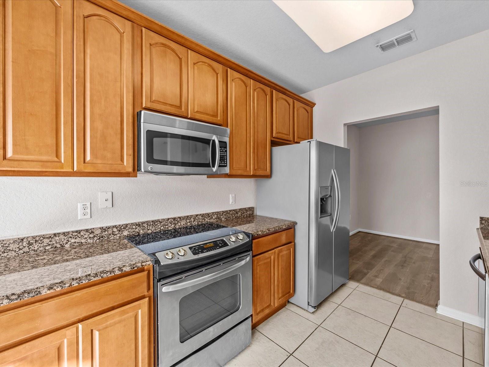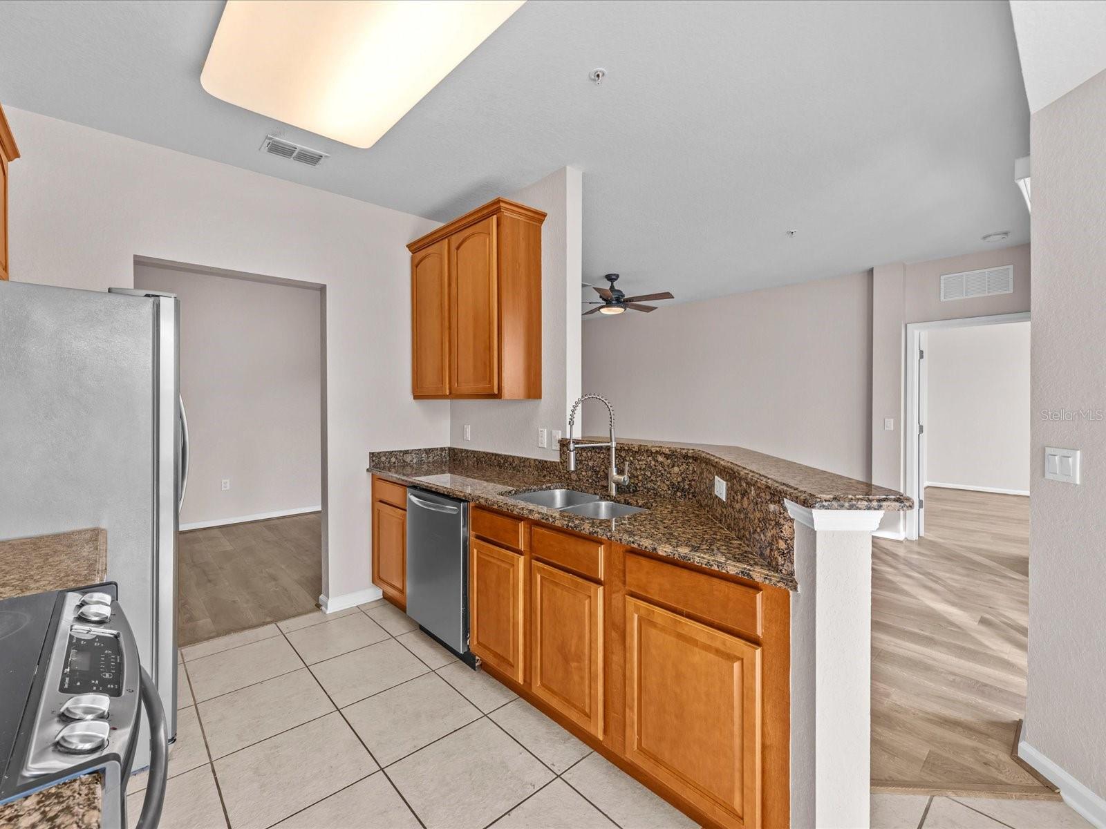 Nestled within the desirable gated community of Bella Trae, this charming first-floor condo offers the perfect blend of comfort and functionality. Featuring two bedrooms and a versatile bonus room—ideal as a third bedroom or home office—this home caters to a variety of lifestyles. The open-concept dining and living area flows effortlessly into a screened lanai, where serene pond views create an inviting space for relaxation or entertaining. The galley kitchen boasts stainless steel appliances and a cozy dining nook, perfect for enjoying your morning coffee. The primary suite offers privacy and convenience, with dual sinks, a generous walk-in shower, and a roomy walk-in closet. Two additional bedrooms are complemented by a well-placed guest bathroom for easy access. This condo also includes a full-sized washer and dryer and an attached one-car garage for added convenience. Enjoy the maintenance-free lifestyle with HOA dues that cover grounds maintenance, cable/internet, pest control, and a variety of resort-style amenities. Bella Trae offers a clubhouse with a fitness center, billiards room, library, meeting rooms, community grill stations, a zero-entry pool, spa, putting green, and tennis courts. This property is ideally situated near major highways, restaurants, and shopping.