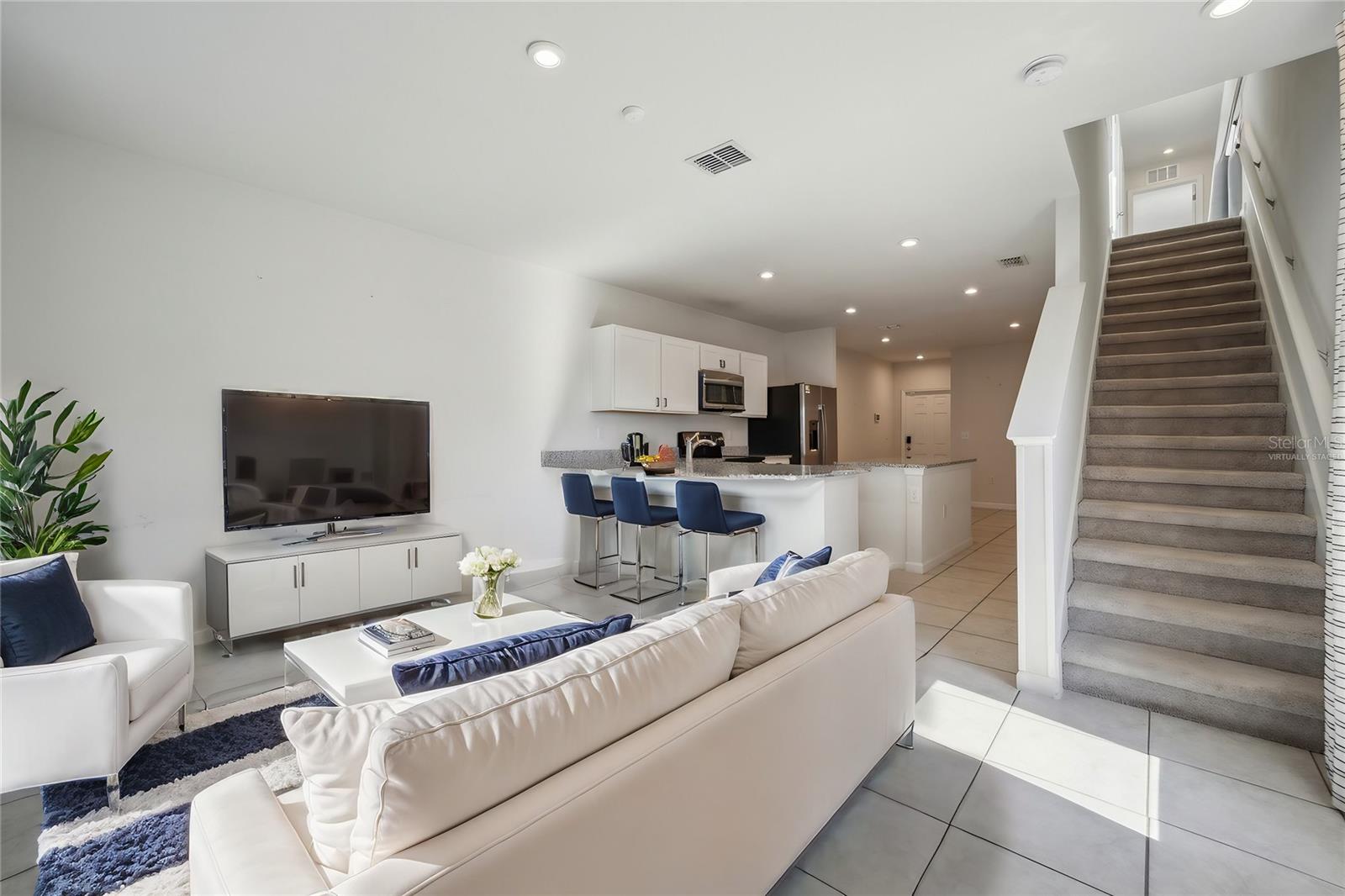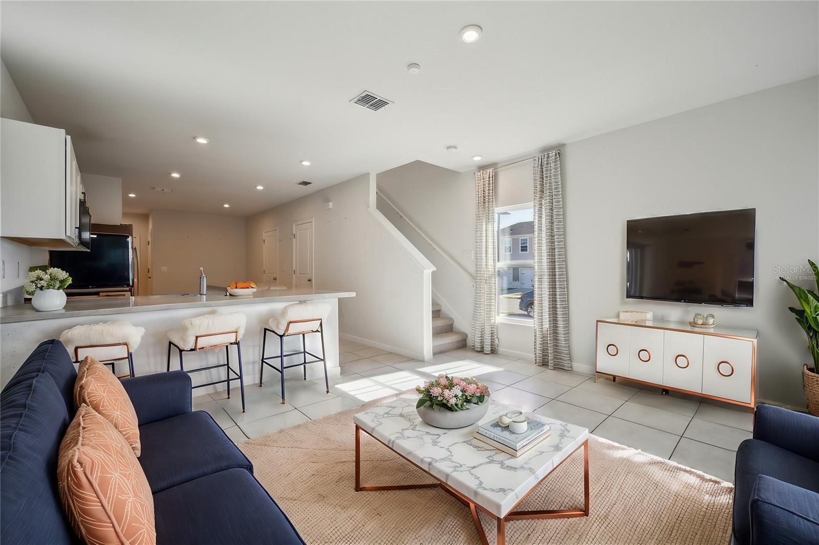 One or more photo(s) has been virtually staged. OFFERING $8,000 towards buyers closing cost! For sale or lease $1,800 - Modern Corner Lot Townhouse Built in 2022 – Prime Davenport Location Welcome to this stunning, modern townhouse in the highly desirable Davenport area, located within a townhouse complex built in 2022. This home features 3 spacious bedrooms and 2.5 bathrooms, offering the perfect blend of style, comfort, and convenience. Prime Location Enjoy the convenience of being just a 5-minute drive from I4 & Posner Park, a bustling shopping and dining hub. Here, you'll find popular stores like HomeGoods, Target, BJ's Wholesale Club, Best Buy, PetSmart, and many more. With so many options at your fingertips, this location makes daily living effortless. Upstairs Living All bedrooms are located on the second floor, providing a quiet and private retreat. The master bedroom boasts its own private bathroom and a walk-in closet. The second floor is fully carpeted, adding warmth and comfort throughout. Downstairs Highlights The open-concept main level is bright, airy, and filled with natural light. The kitchen is a showstopper with a double island, perfect for meal prep and entertaining. Separate dining and living areas provide versatility and functionality, while a convenient half bathroom on this level is perfect for guests during gatherings. Additional Features A one-car garage provides secure parking and storage. The garage currently features epoxy flooring, offering durability, resistance to stains, chemicals, and abrasion. This type of flooring enhances the overall appearance of the space while being easy to clean and maintain. The screened lanai offers a tranquil outdoor space for relaxing with a book, enjoying your morning coffee, or dining al fresco. This townhouse is the perfect blend of modern living and prime location. Don’t miss the opportunity to make it your new home! Please note that some photos have been virtually staged to showcase the home’s potential.