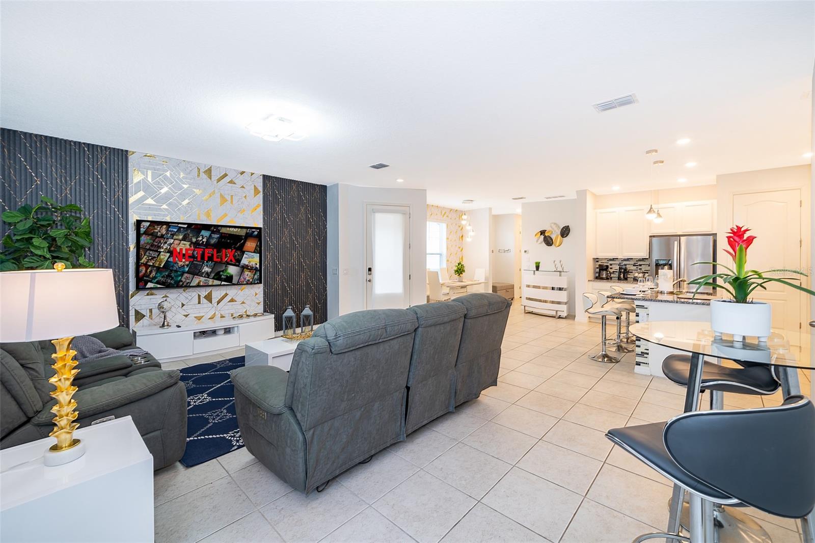 Beautiful furnished, 3 bedroom & 2.5 bathroom townhome, located in ENCLAVES AT FESTIVAL, a resort style community in the luxury Champions Gate area, close to Disney, Celebration Town, Old Town and other Orlando attractions. 1 car garage and driveway for 1 vehicle, guests parking spaces are available. This amazing community features pool, splash zone, hot tub, picnic area, game room, fitness center, mini golf course & volleyball court.