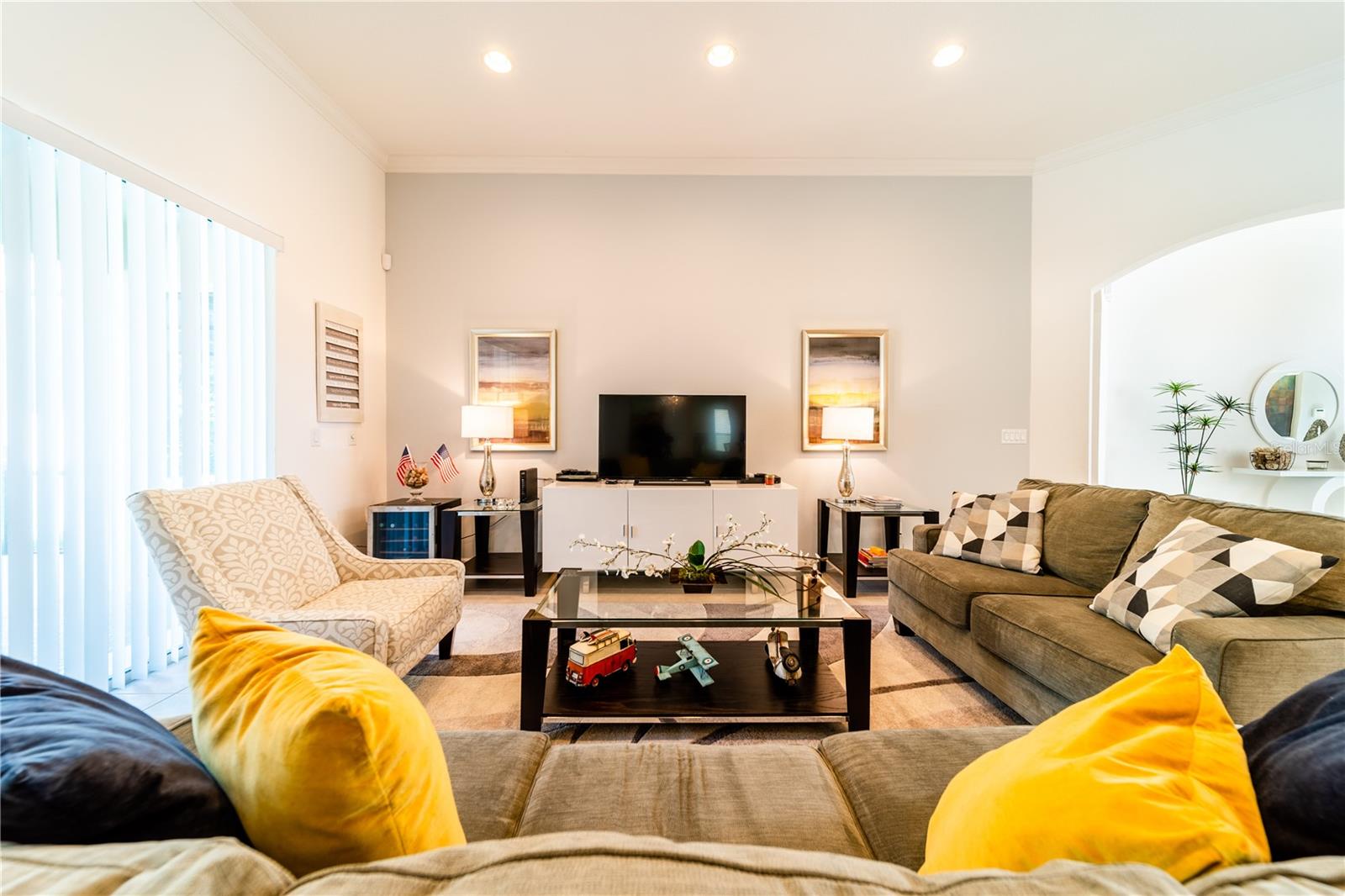Modern 5-bed/4-bath pool home. FULLY FURNISHED and professionally decorated. This is the perfect vacation home for a large family or for a short-term rental investment property. With 3 ensuites, this home allows for a luxurious living with privacy and comfort for the entire family. It features an open floorplan with integrated kitchen/living room space. Upon entrance you will feel the comfort offered by the high ceilings in the main living area. The kitchen features a beautiful granite countertop, stainless steel appliances and a convenient island for additional cooking space. The ample master suite oversees the pool in the backyard and its master bathroom offers his & her sinks and a super-shower extension. The enclosed pool sits on a private lot without rear neighbors. Solterra is a guard gated community with state of the art amenities featuring gym, pool, lazy river, pool side café, tennis courts. Close to the parks, supermarket and restaurants. <iframe width="560" height="315" src="https://www.youtube.com/embed/sVCMpRR47fU?si=szRMSF8d-AtIi3e0" title="YouTube video player" frameborder="0" allow="accelerometer; autoplay; clipboard-write; encrypted-media; gyroscope; picture-in-picture; web-share" referrerpolicy="strict-origin-when-cross-origin" allowfullscreen></iframe>