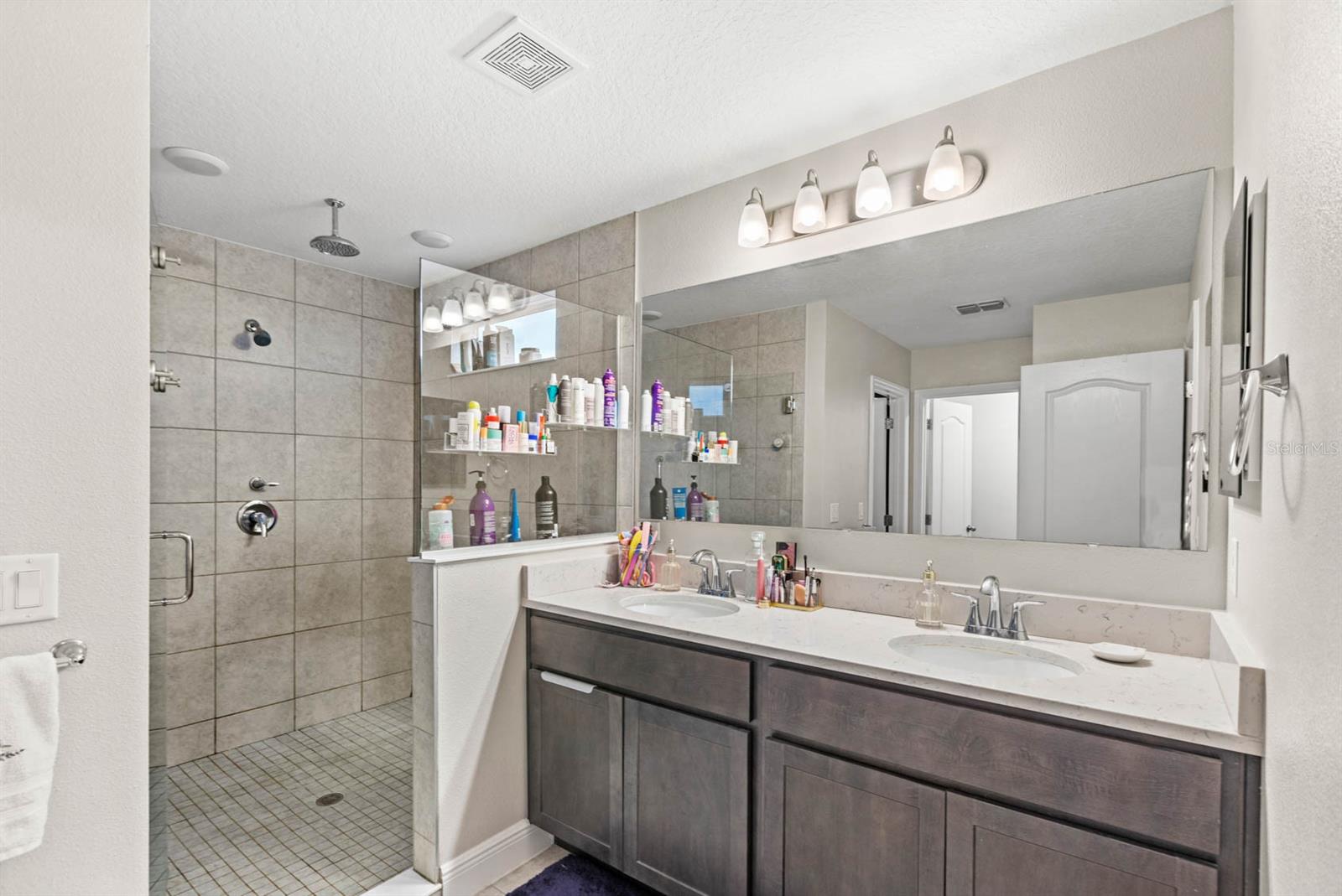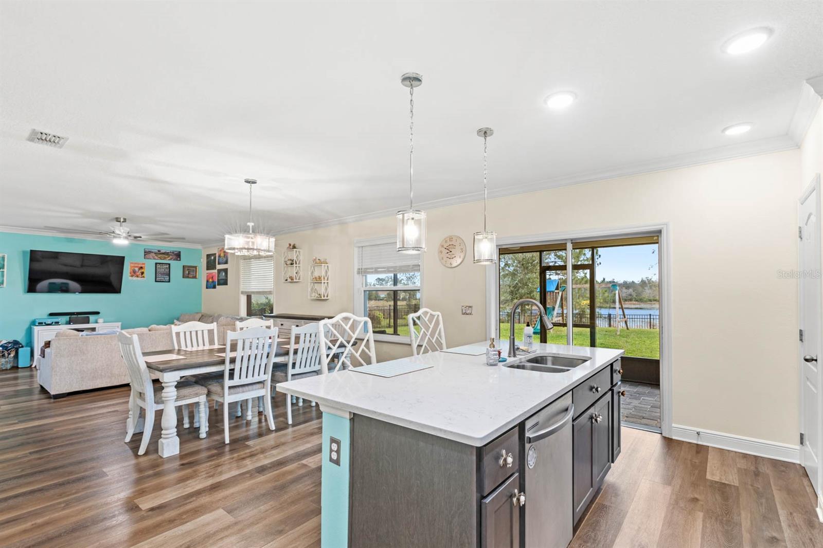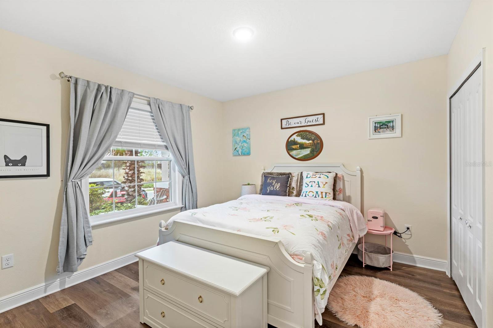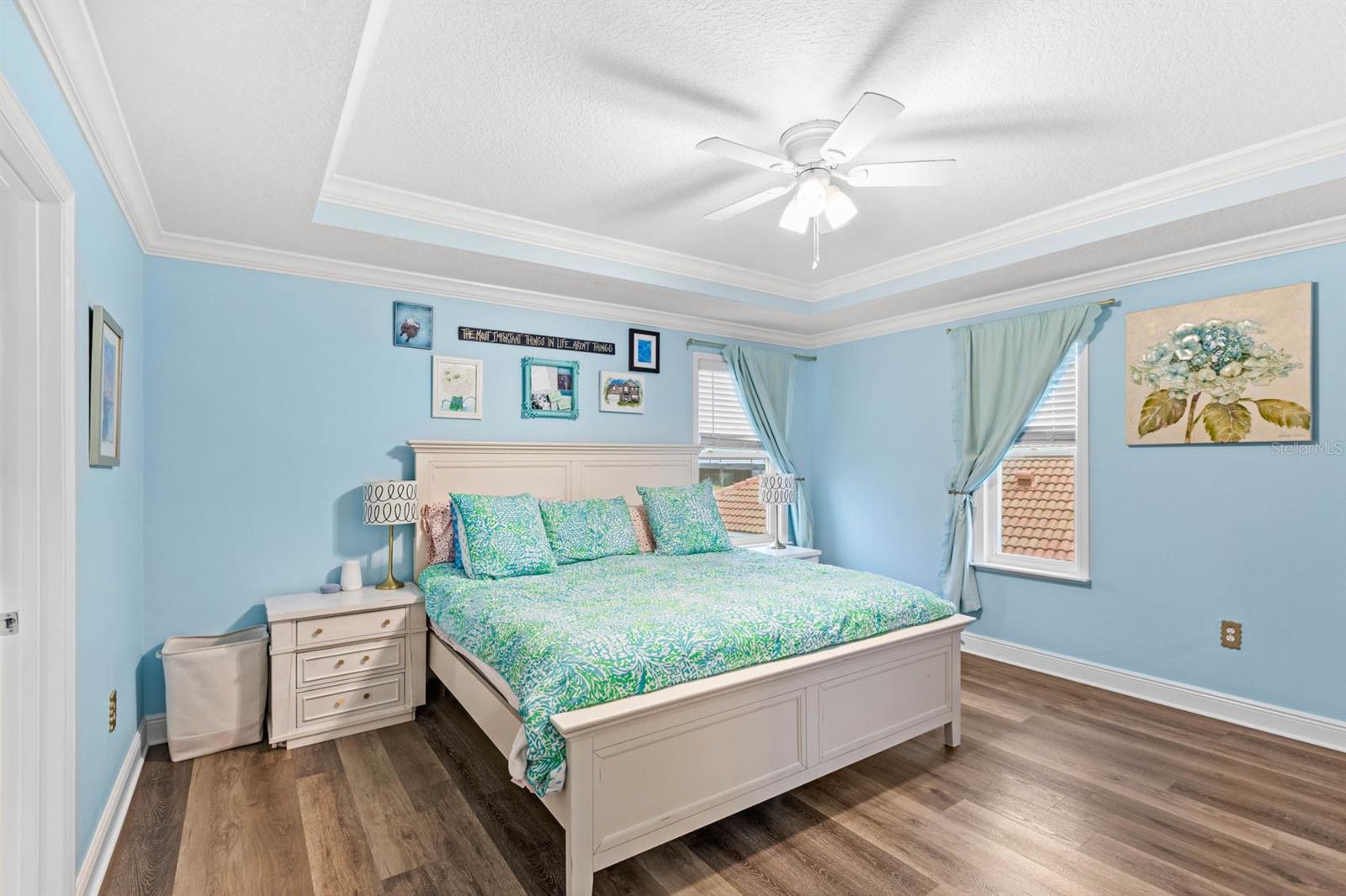 Welcome to Your Dream Home in Solterra Springs! The Exclusive Residential area, no short term rentals here! Discover resort-style living with residential peace of mind in the highly sought-after gated community of Solterra Springs. This stunning, newer 5-bedroom, 3-full-bath home offers an abundance of modern upgrades and luxurious features, making it the perfect haven for relaxation and entertainment. Key Features Include: Luxury Vinyl Plank Flooring throughout for durability and style, Crown Molding that adds a touch of elegance, Stainless Steel Appliances and Quartz Countertops in the kitchen, Custom Primary Closet, Extended Screened-In Patio for year-round outdoor enjoyment, Strada Home Security System for added peace of mind. The layout boasts large bedrooms, including a first-floor ensuite for convenience and a primary suite upstairs for ultimate privacy. The backyard is an oasis with water views, breathtaking sunsets, and a large fenced-in yard, perfect for relaxation or entertaining. Room for your DREAM POOL in this yard! Community Amenities You'll Love: Resort-style pool and lazy river, fully equipped gym, Sand volleyball court, Two playgrounds, a brand-new meeting center. This home truly has it all, blending luxurious living with the comforts of a welcoming community. Don’t miss your chance to make this exceptional property your own. Schedule your private showing today!