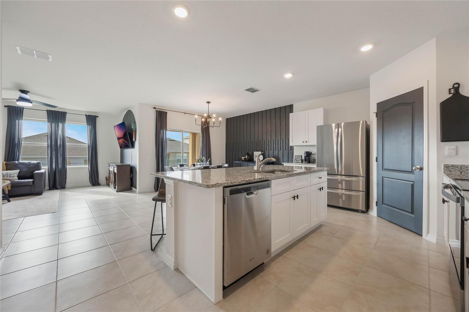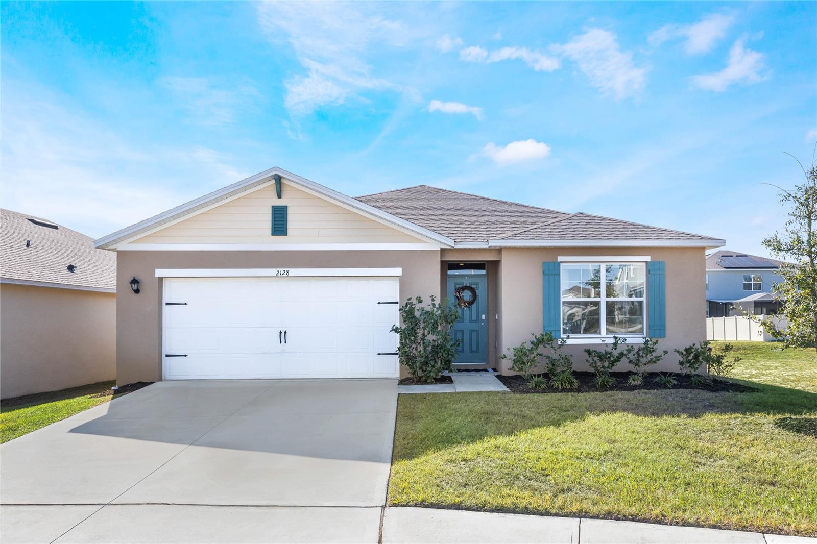 No need to wait for new construction…welcome to this beautifully crafted 2022 built home. This one-story home is built with all-concrete block construction with no side neighbors on one side. The open-concept design enhances the flow of the living spaces, with the kitchen seamlessly connecting to the living room, dining area, and outdoor lanai—ideal for both relaxation and entertaining. The well-appointed kitchen features a large island, soft-close cabinetry, and modern stainless steel appliances, making meal prep and hosting a breeze. A generous pantry provides additional storage space. The primary bedroom is located at the back of the home, offering a peaceful retreat with a spacious walk-in closet. The ensuite bathroom boasts a double vanity, providing plenty of space for daily routines. At the front of the home, two additional bedrooms share a second full bathroom, while a fourth bedroom is conveniently located just across the hall. This home is equipped with a smart home panel for enhanced convenience and control, ensuring that you have modern technology at your fingertips. This home truly has everything you need and more—come see for yourself!